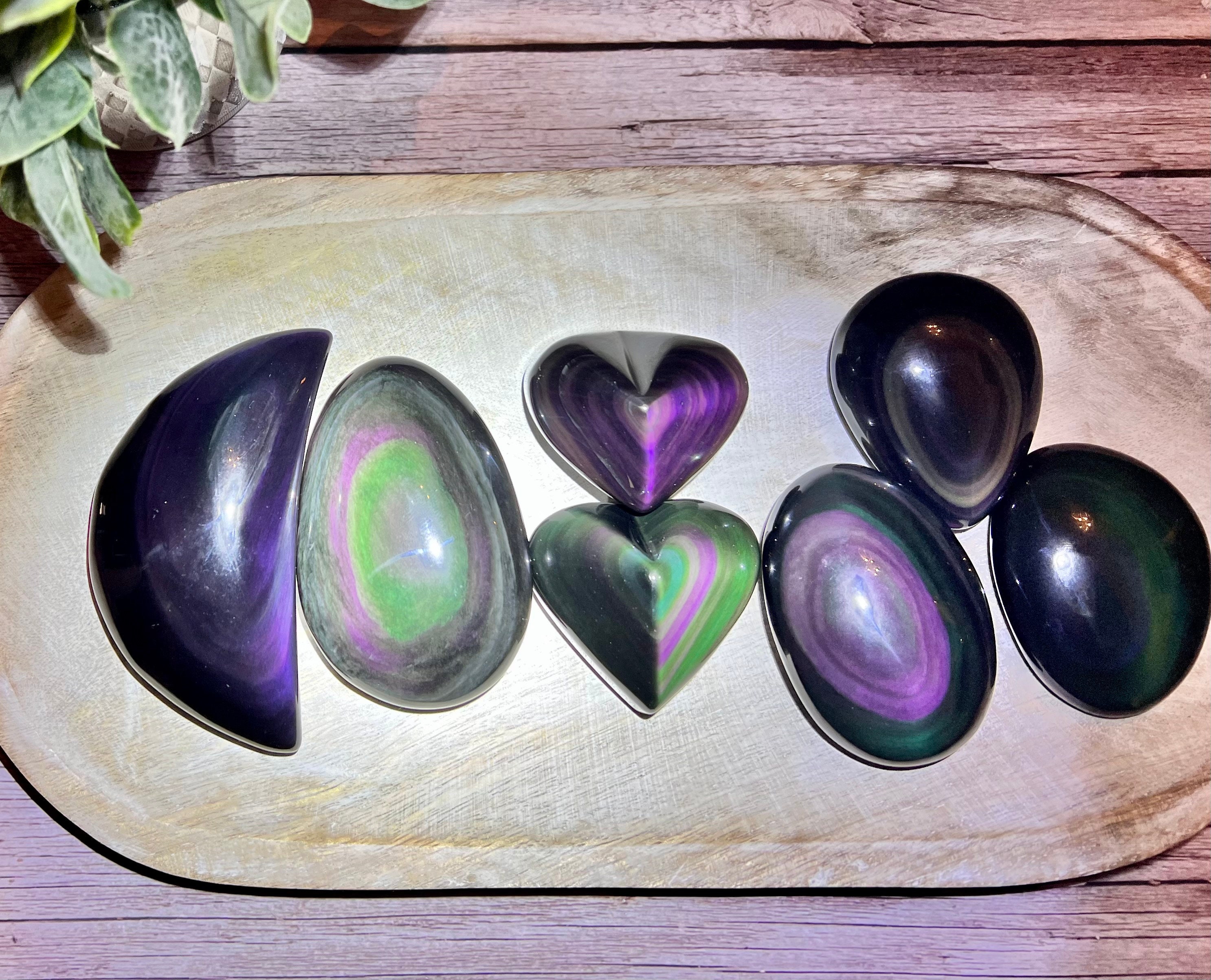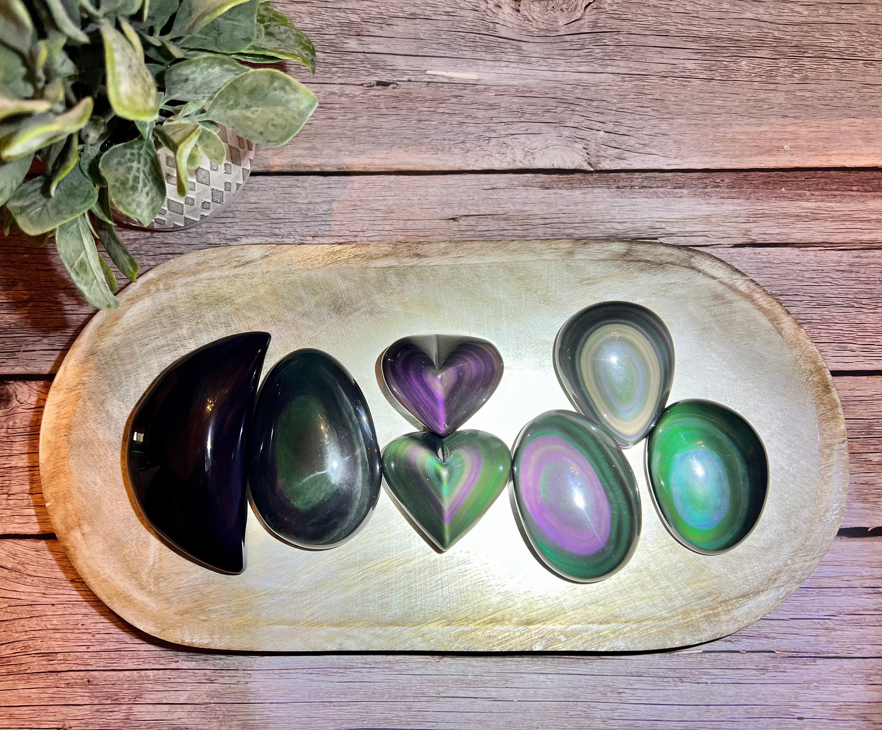 Rainbow Obsidian brings gratification and enjoyment to our lives, helping us to be optimistic and engaged in the world. It is used for meditation, in stone layout sessions, and as an aid for focus and memory. Rainbow Obsidian brings hope, illumination, and energy into the most blocked and stagnant areas of the emotional body, and grounds spiritual Light into the aura and physical body. It is a great support for alleviating depression, mood swings, despair, or paralyzing fears.