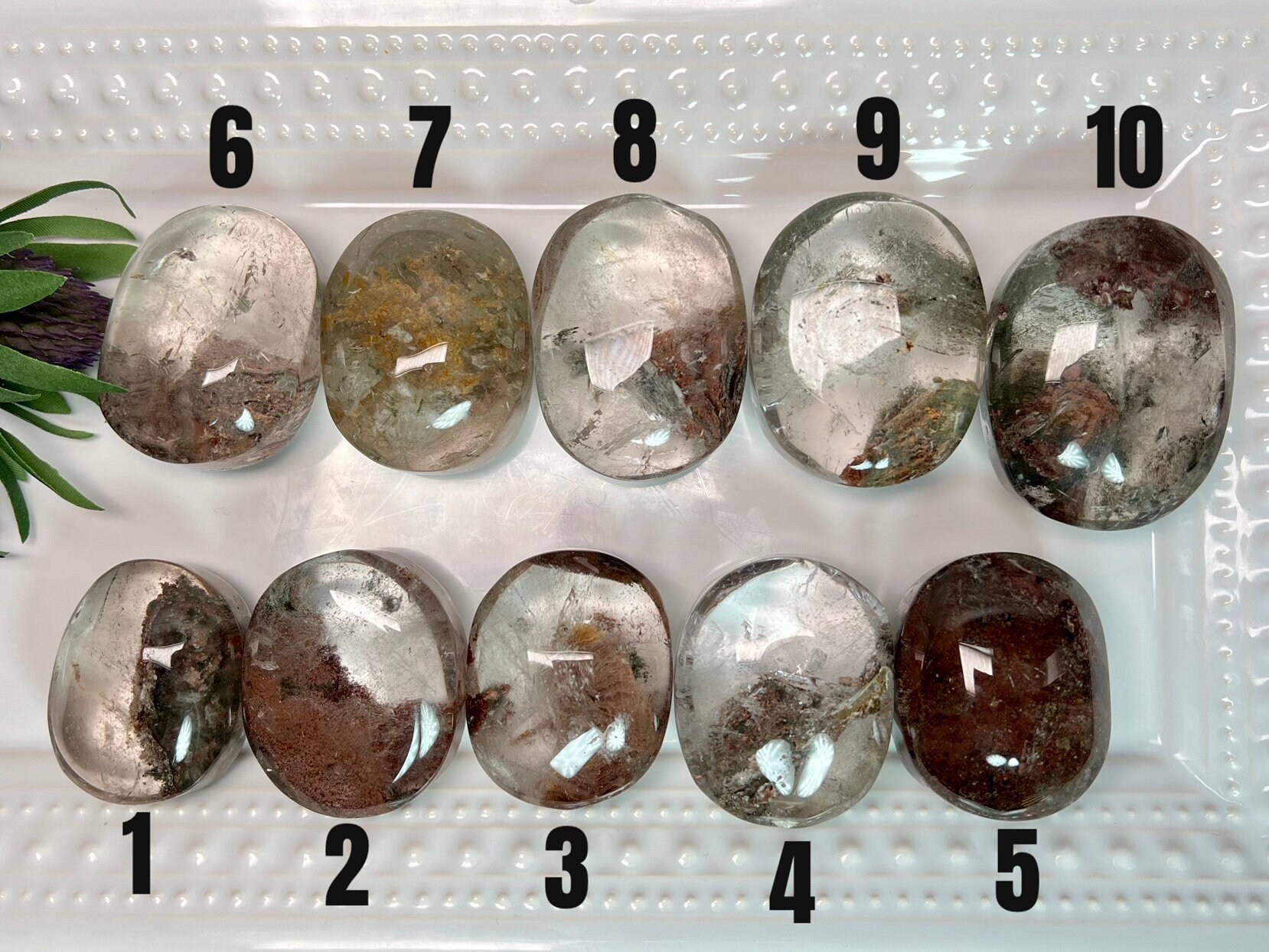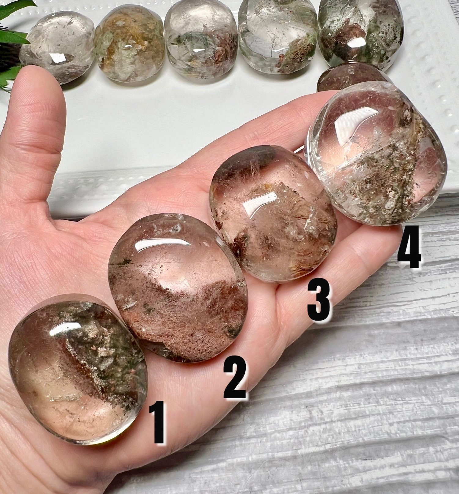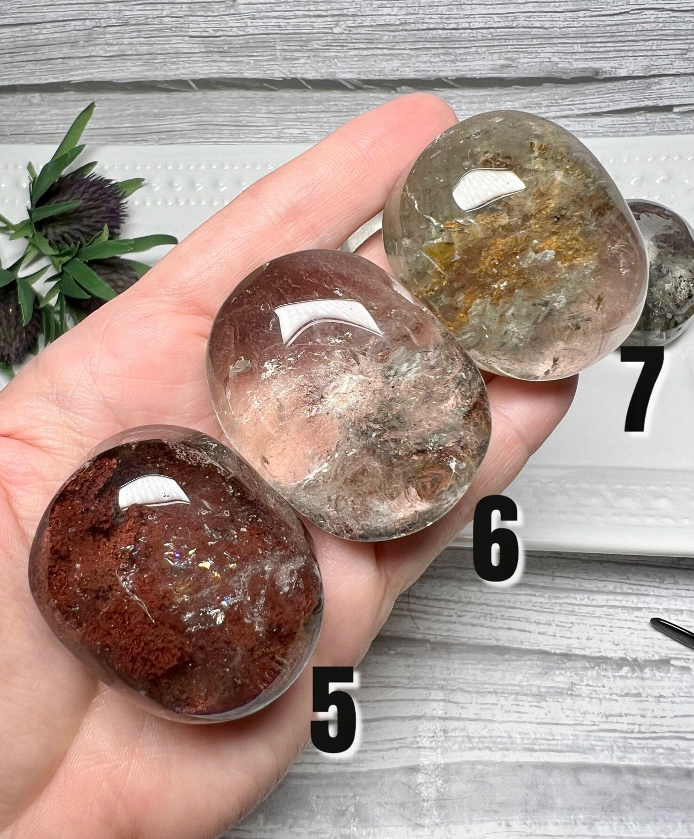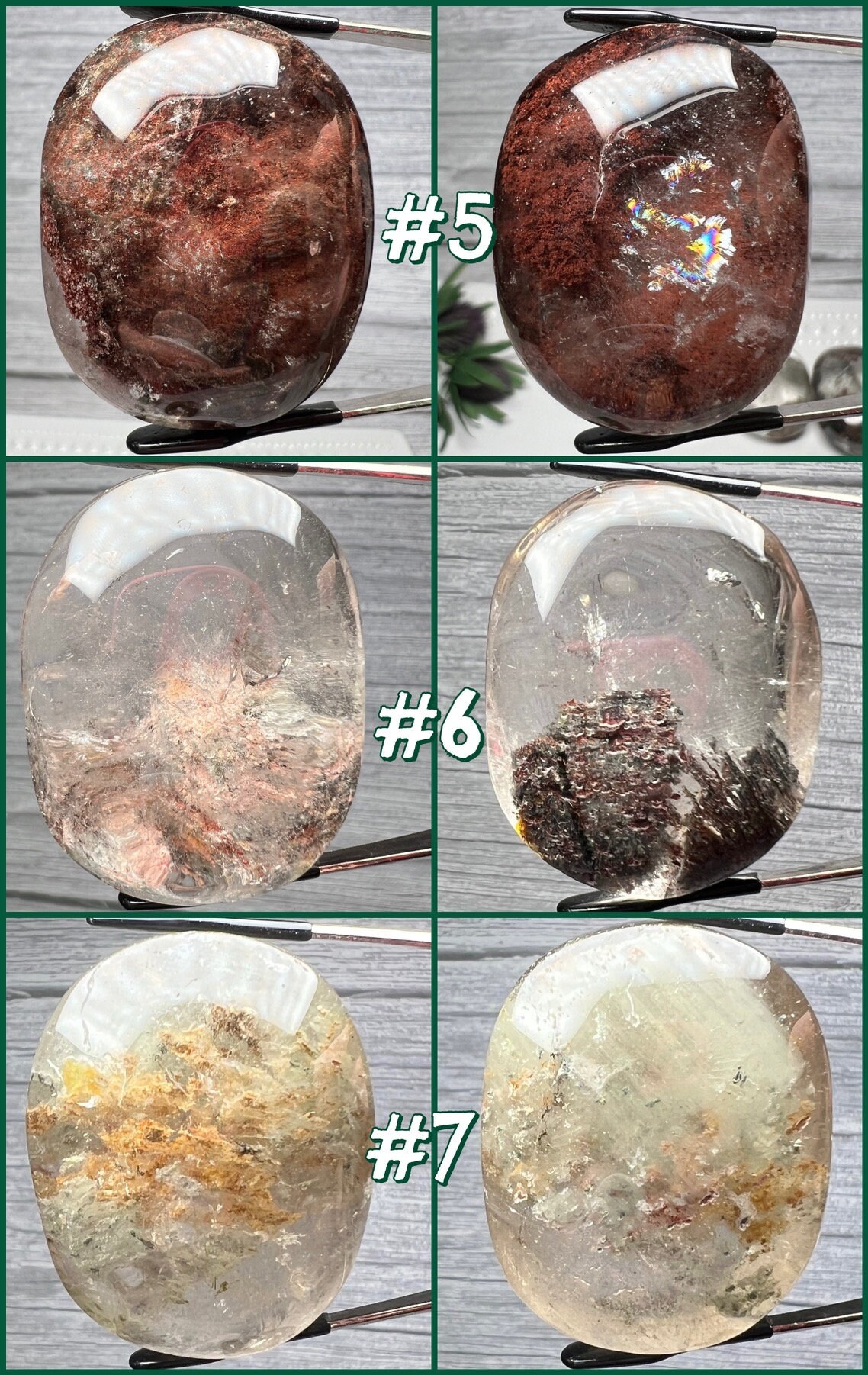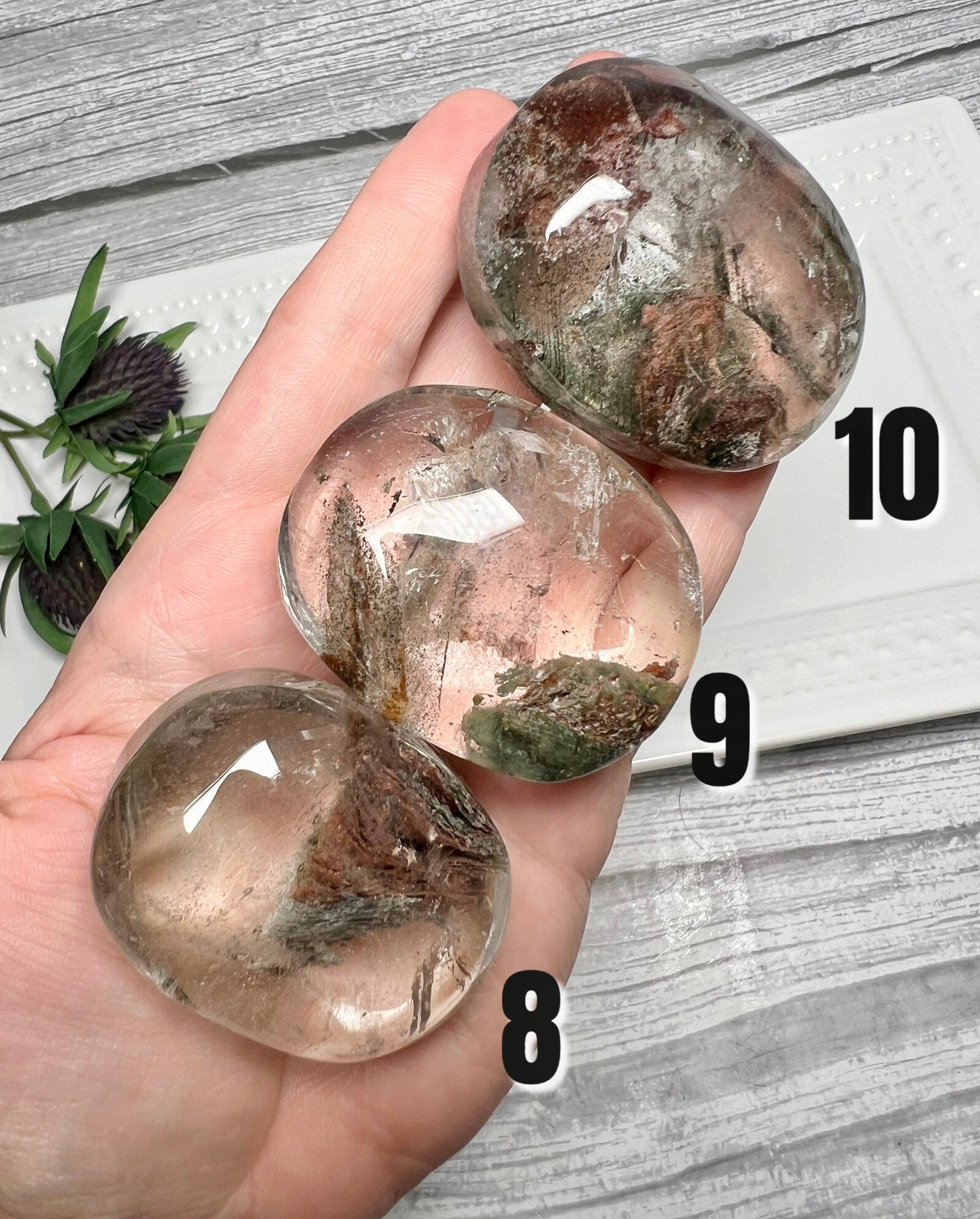 Garden Quartz Palm Stones, Lodolite Palm Stones, Garden Quartz Palms, Inclusion Quartz