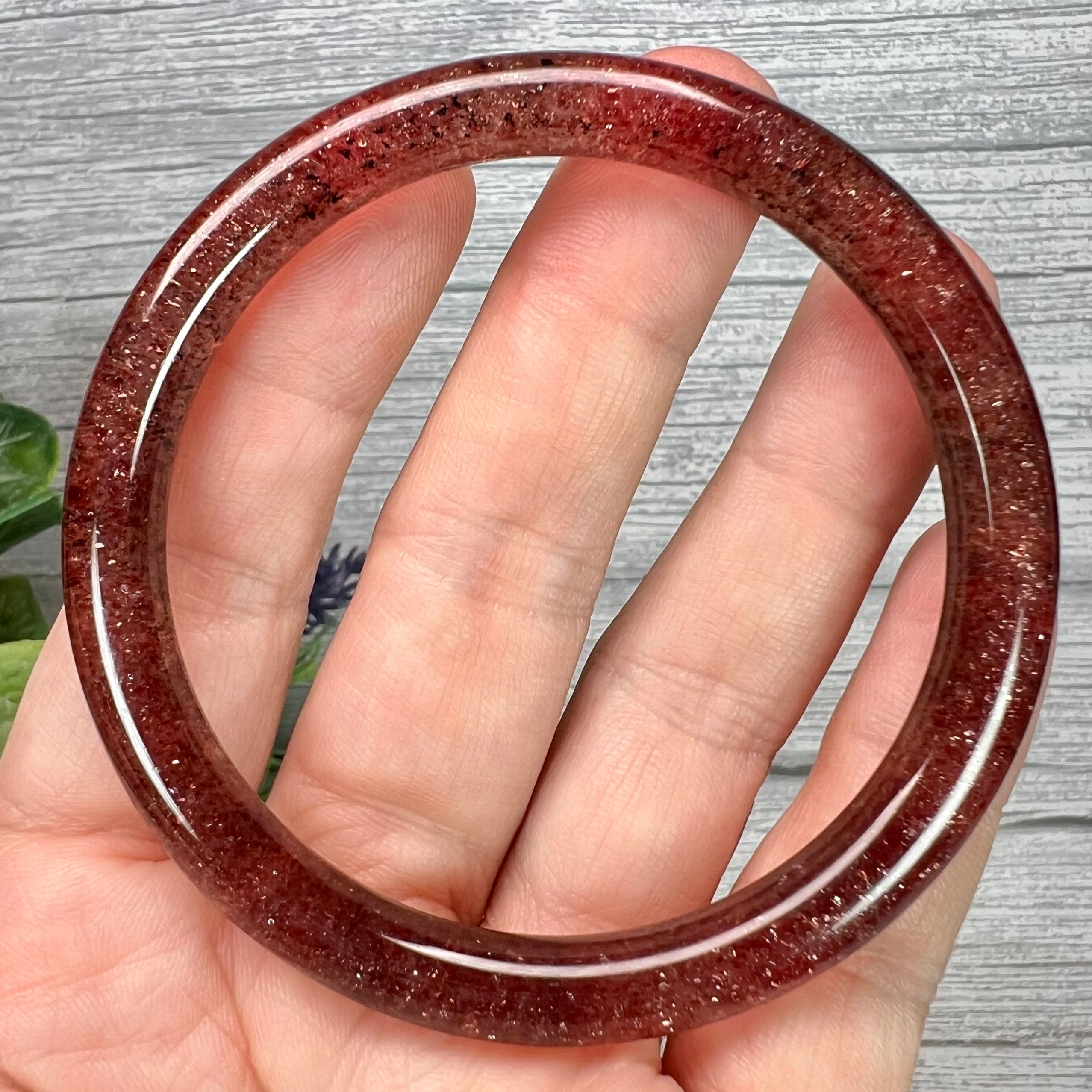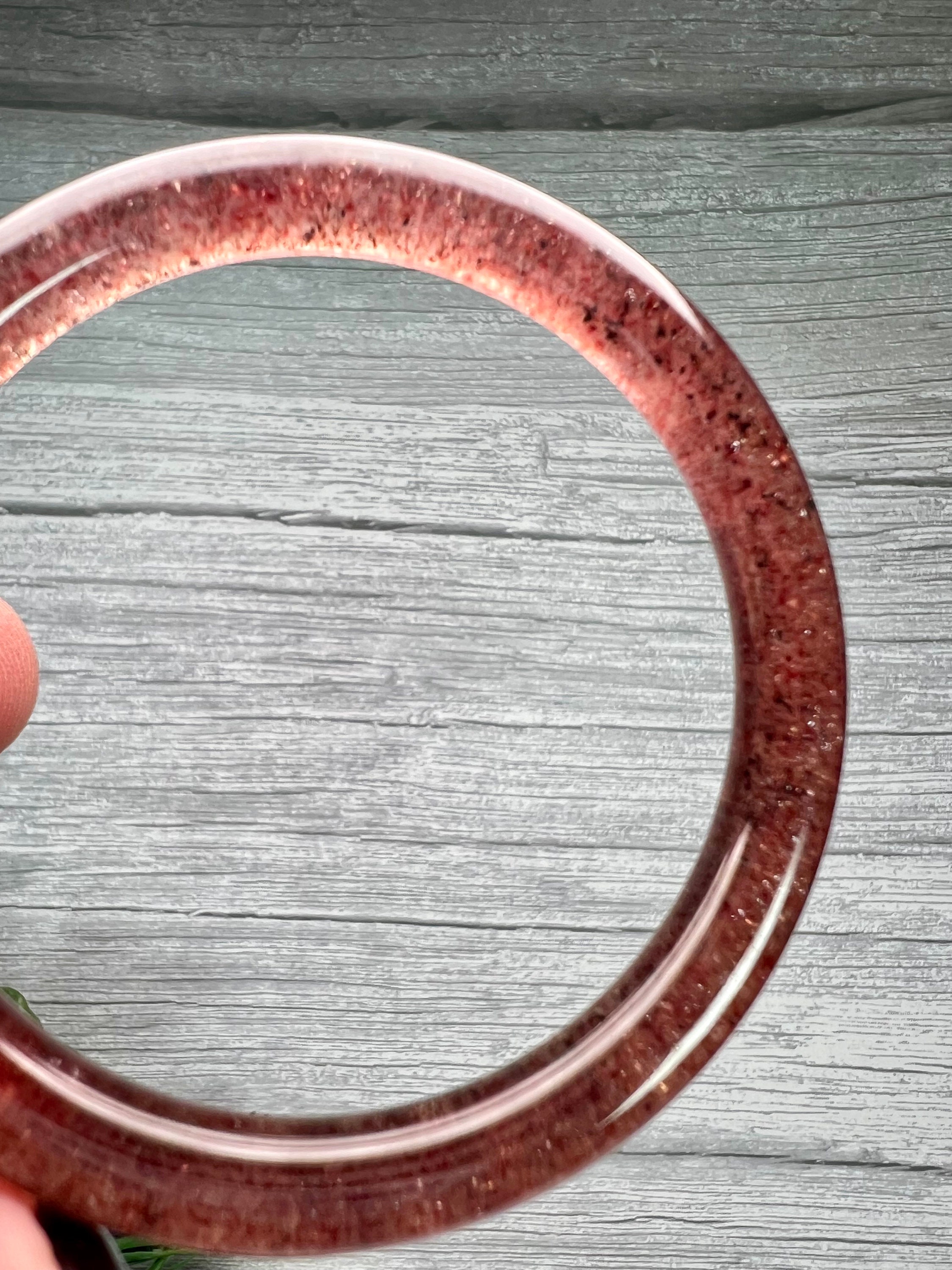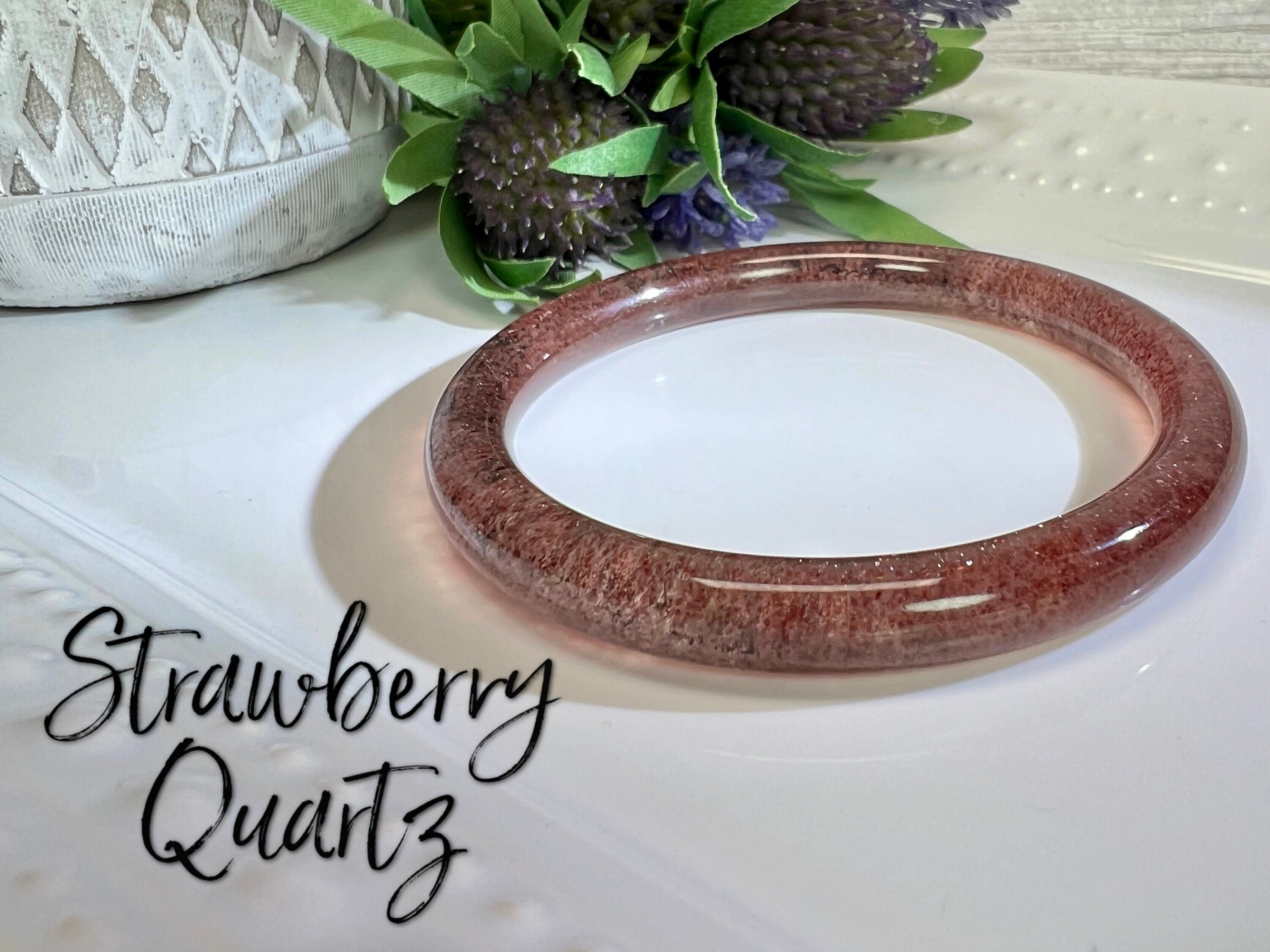 Outstanding strawberry quartz bangle that sparkles even more in person than in the photo. Very reasonable price and fastest shipping with very careful packaging for safety. Thank you for the strawberry quartz bracelet gift. It is always a pleasure to do business with you