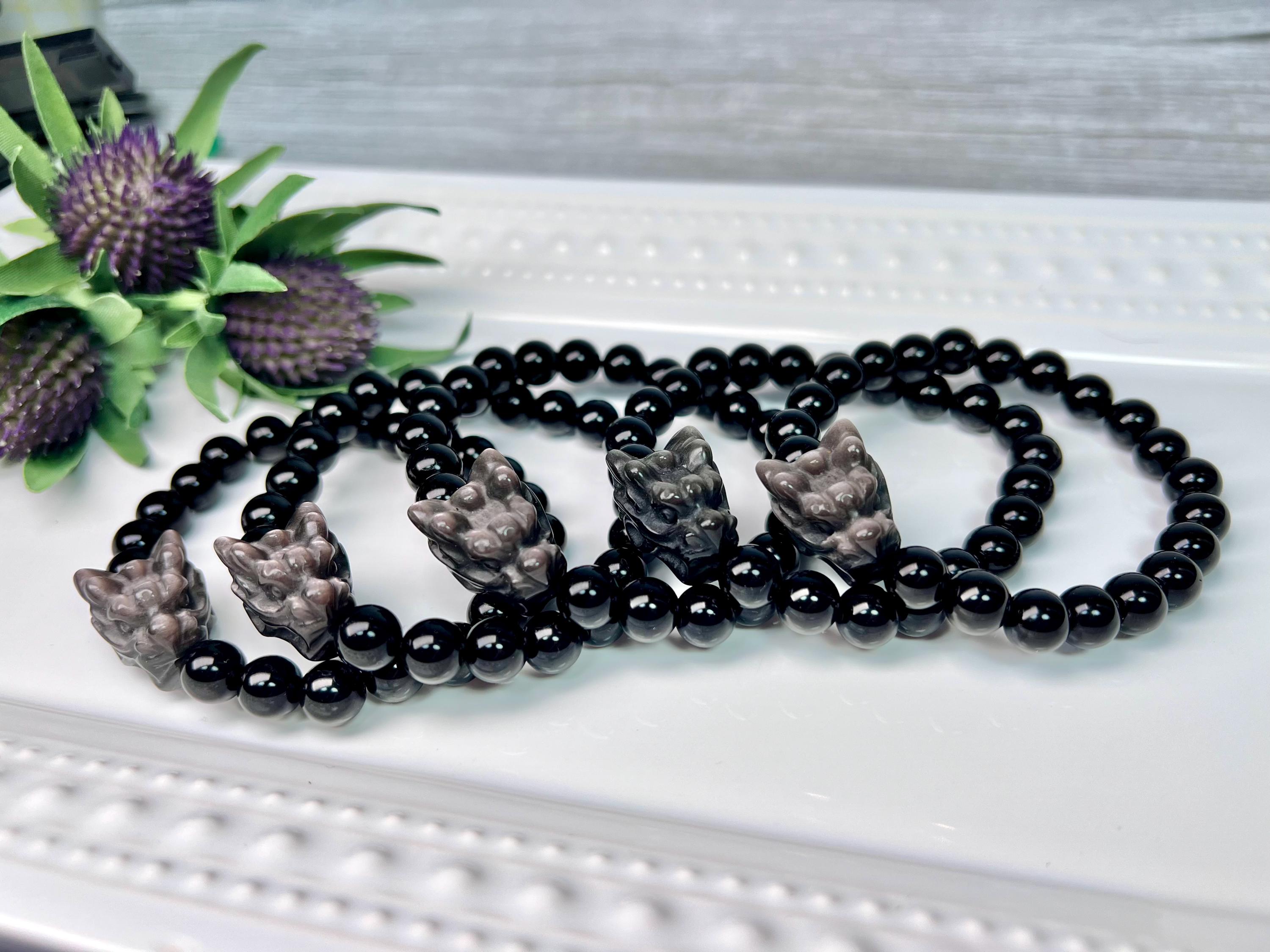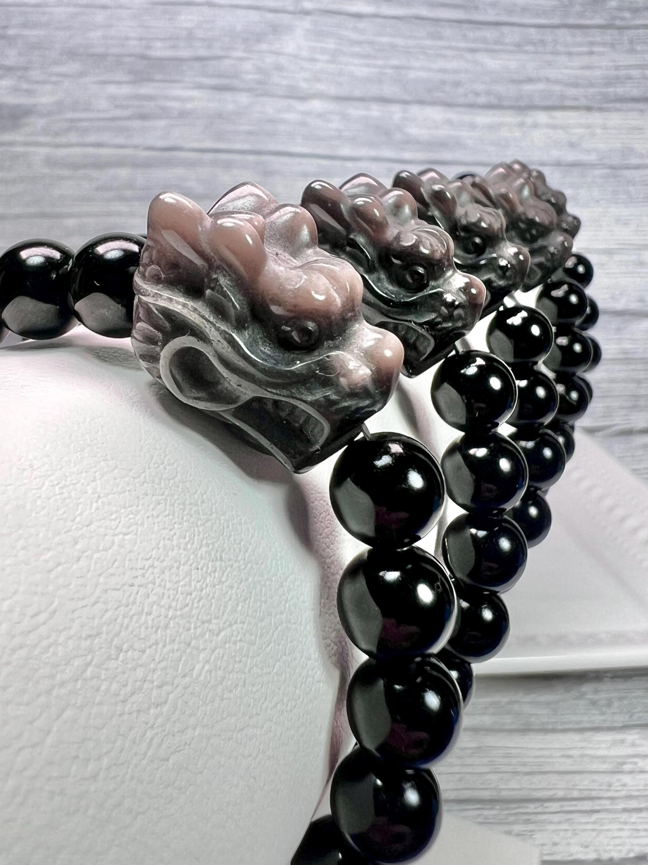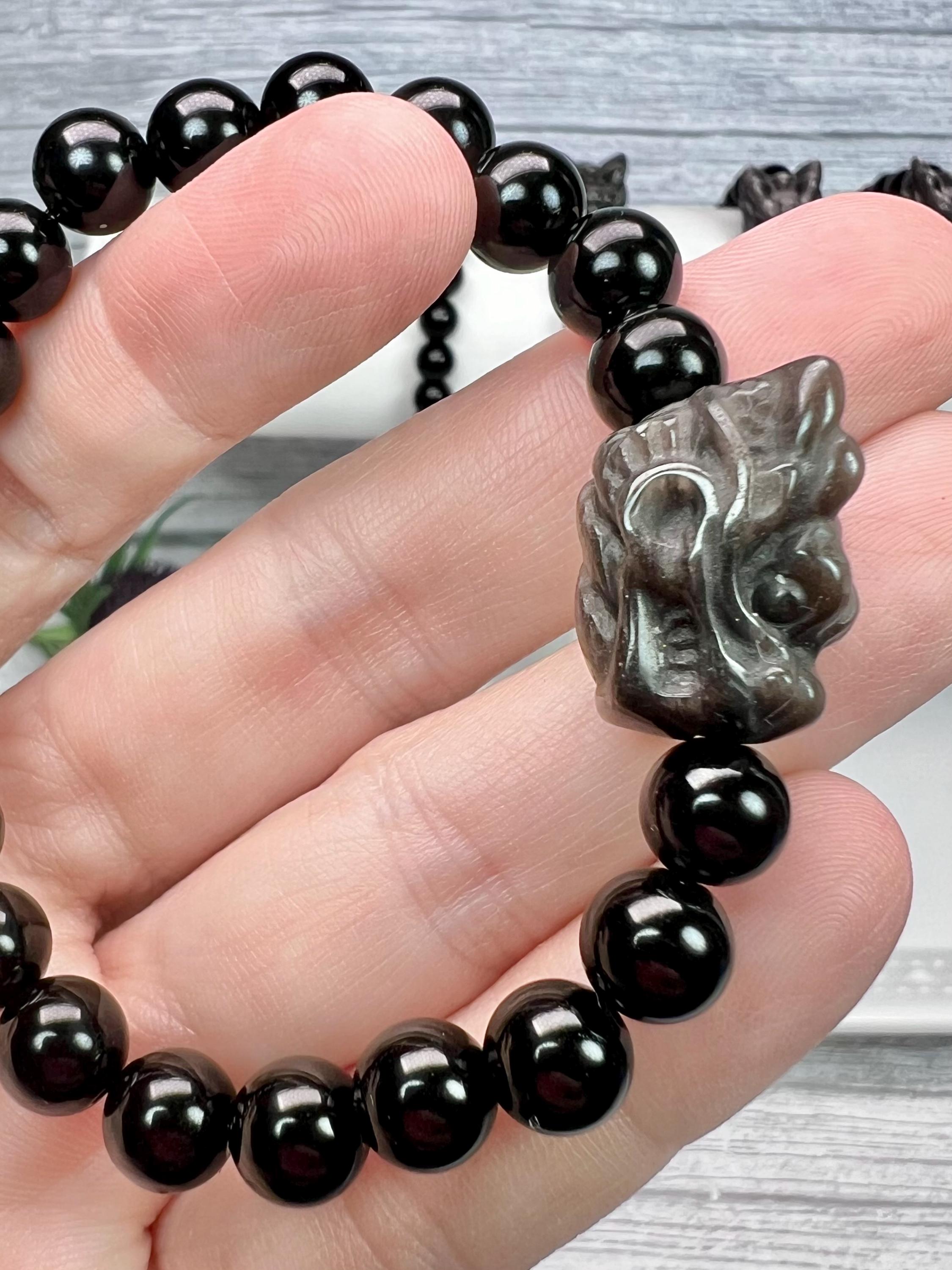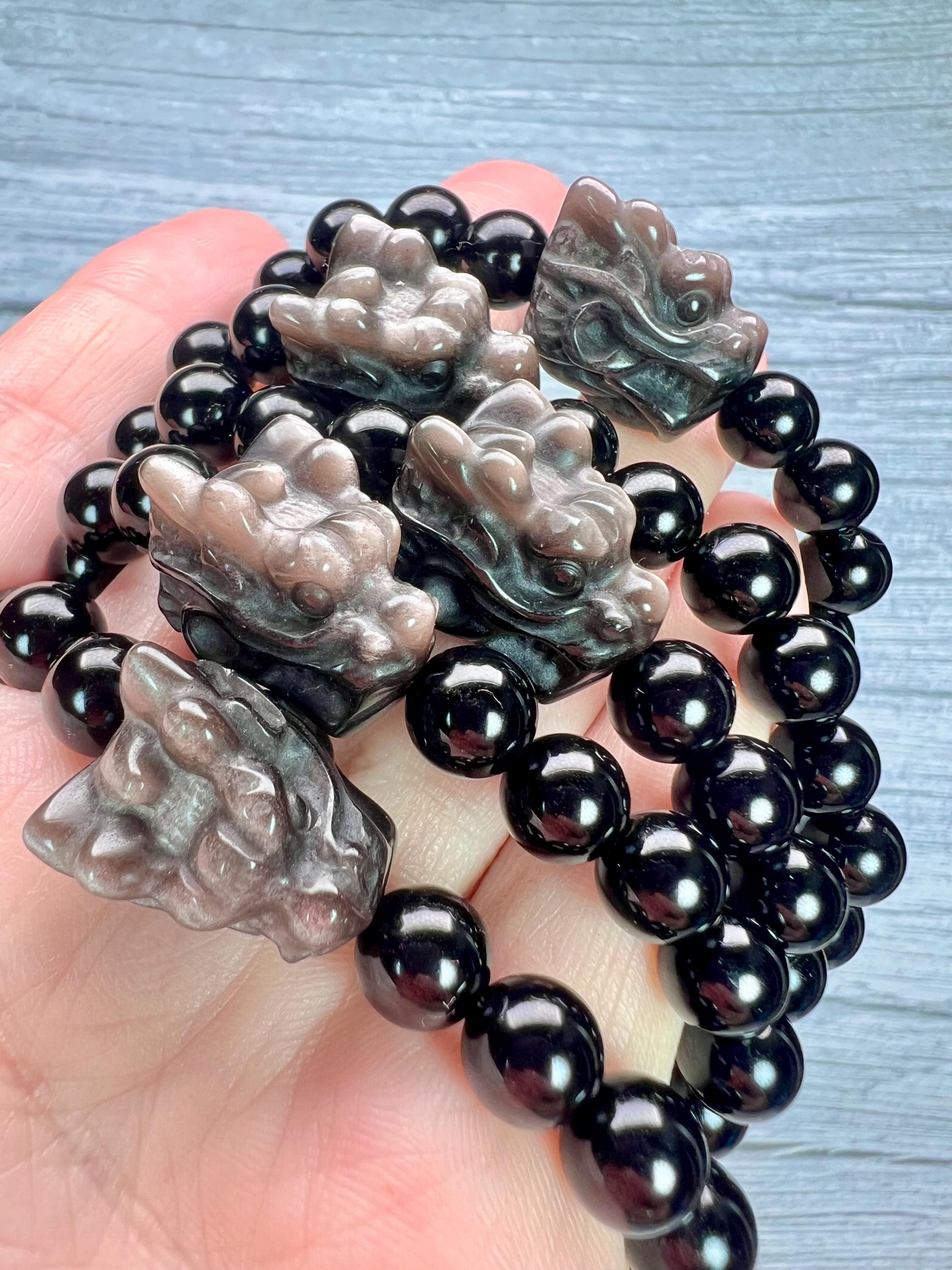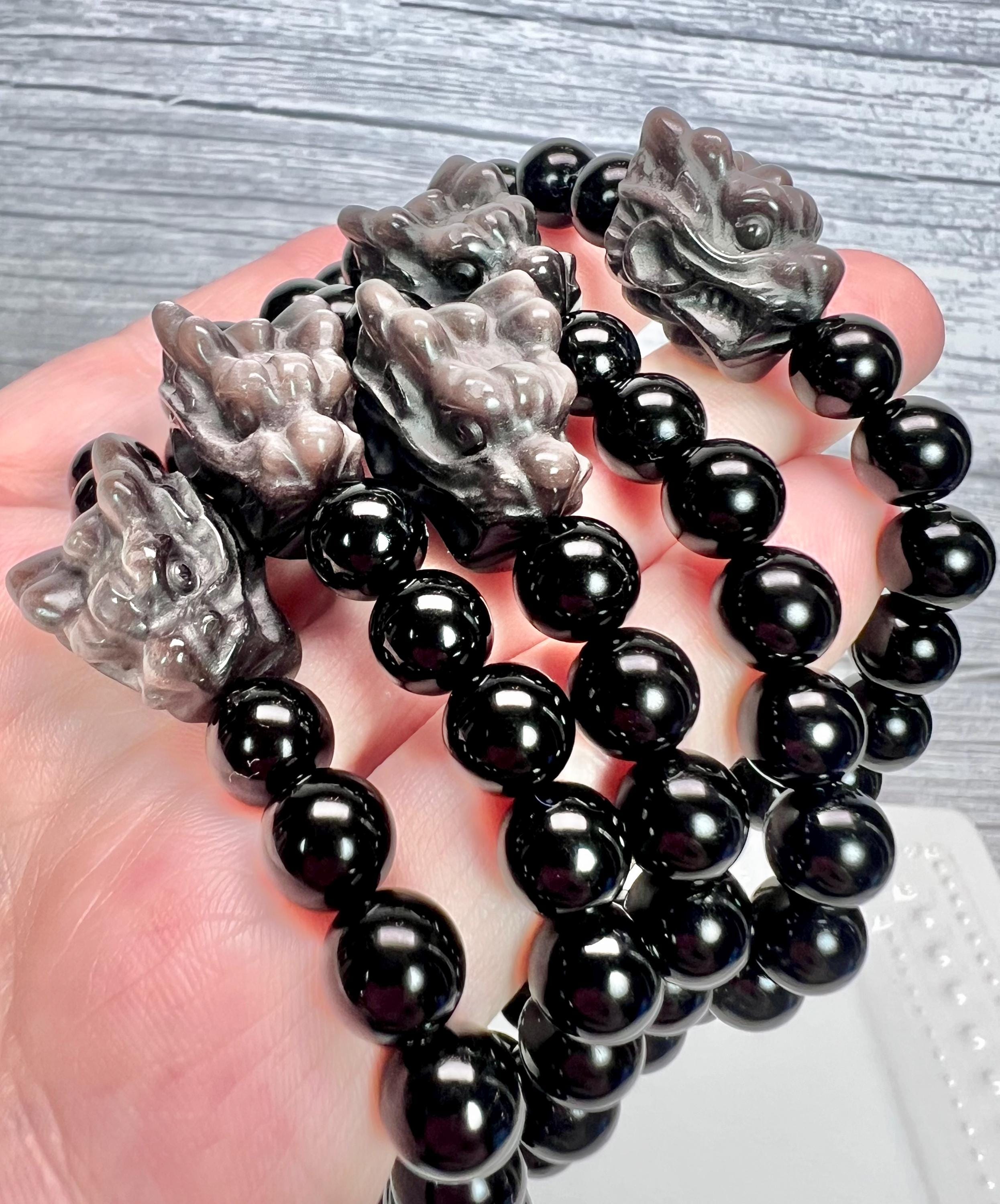 š¤Dragon Bead Size: 15x20mm Silver Obsidian