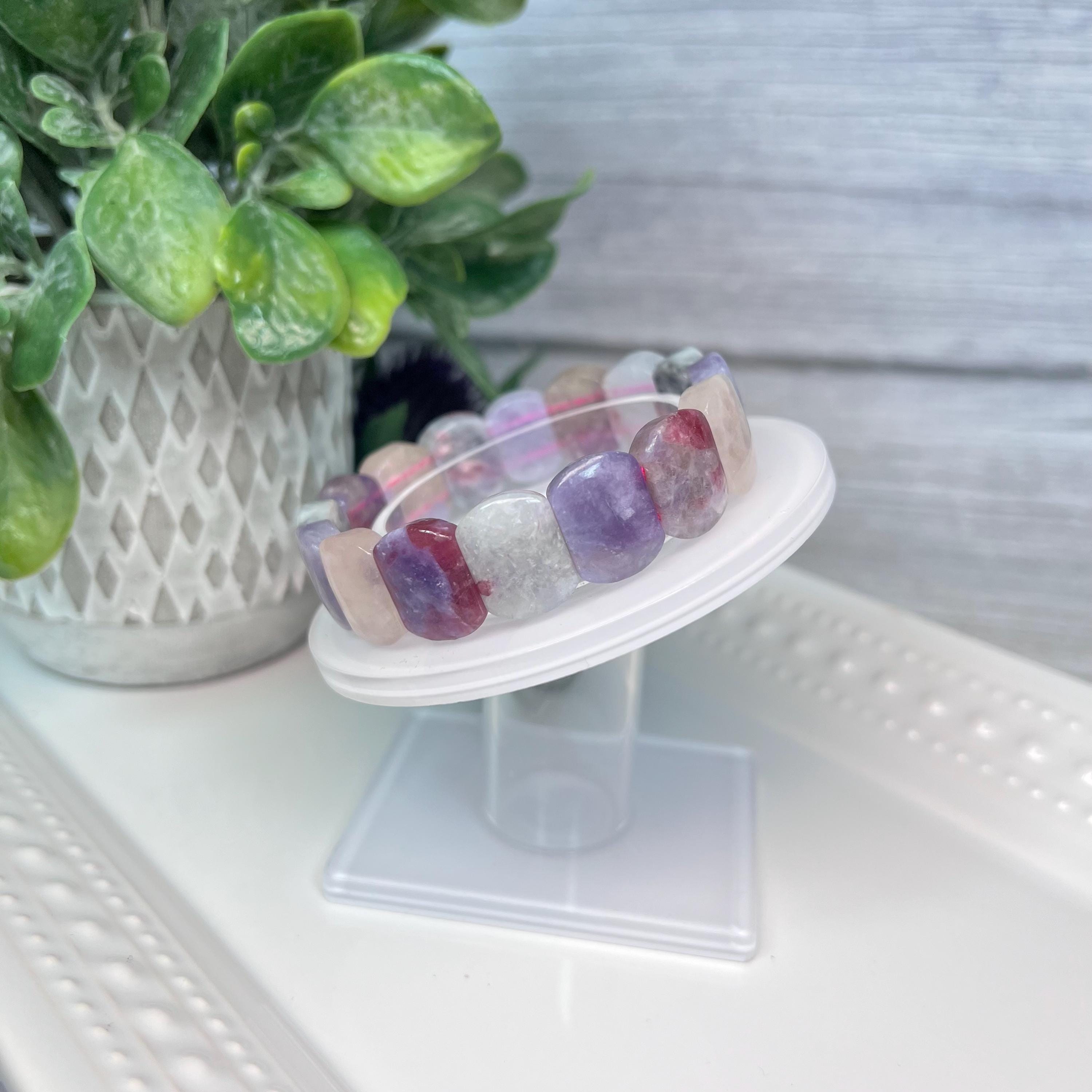 Lepidolite brings balance and inner peace, helping one to see reasons behind any negative experiences, so they can improve on them. Lepidolite promotes spiritual transcendence and cosmic awareness, particularly assisting in the course of meditation and/or prayer. Lepidolite is known to alleviate depression, bringing serenity from the knowledge that the Universe will always provide.