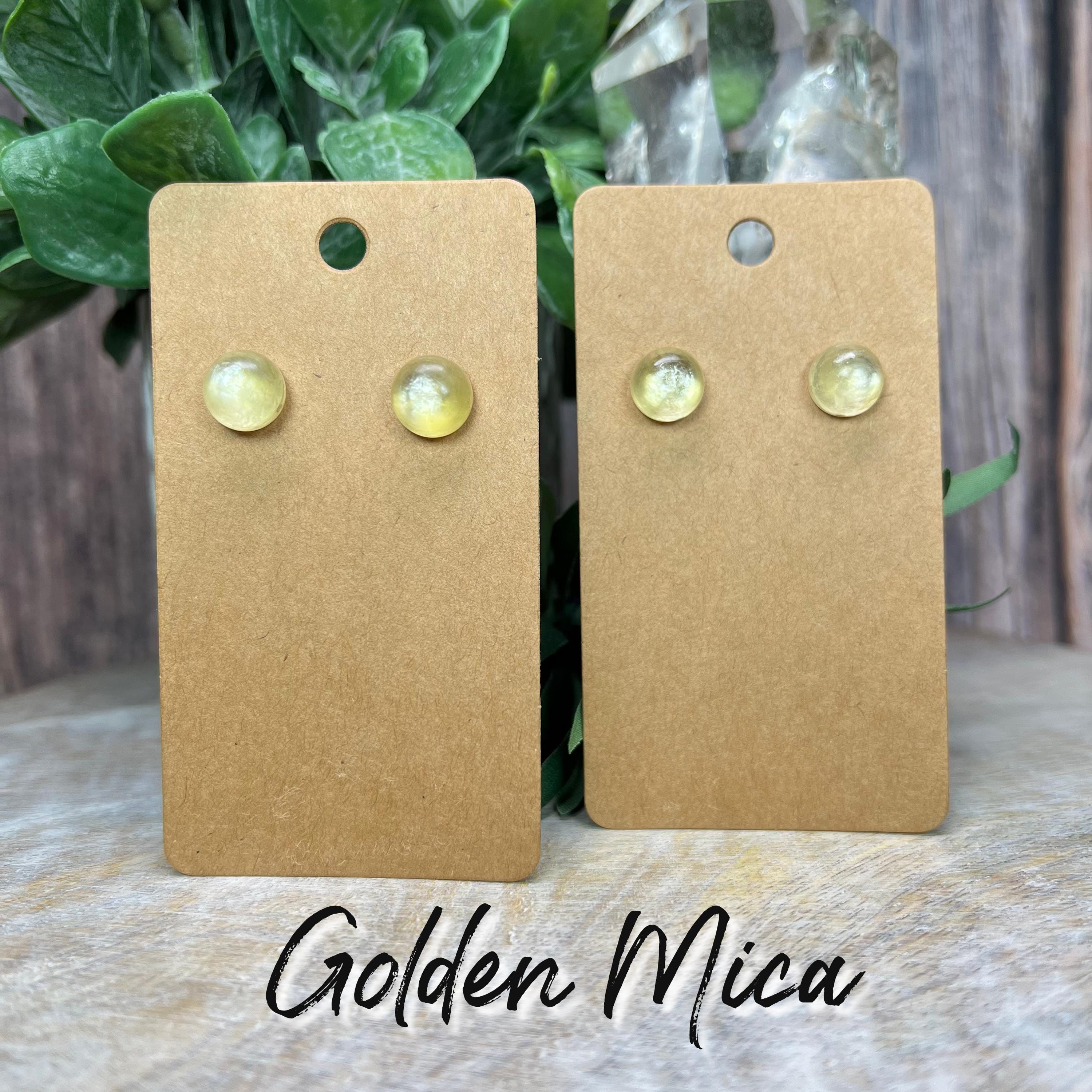 💛Yellow Mica Stud Earrings, Golden Mica Earrings, Gem Lepidolite, 925 Silver