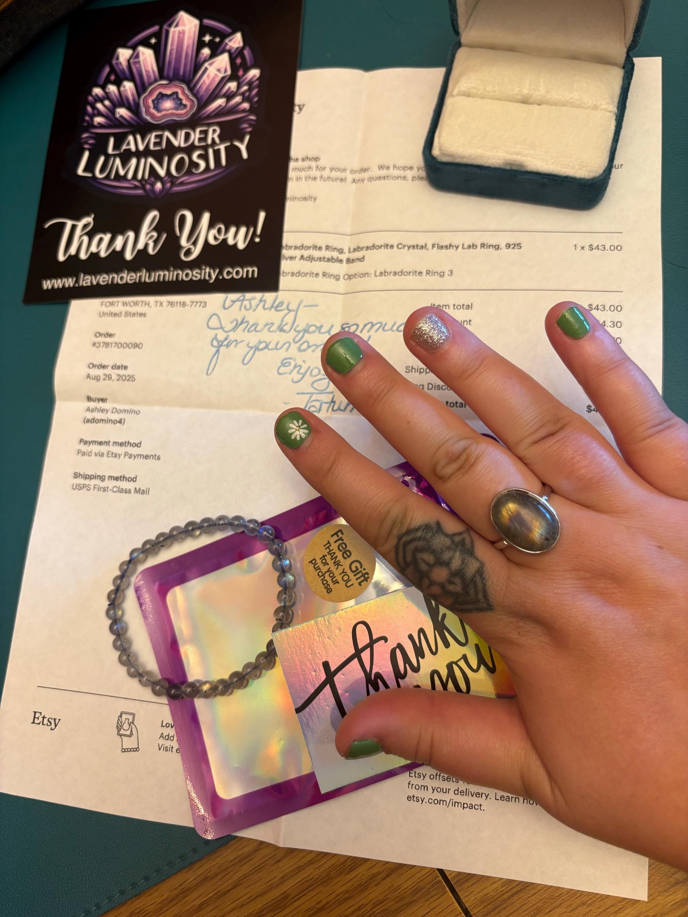 This ring was beautifully packaged they even threw in a free bracelet, which I absolutely love. The ring box is nicer than most ring boxes that you get with rings that you were to order online the ring itself has such a beautiful flash to it. I have really fat fingers for a female and to find a ring that is of the stone that I’m looking for, sterling silver, and adjustable but still good quality is so awesome. I absolutely love my purchase!