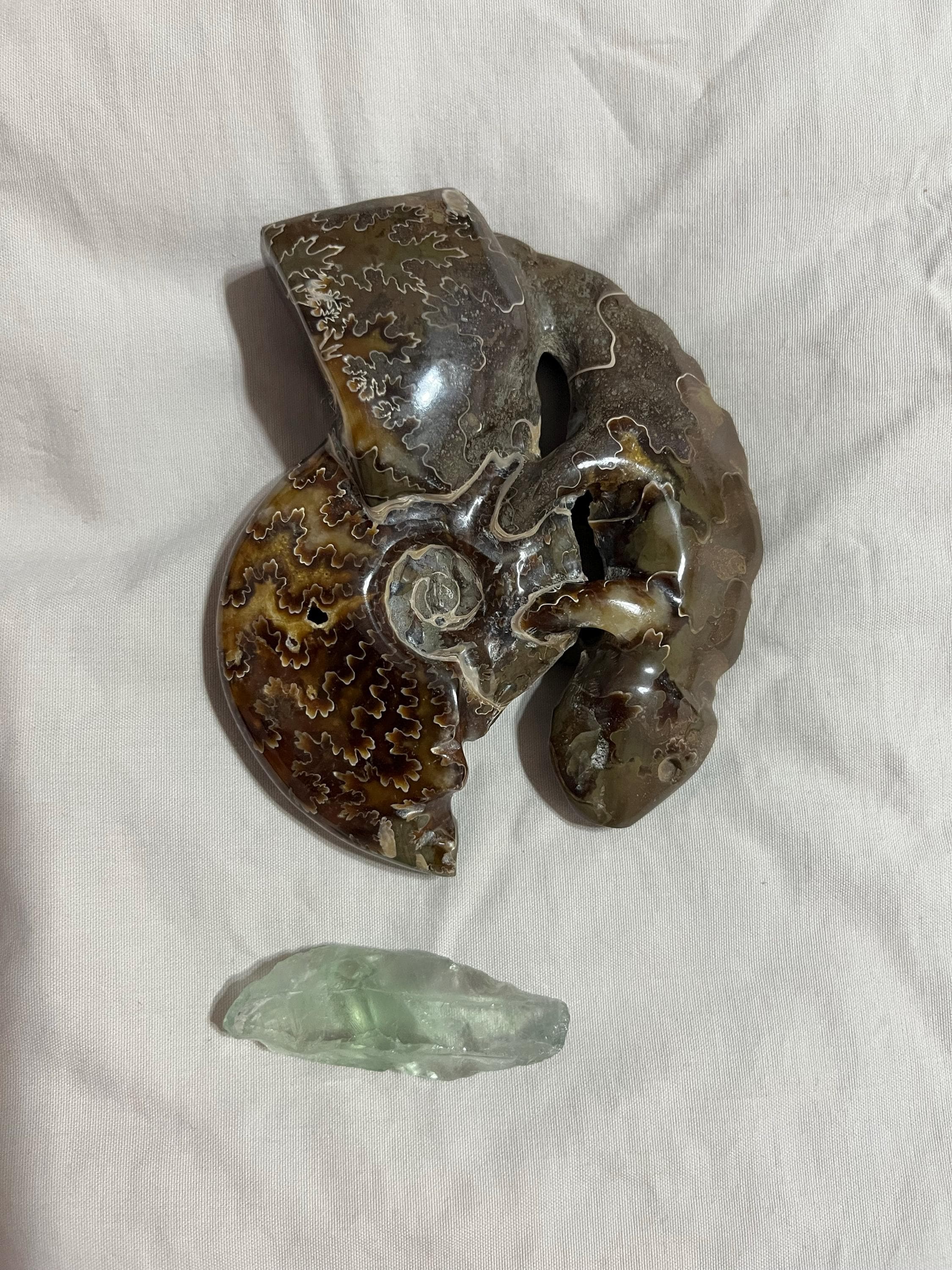 ✨Ammonites, which are extinct marine mollusks, are believed to have several healing properties. The spiral shape of these fossilized creatures symbolizes continual change and evolution, growth and transformation, encouraging personal development and resilience. The Ammonite draws off all negative energies. Think of the Ammonite spirals as a filter, drawing in these dense energies which are no longer needed, moving them through the spirals and releasing them as fresh, positive, loving life force energies. The Ammonite is a very powerful earth healing fossil. Ammonites have absorbed cosmic energy over eons of time and help to stimulate the life force (Chi) within. Ammonites are often used for activating Kundalini and life path energies.