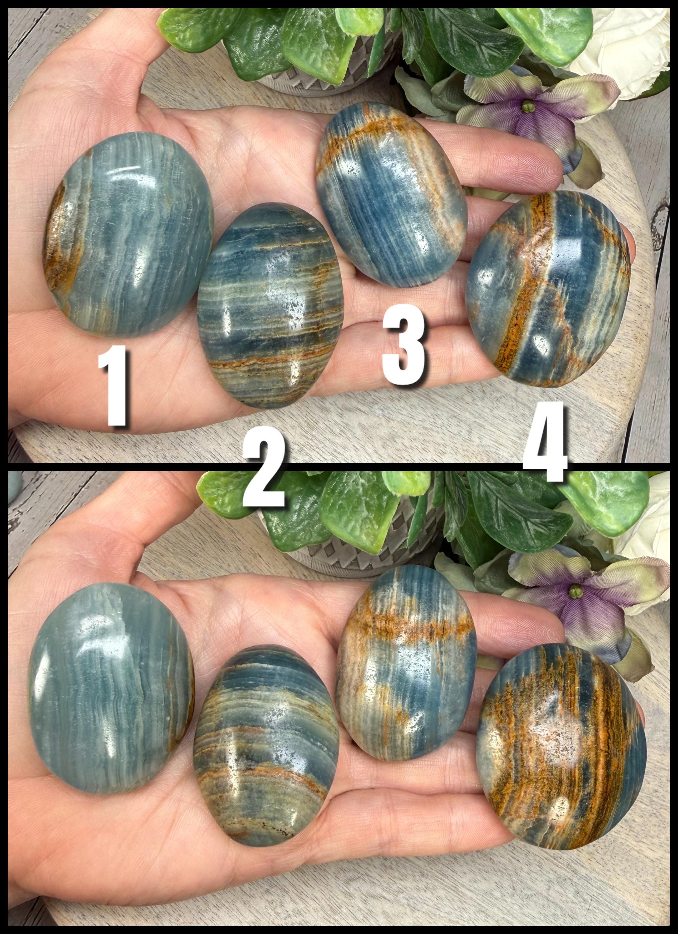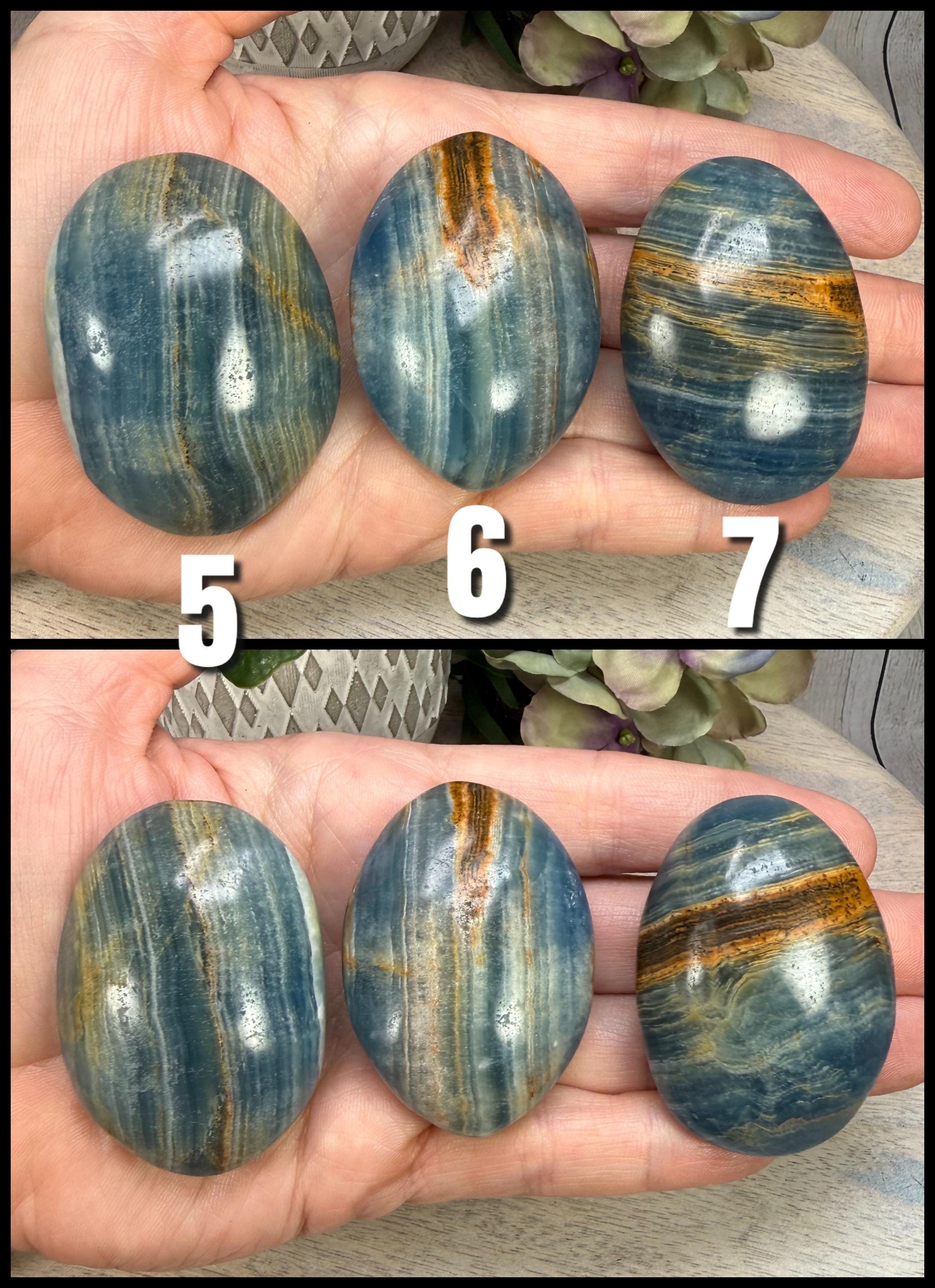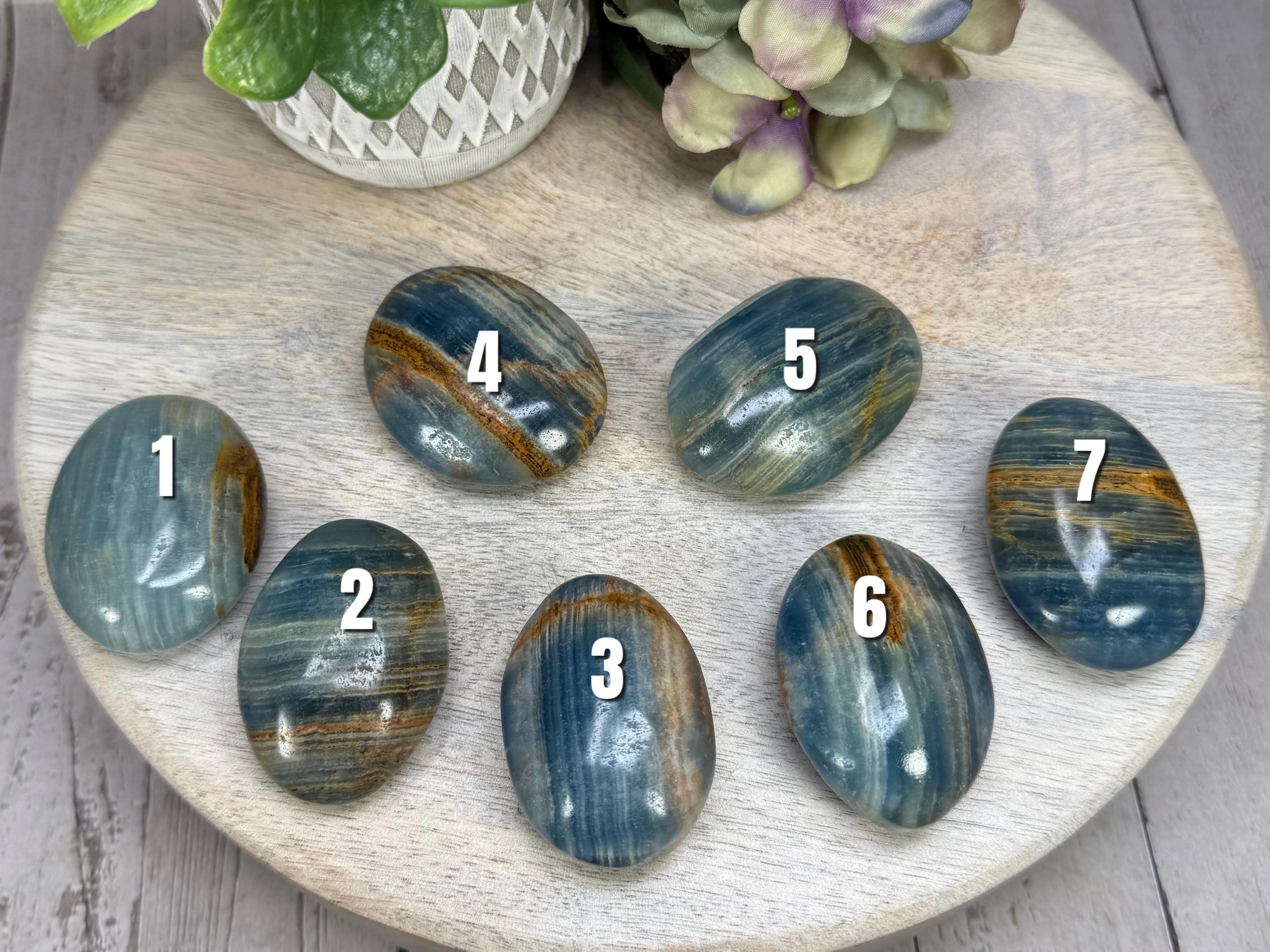 🔷Blue Onyx Palm Stone, Blue Onyx Crystal, Blue Onyx Carving