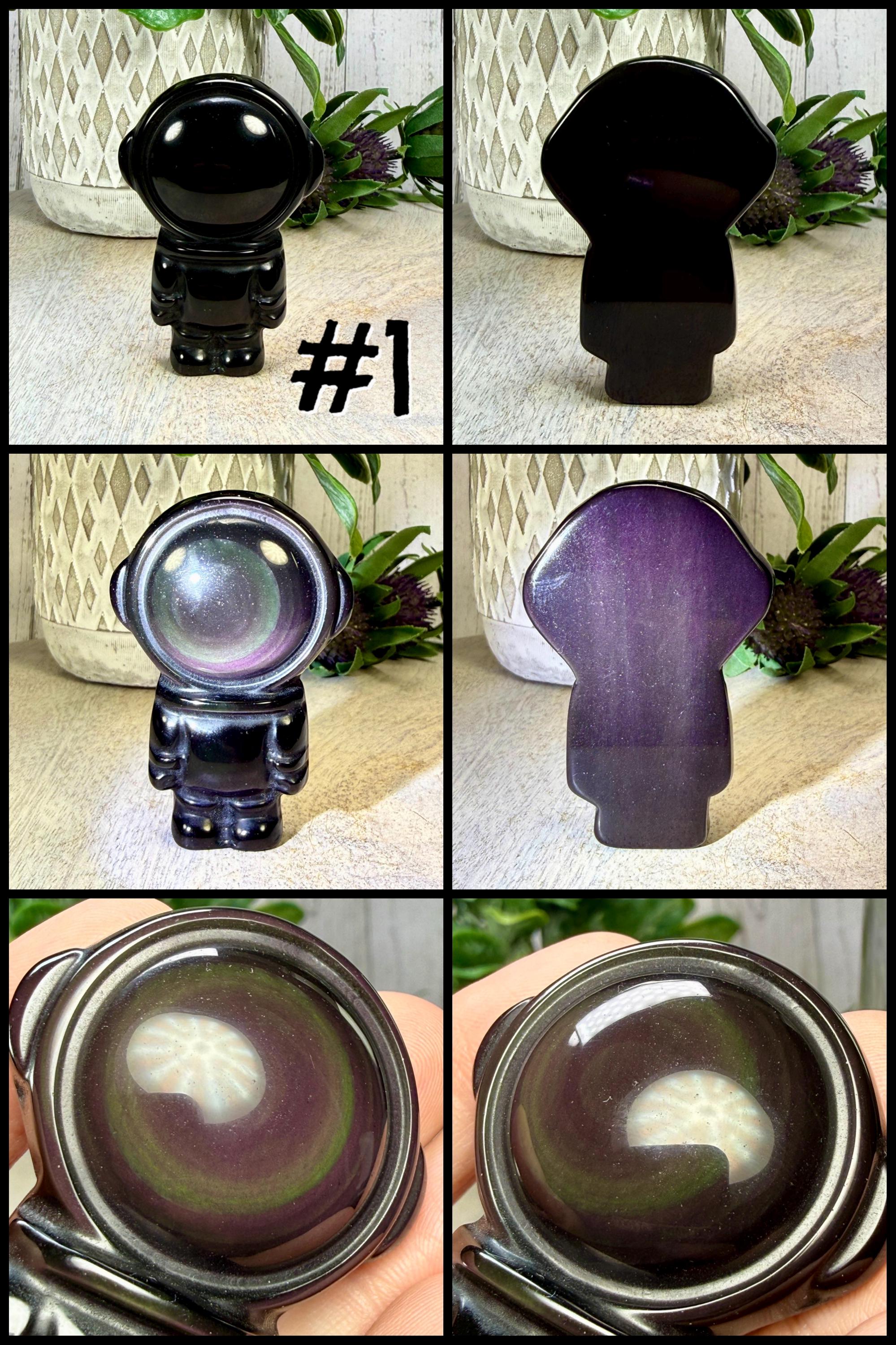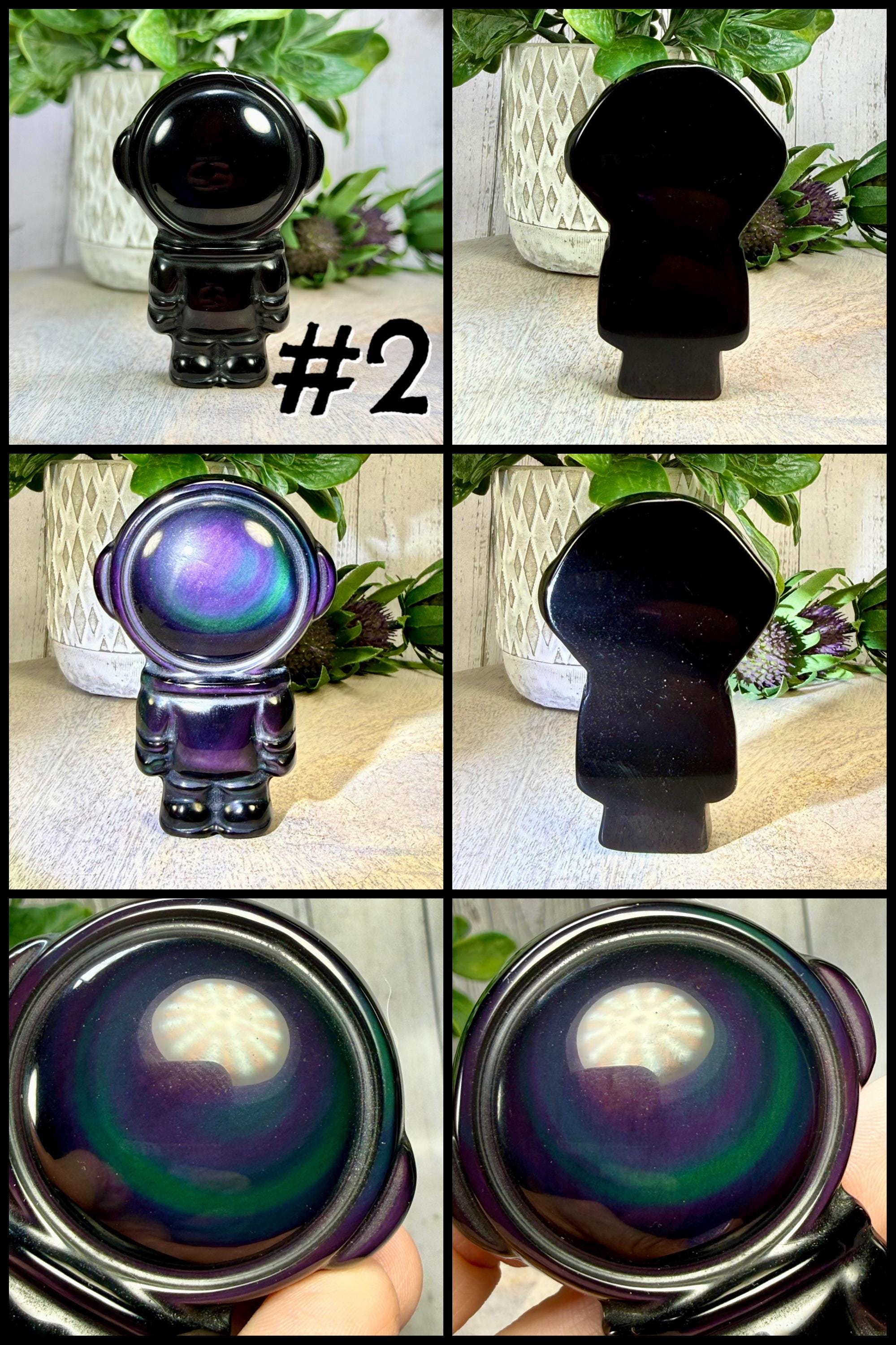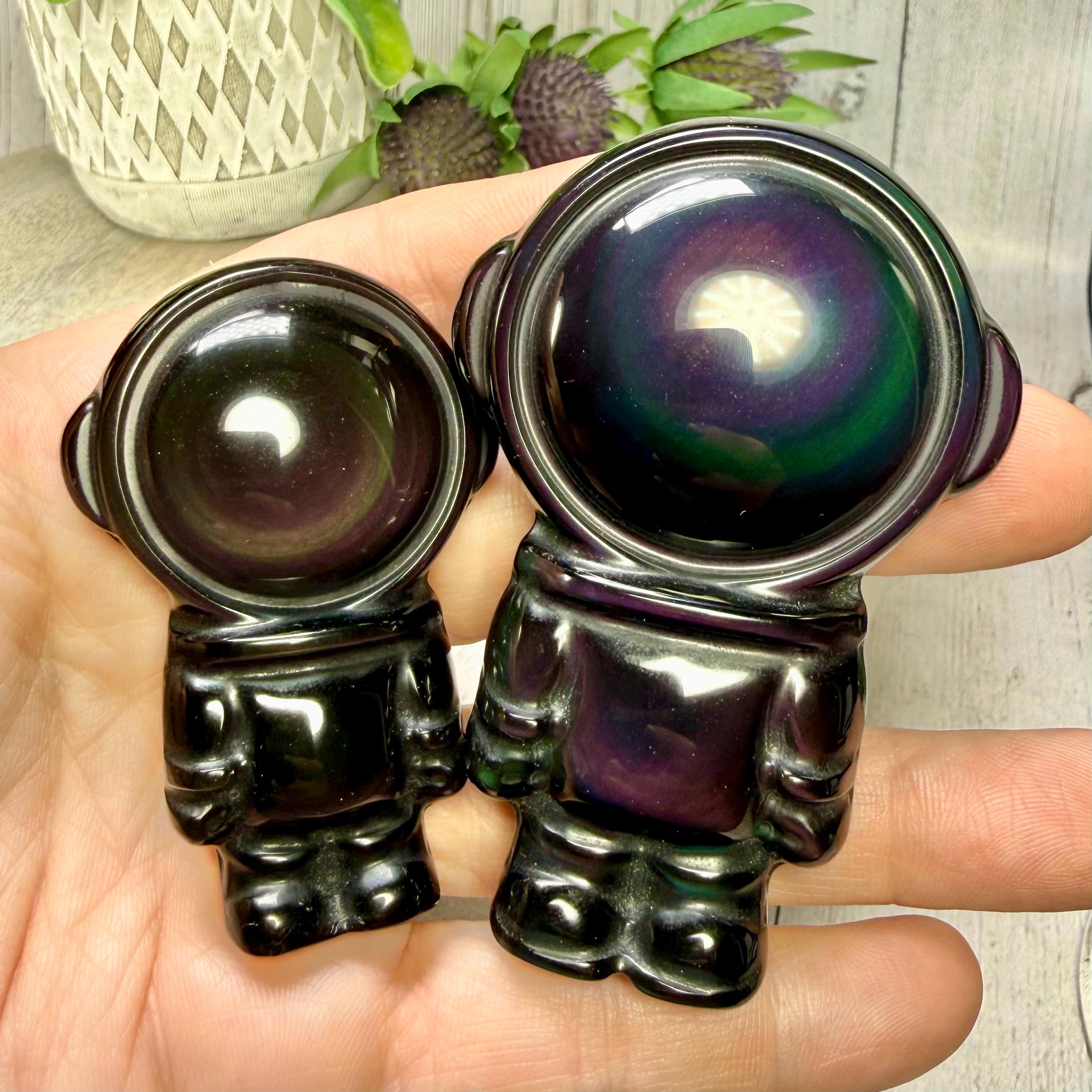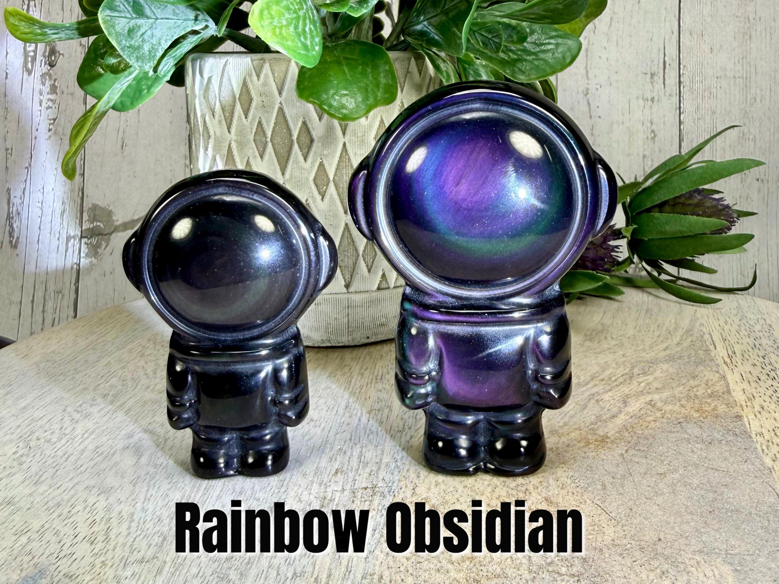 š¤Rainbow Obsidian Astronaut Carving, Rainbow Obsidian Space Man, Rainbow Obsidian Carving