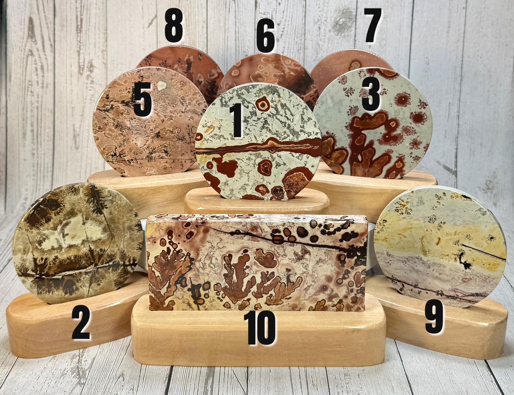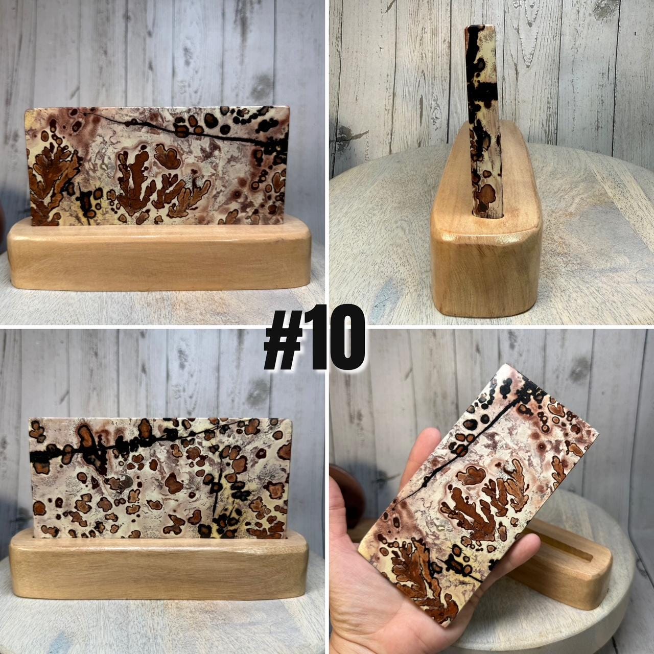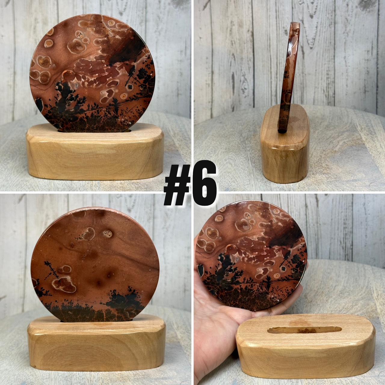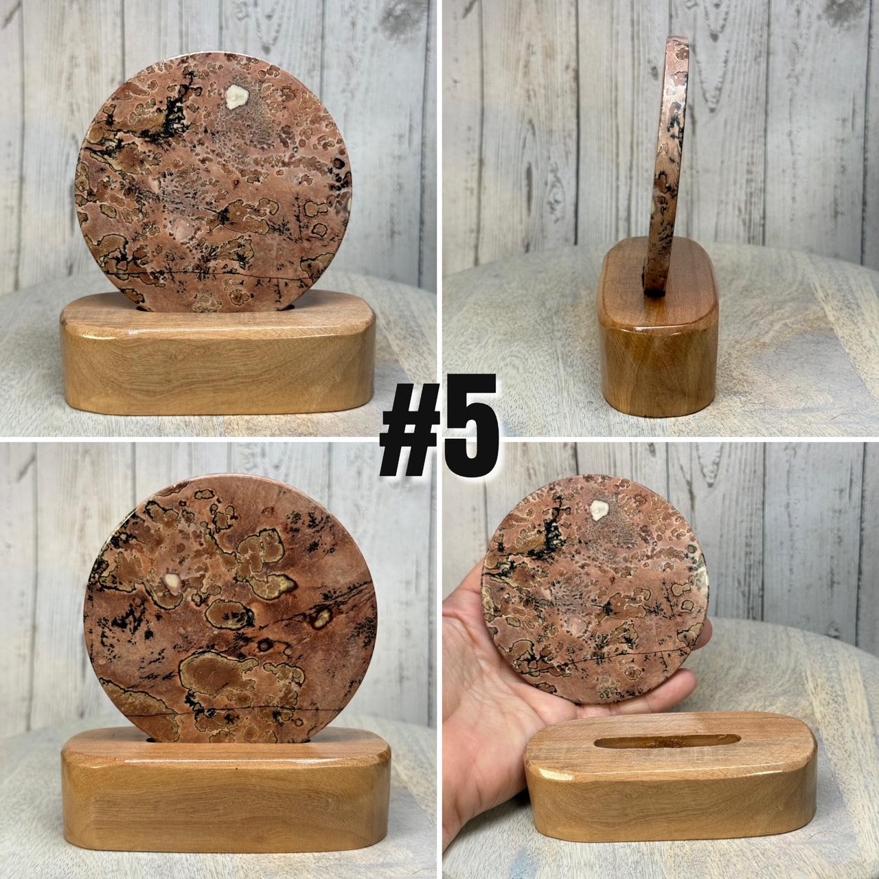 ✨#10 Jasper on Wooden Stand Measurements & Weight: 6.00" long (jasper) x 4.25" tall (on stand) / 522g