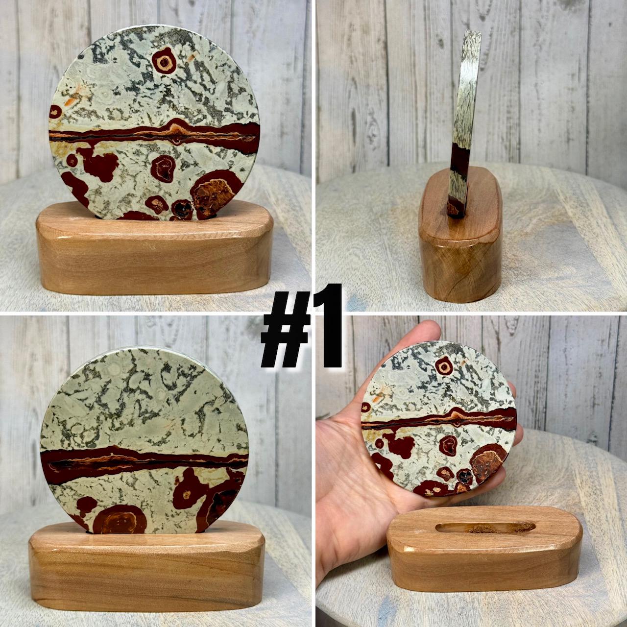 ✨#1 Jasper on Wooden Stand Measurements & Weight: 3.71" around x 4.64" tall / 239g