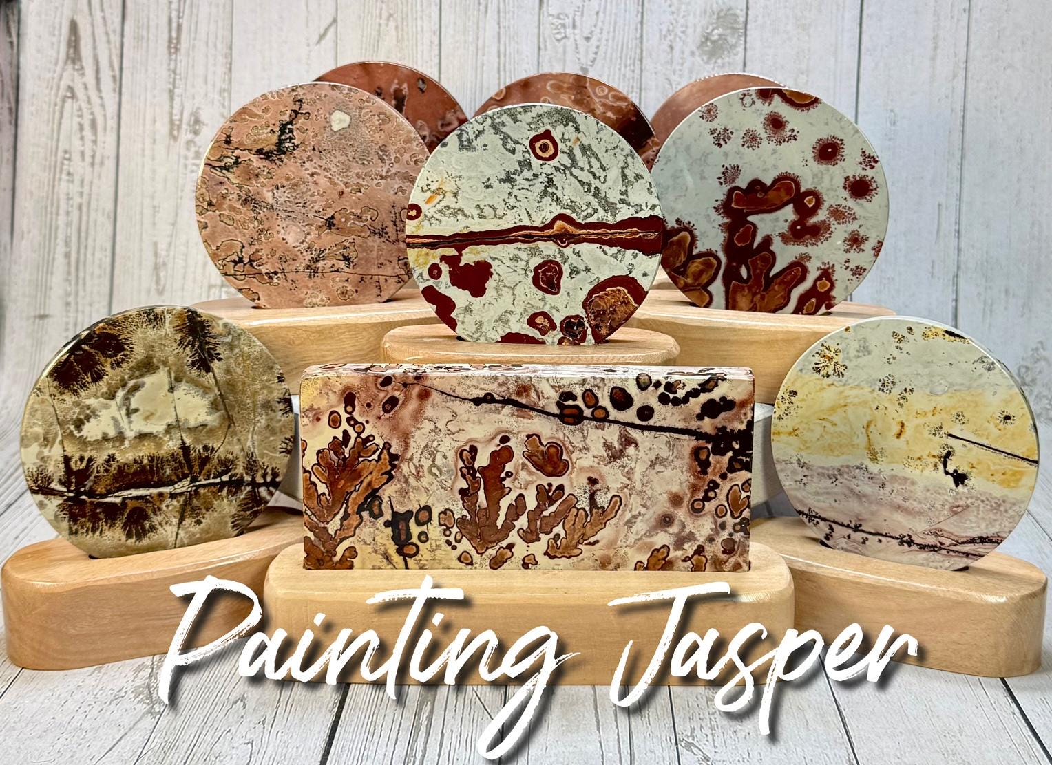 ✨Painting Jasper on Wooden Stand, Picture Jasper, Beautiful Landscape Scenery in Each Piece