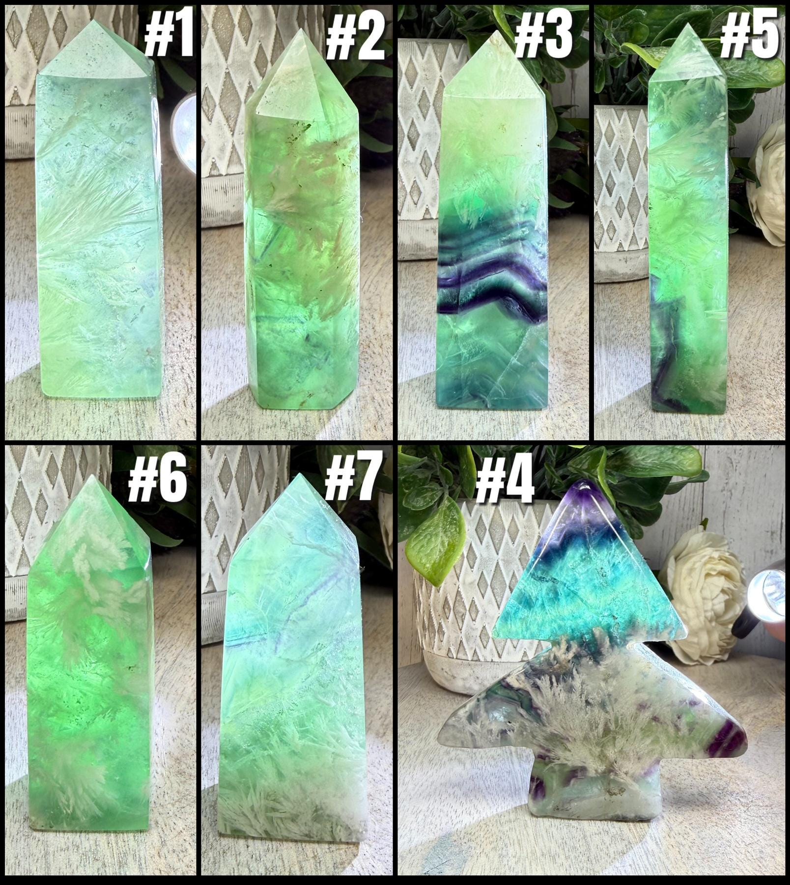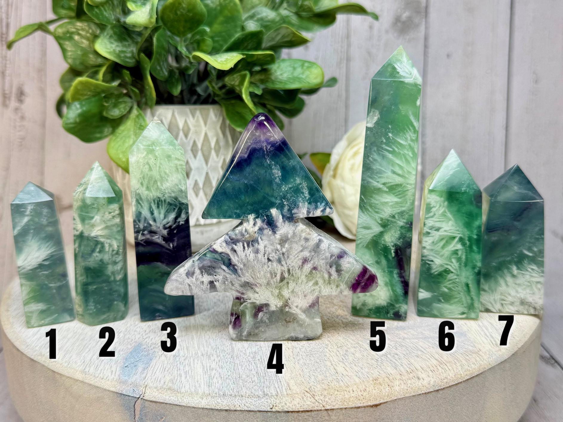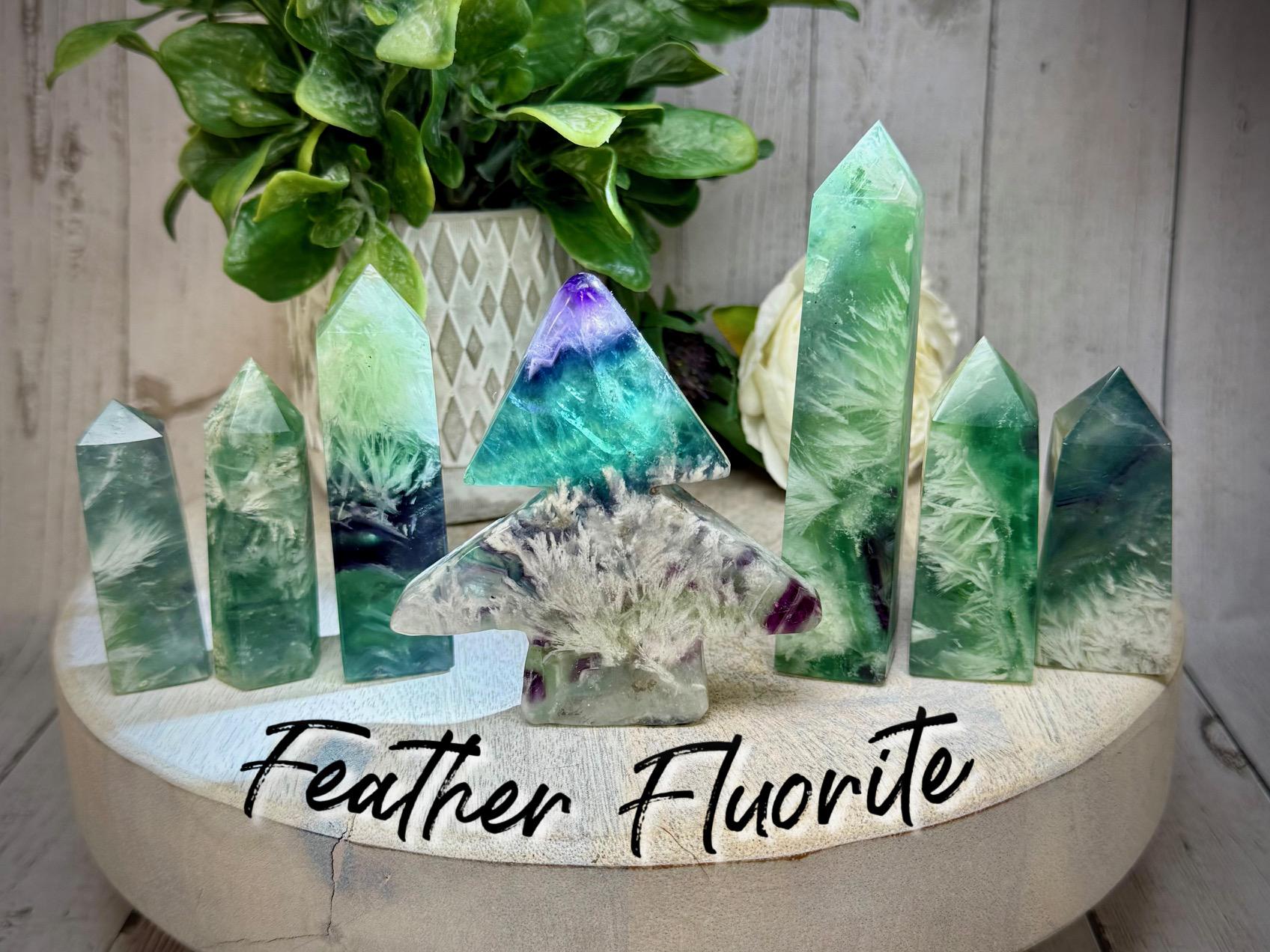 💚Feather Fluorite Tower or Tree, Blue Purple Green Fluorite