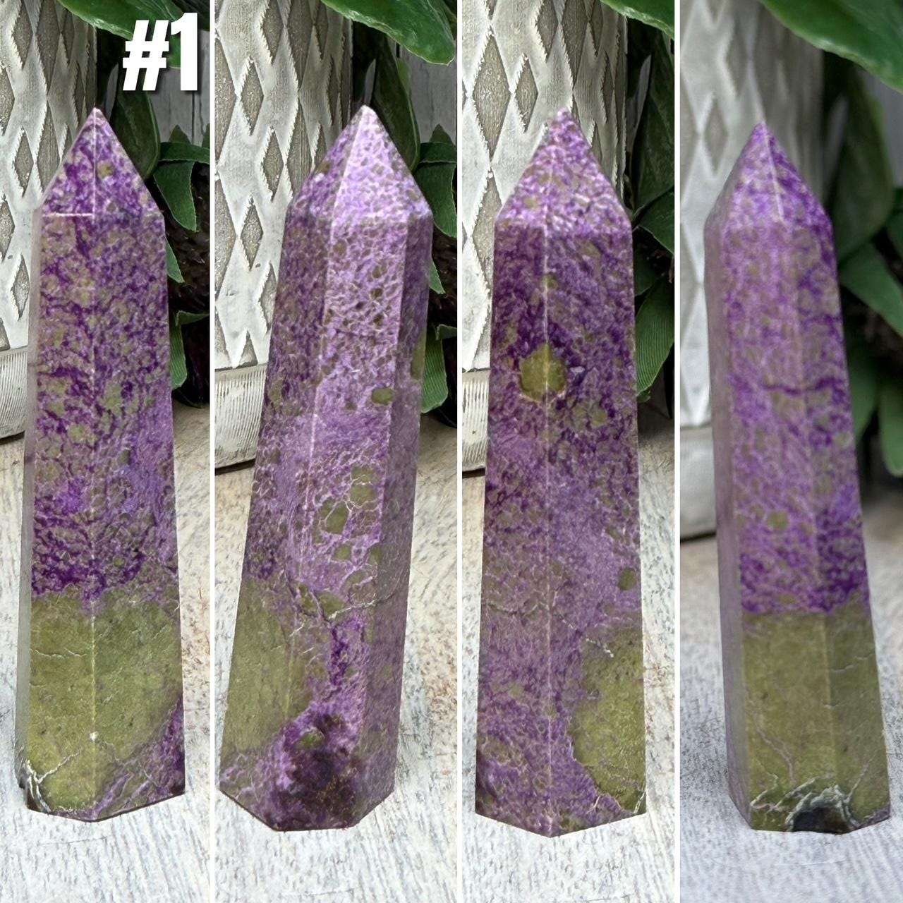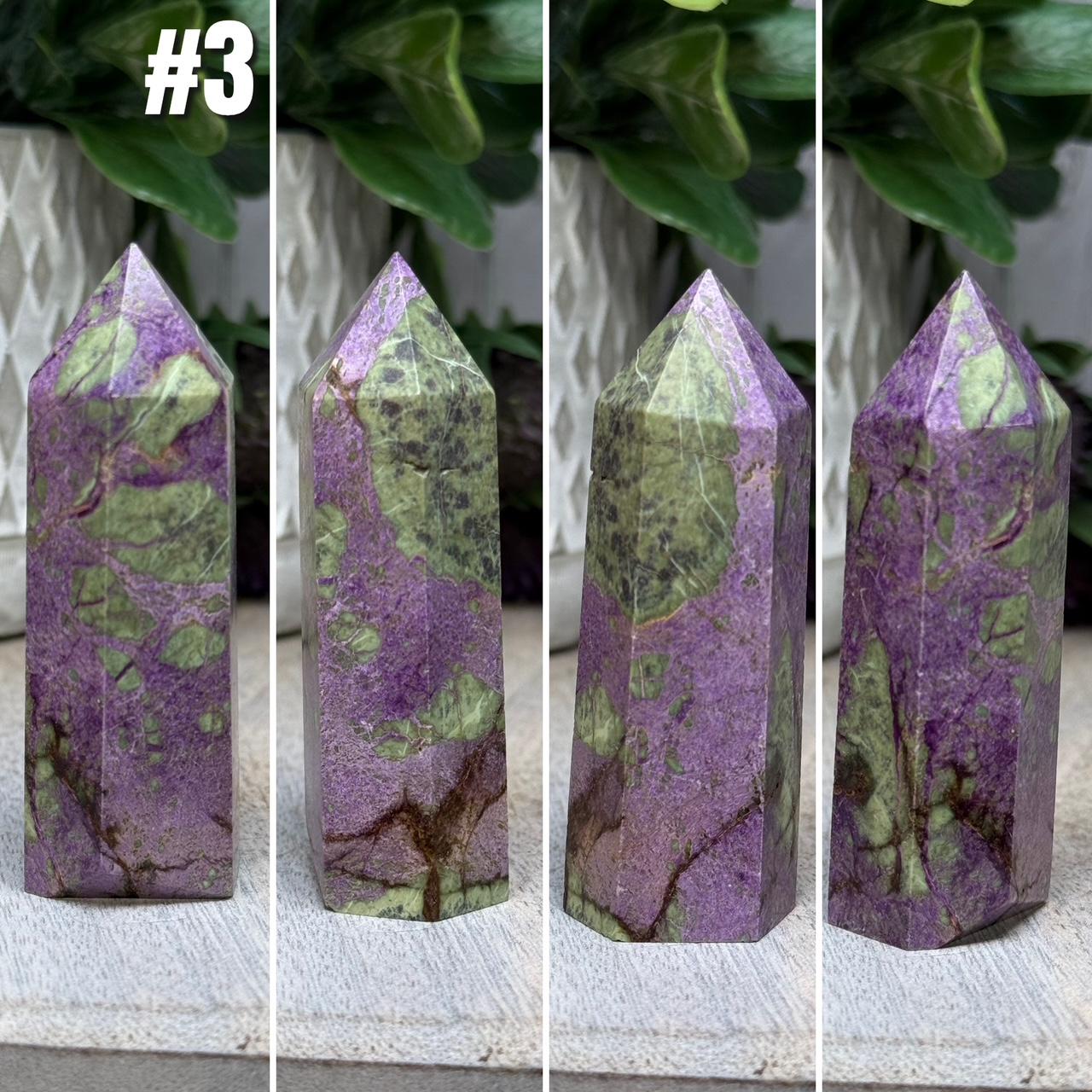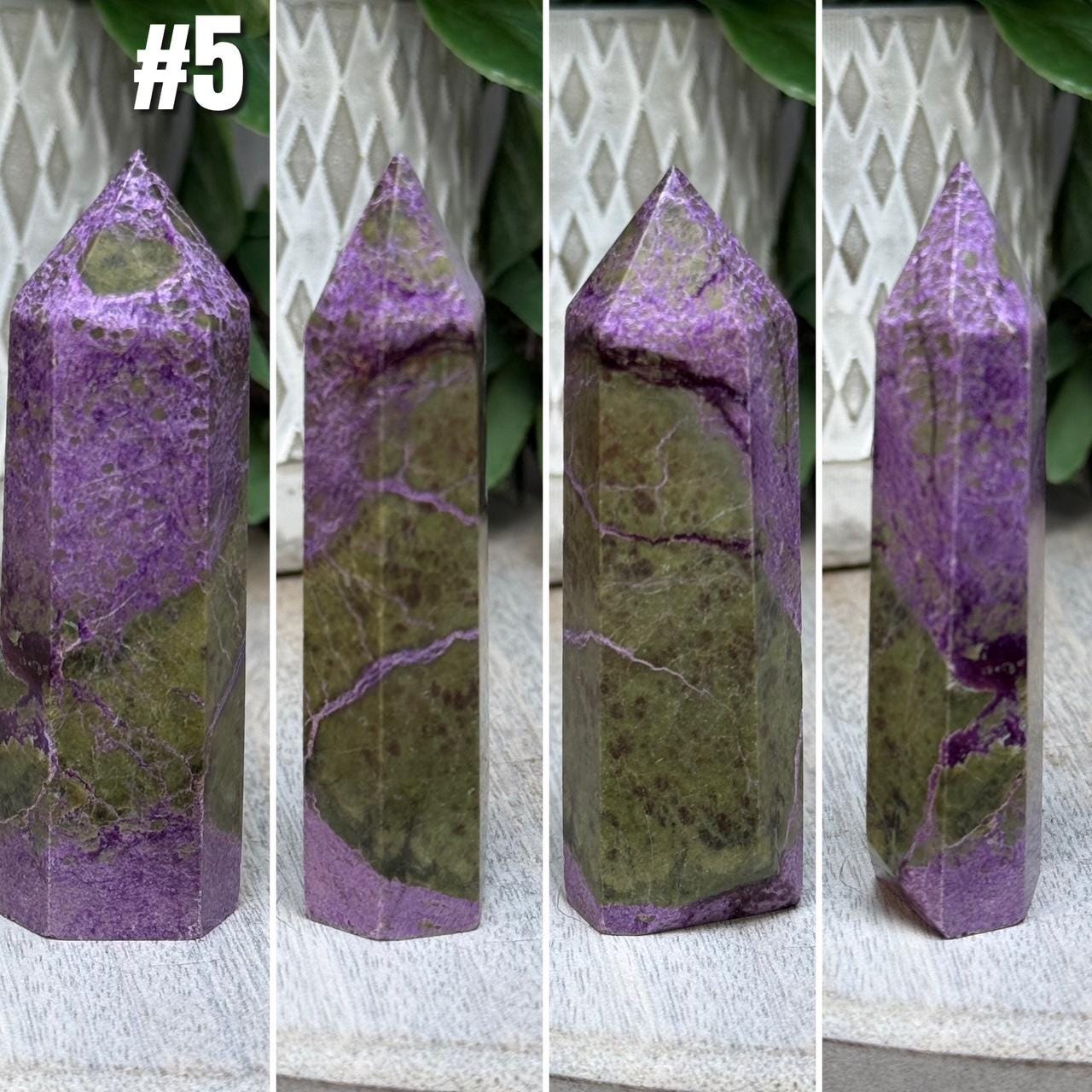 💜Atlantisite, Stichtite with Serpentine Tower, Stichtite and Serpentine Crystal, Purple Crystal