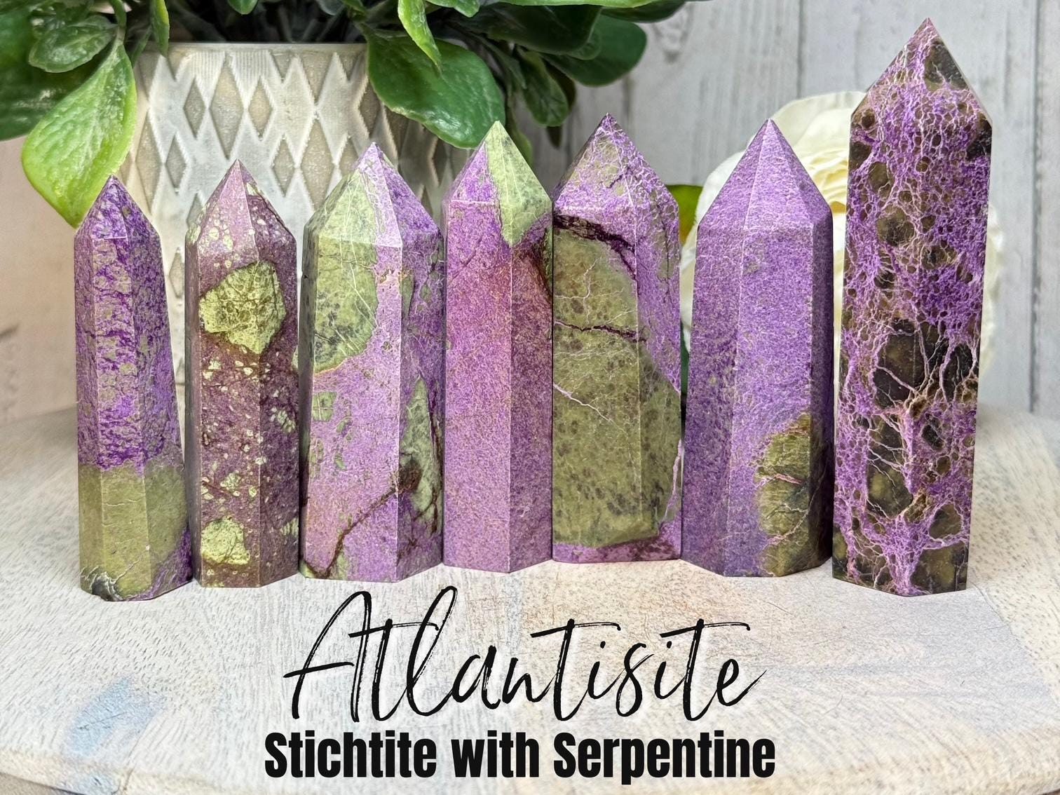 💜Atlantisite is a rare and powerful crystal that blends green Serpentine with purple Stichtite, offering deep emotional healing, spiritual growth, and grounding energy. It is especially valued for connecting the heart and crown chakras and stimulating compassion.
