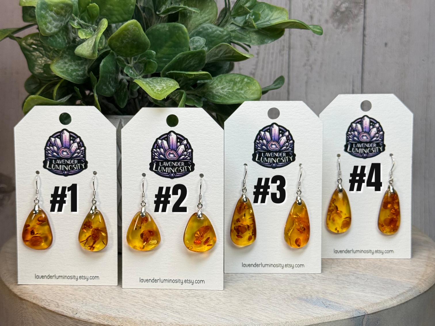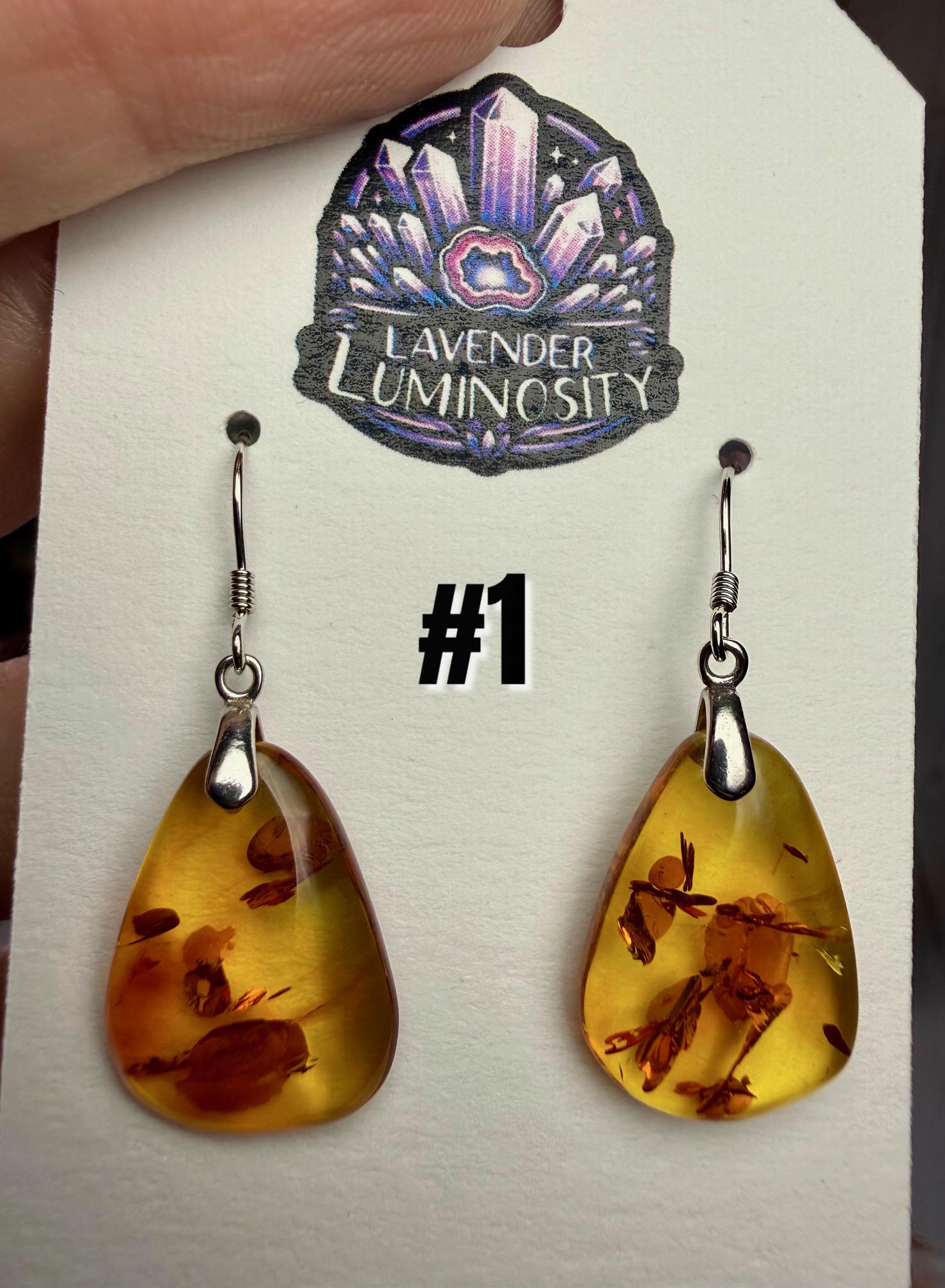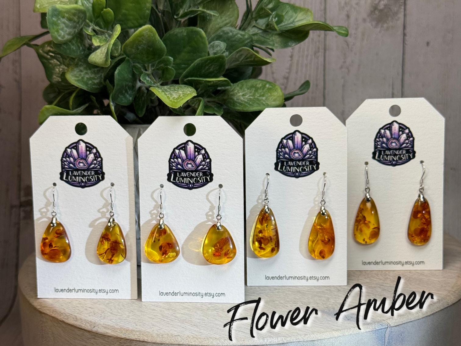 ✨Flower Amber Dangle Earrings / s925 Silver Earring Setting / Comes with rubber backs
