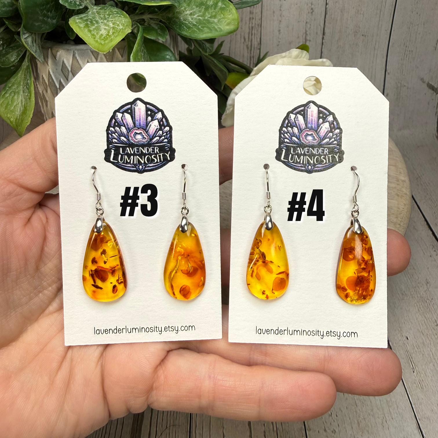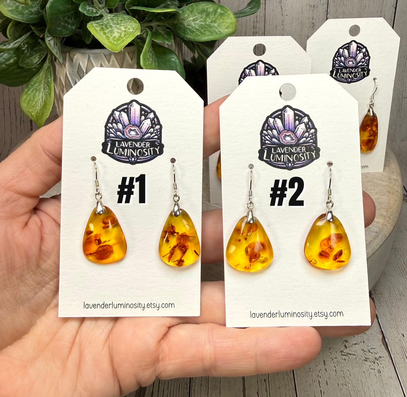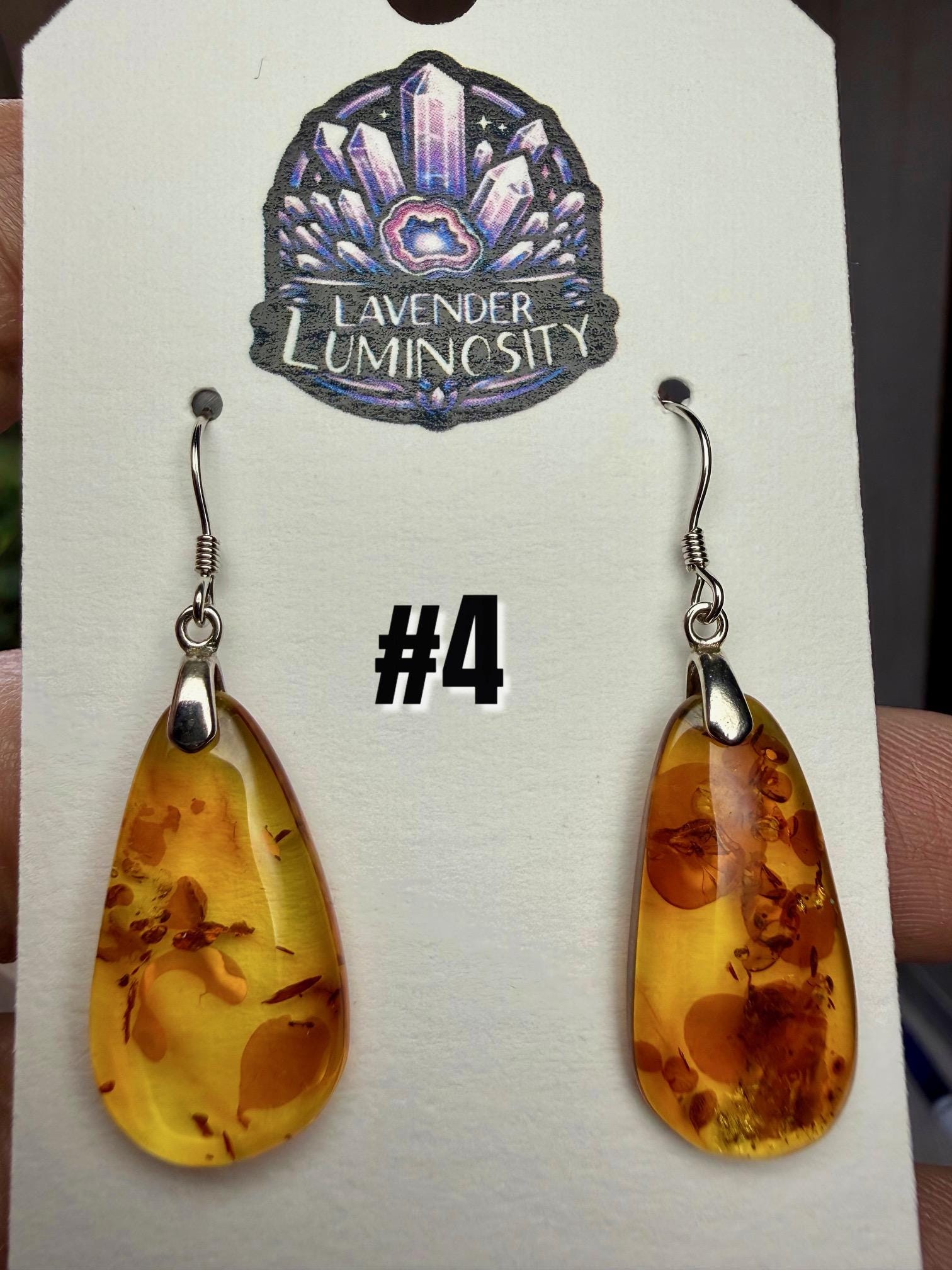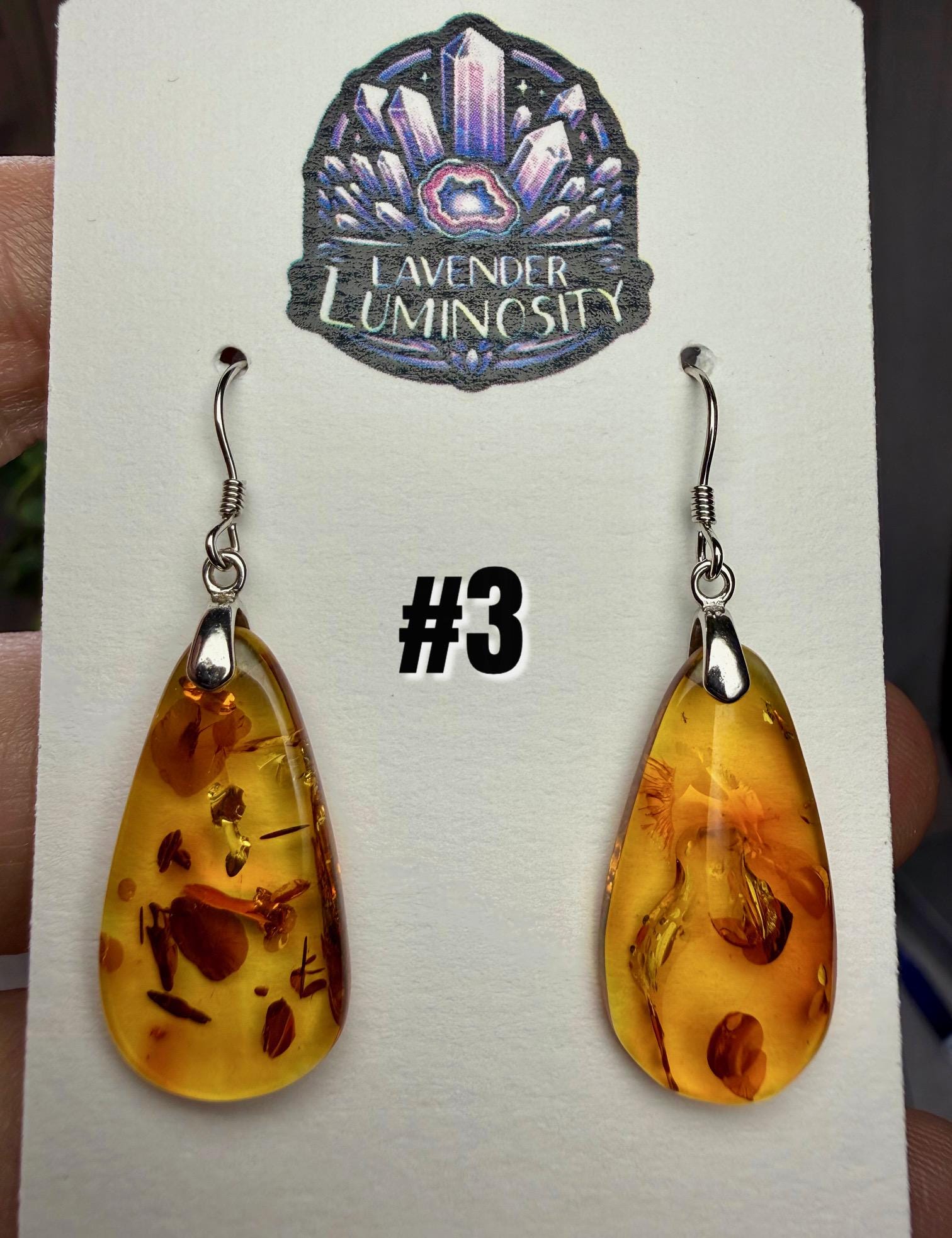 ✨Flower Amber Dangle Earrings / s925 Silver Earring Setting / Comes with rubber backs
