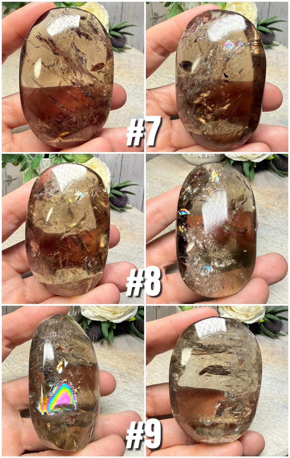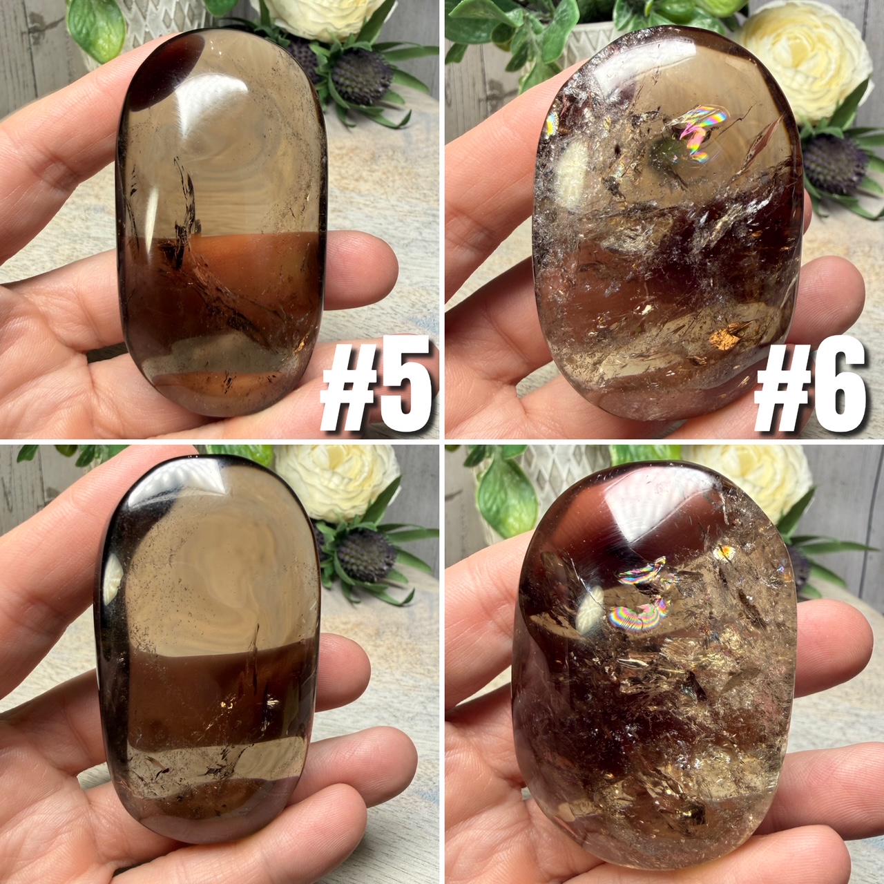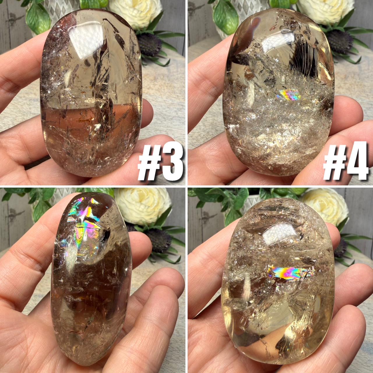 ✨Smoky Citrine Large Palm Stones with Rainbows