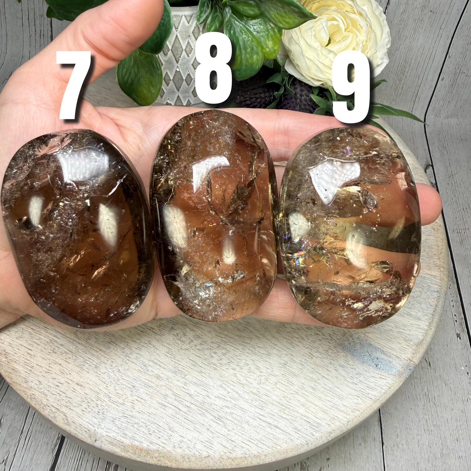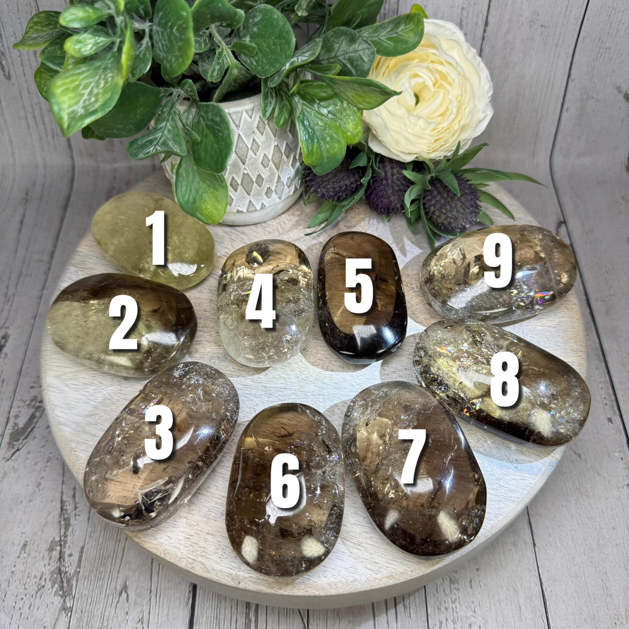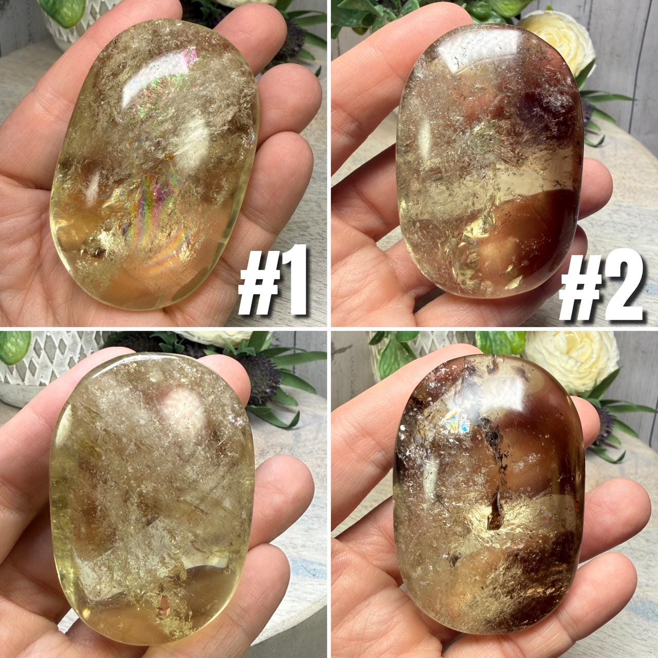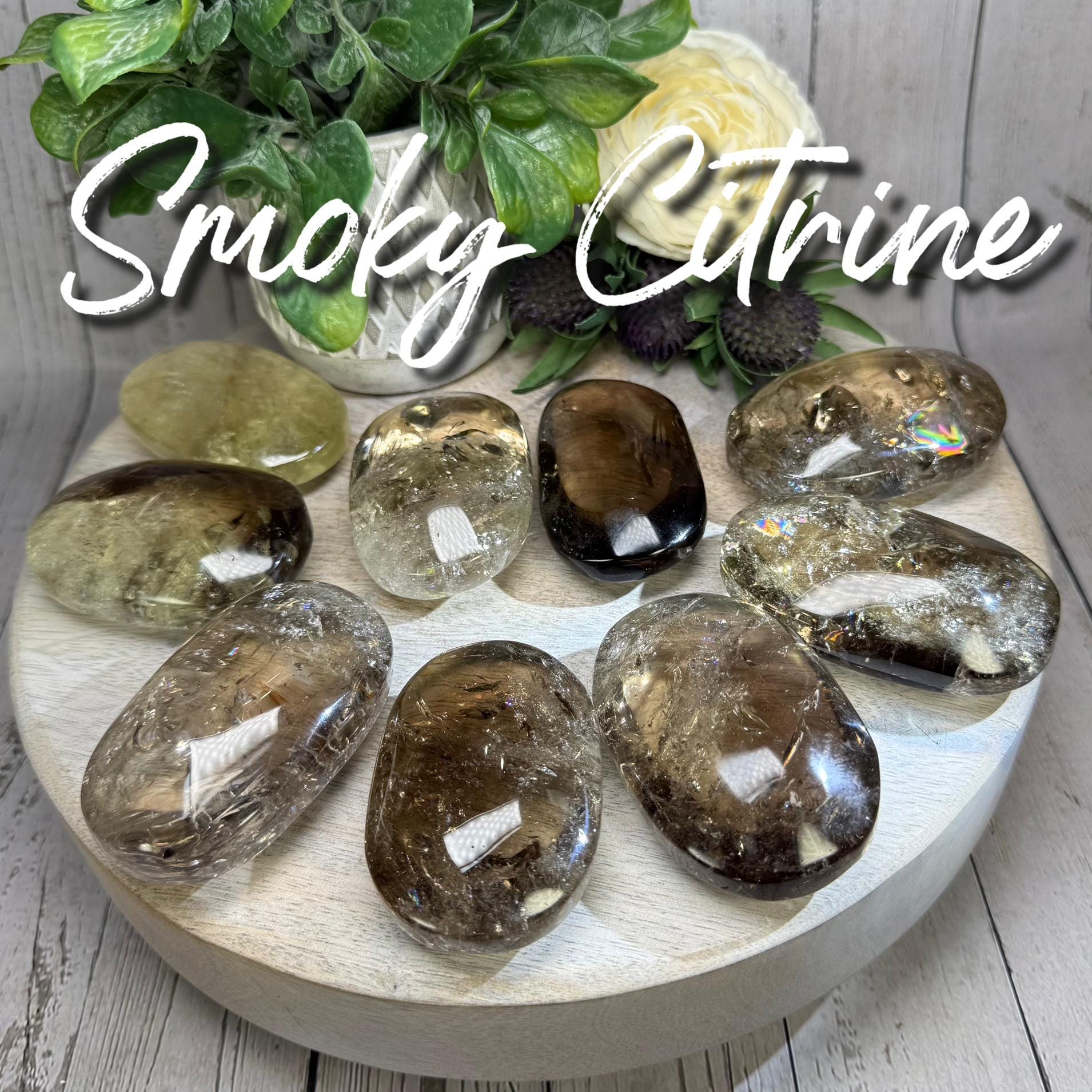 ✨Smoky Citrine Large Palm Stones with Rainbows