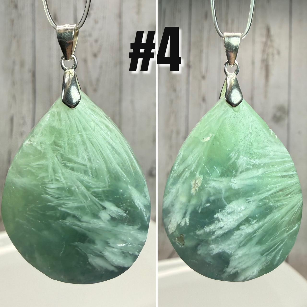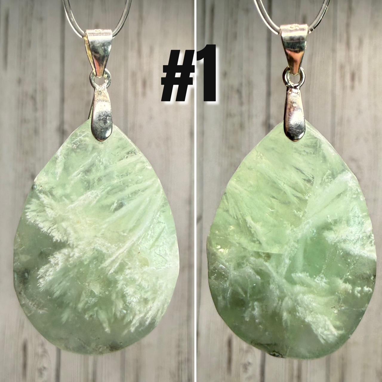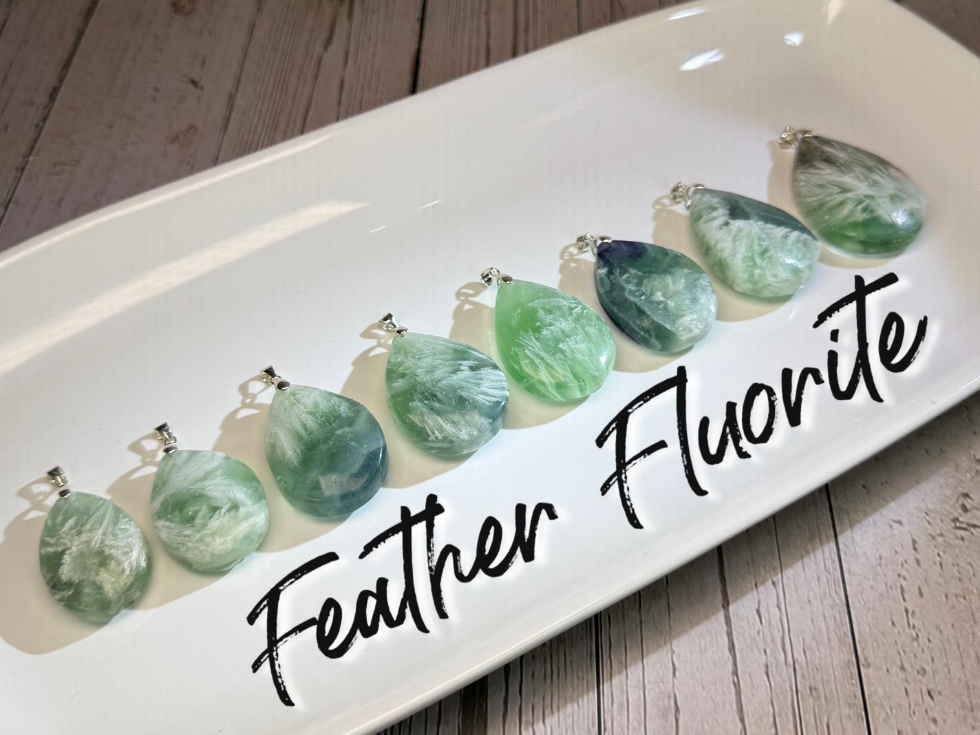 💚Feather Fluorite Pendant, Various Sizes, s925 Clasp