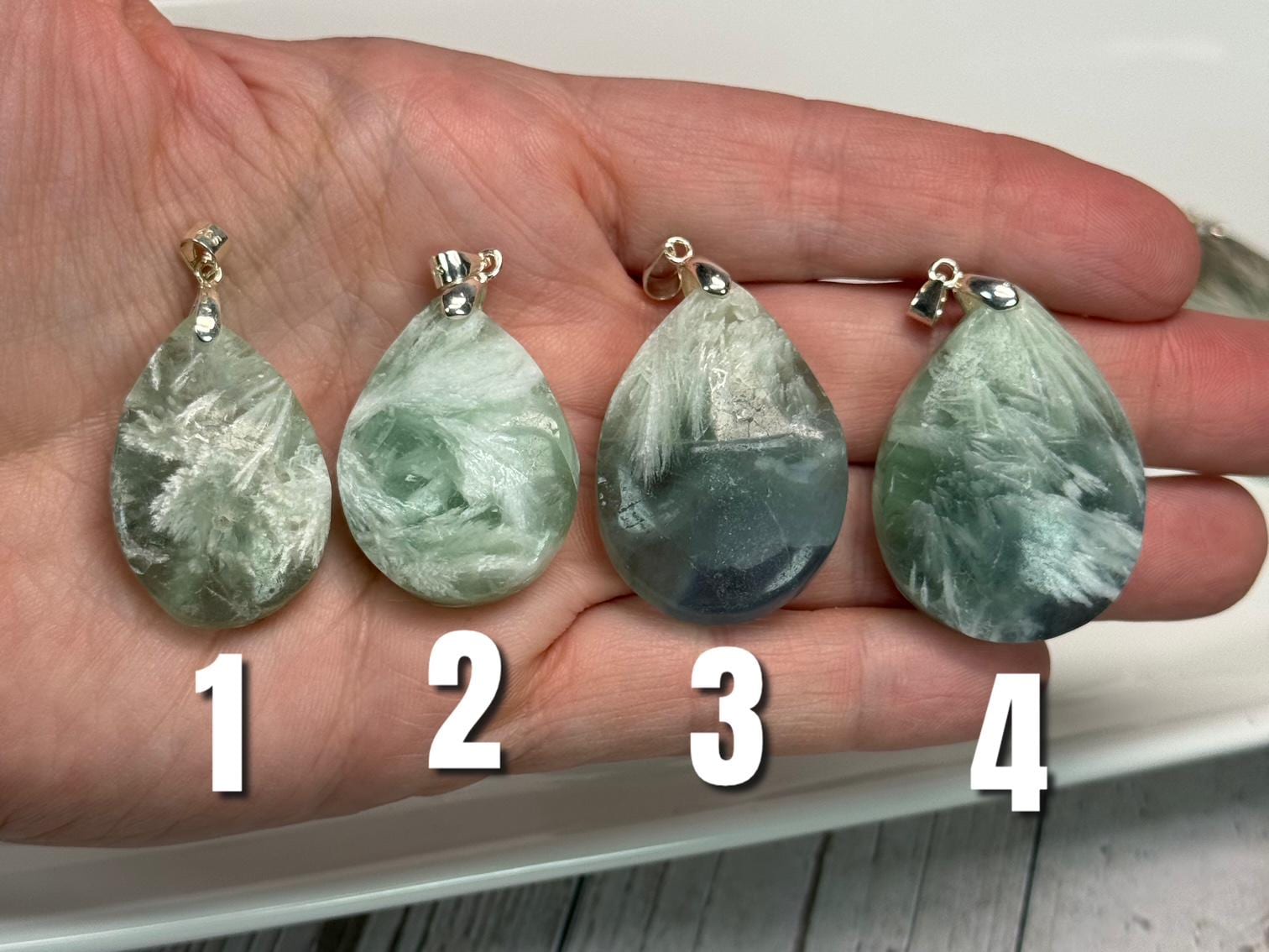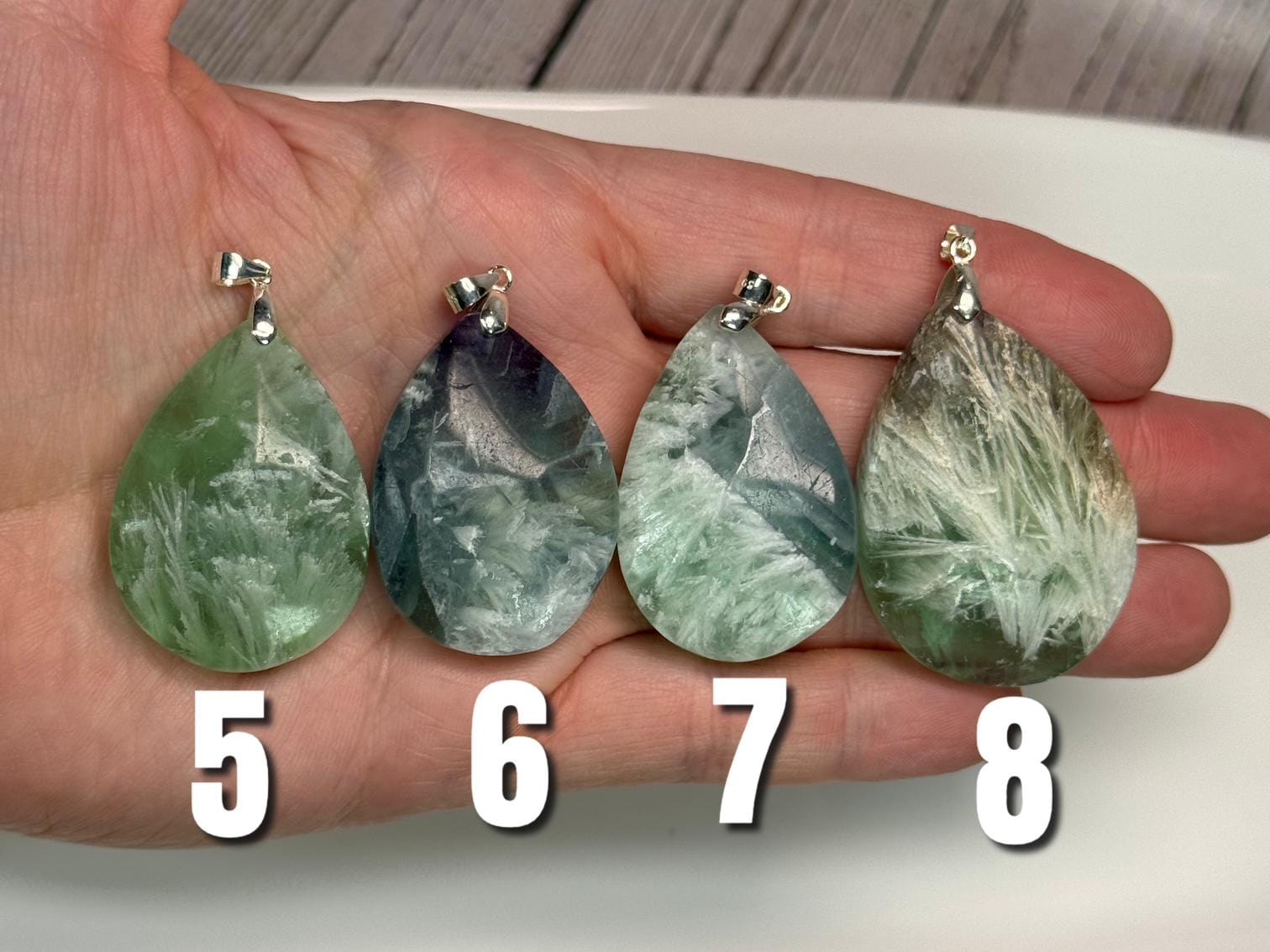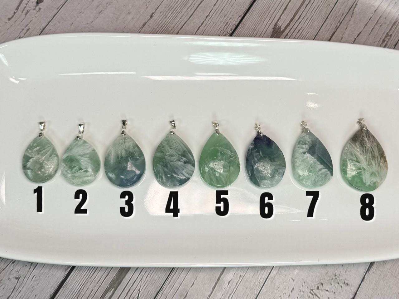 💚Feather Fluorite Pendant, Various Sizes, s925 Clasp