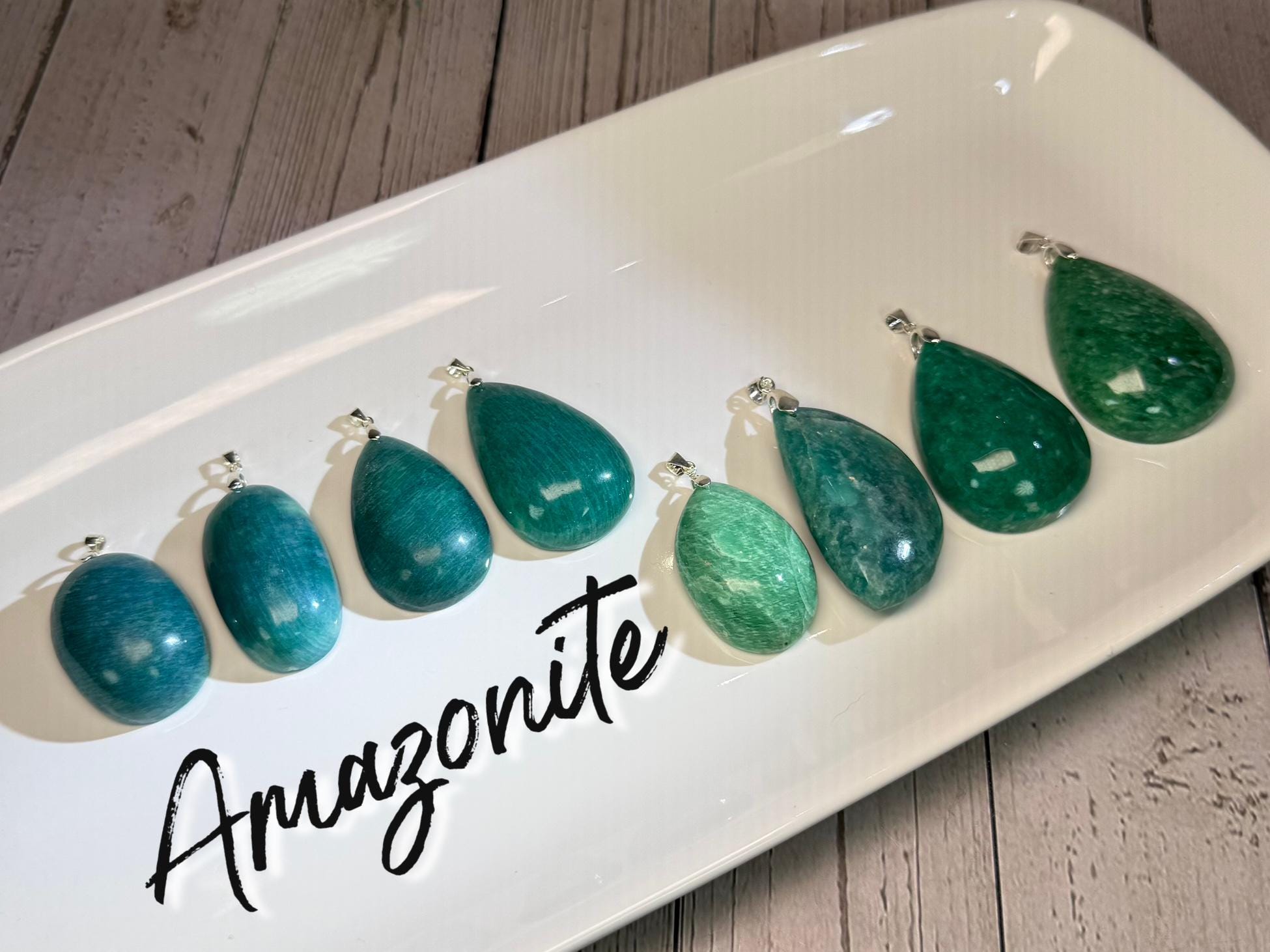 ✨Amazonite Pendant, Old Mine, Large Crystal Pendant, s925 Silver Clasp, Stone of Success