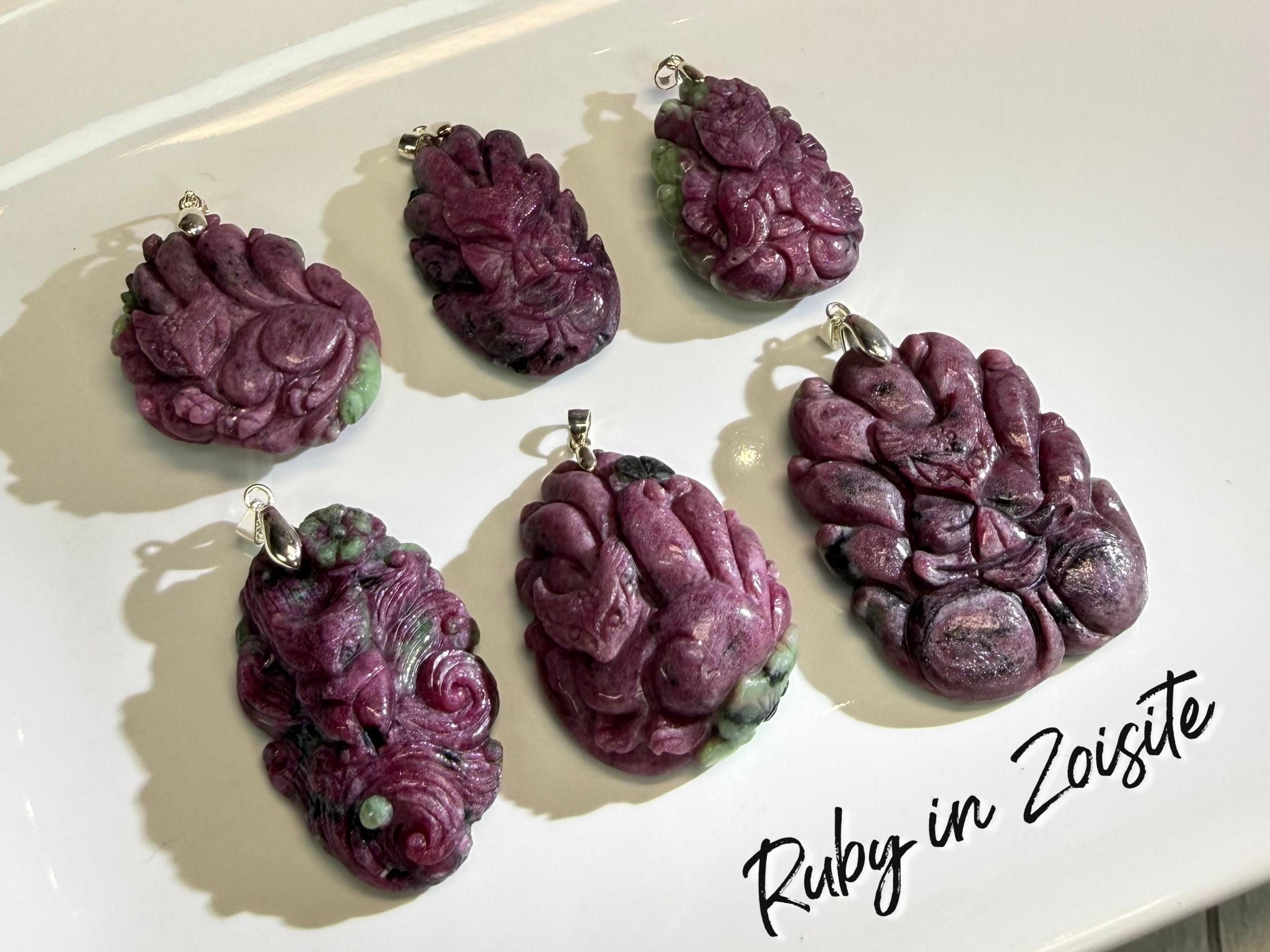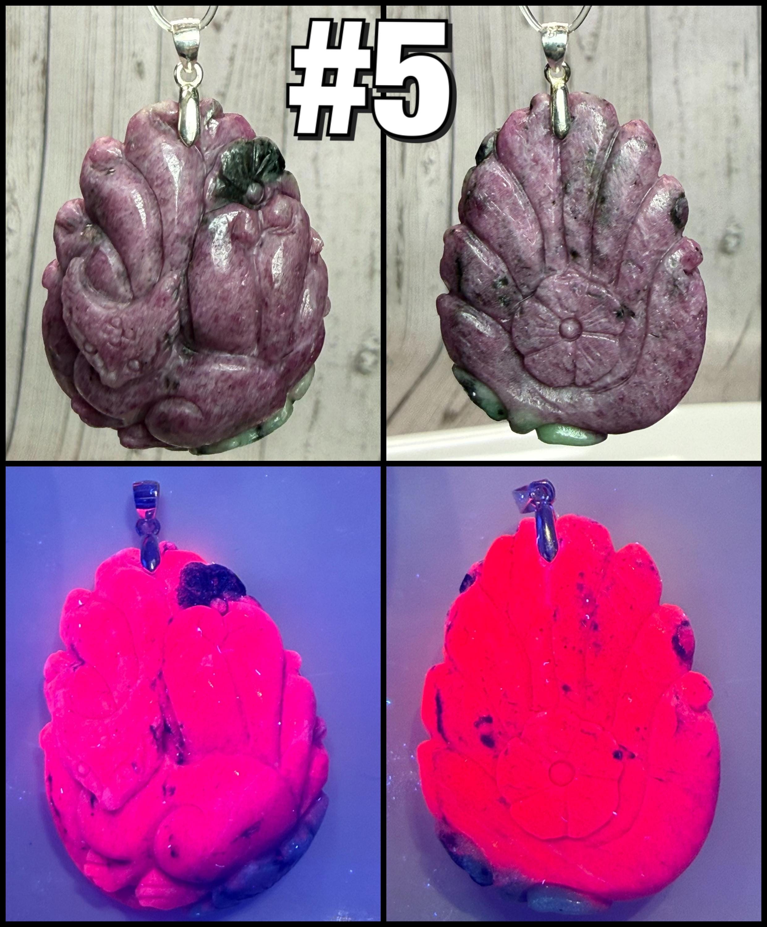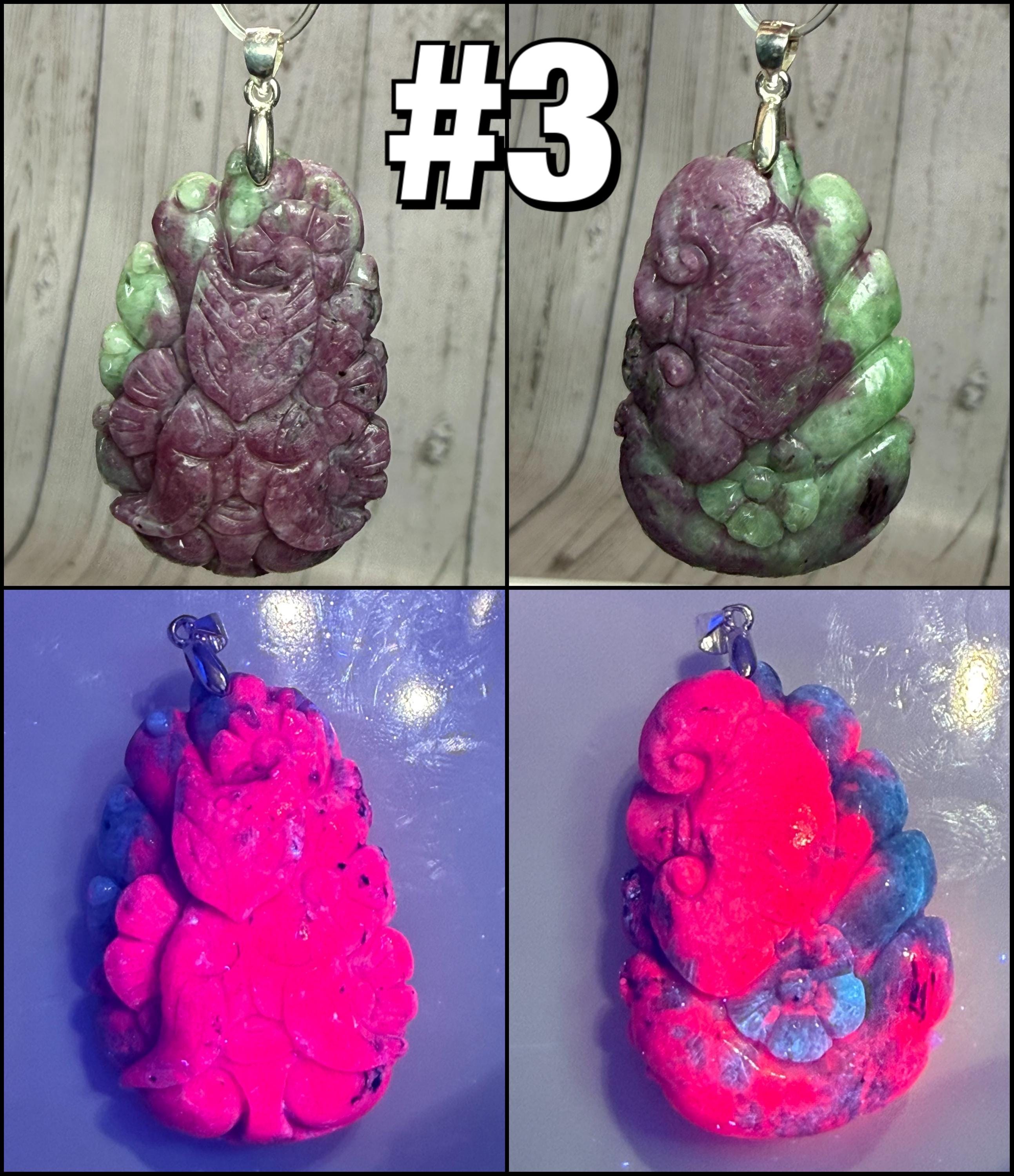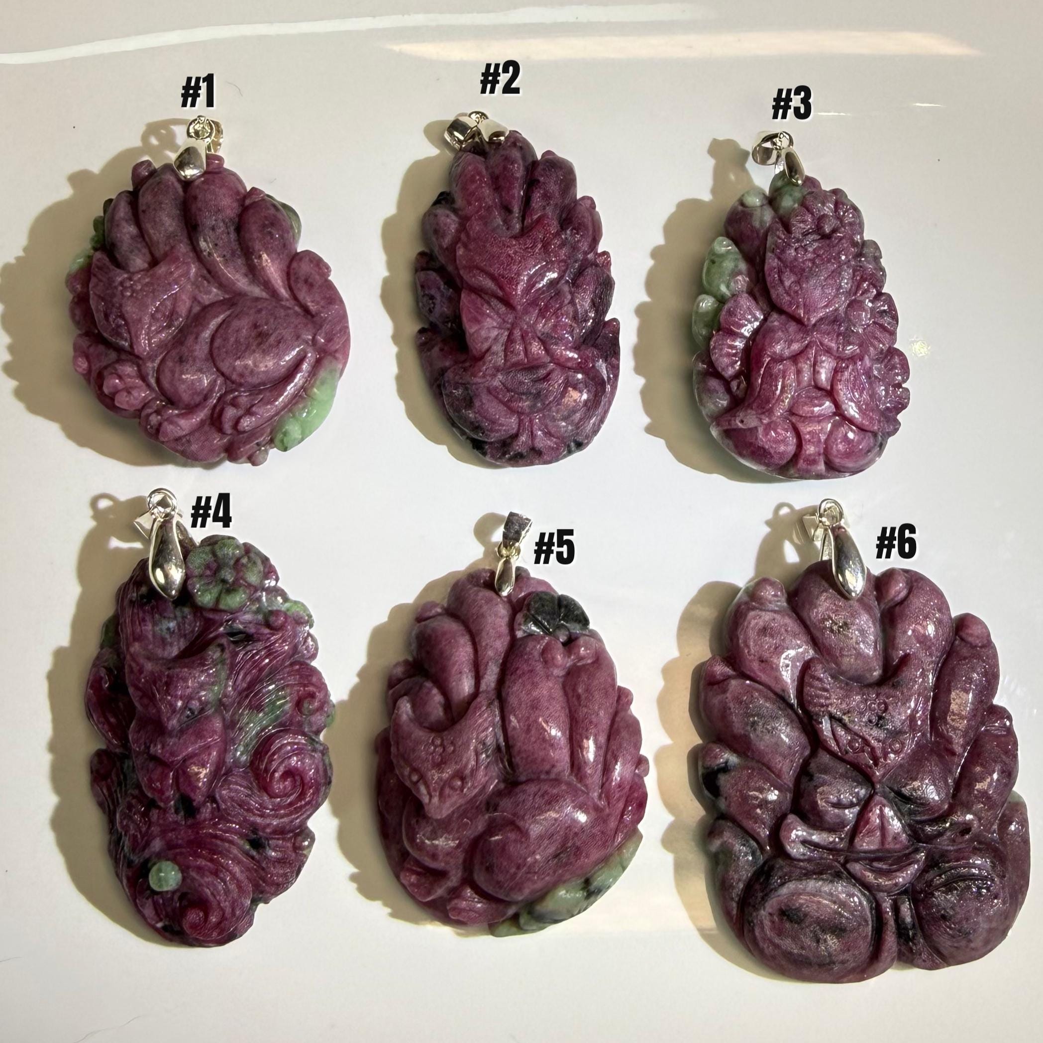 ❤️Ruby in Zoisite Pendant, Nine-Tailed Fox, Anyolite, UV Reactive Crystal, 925 Silver Clasp