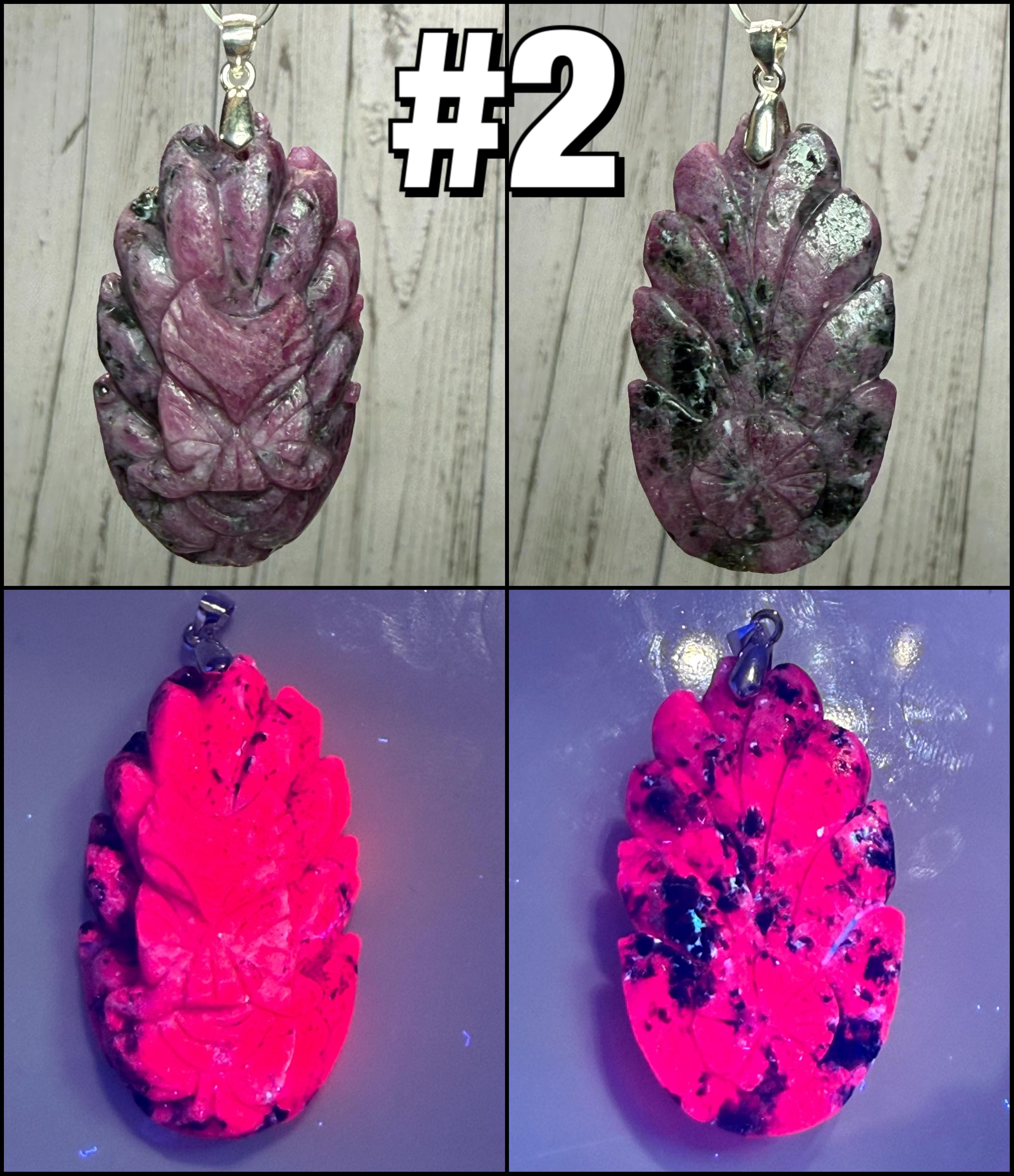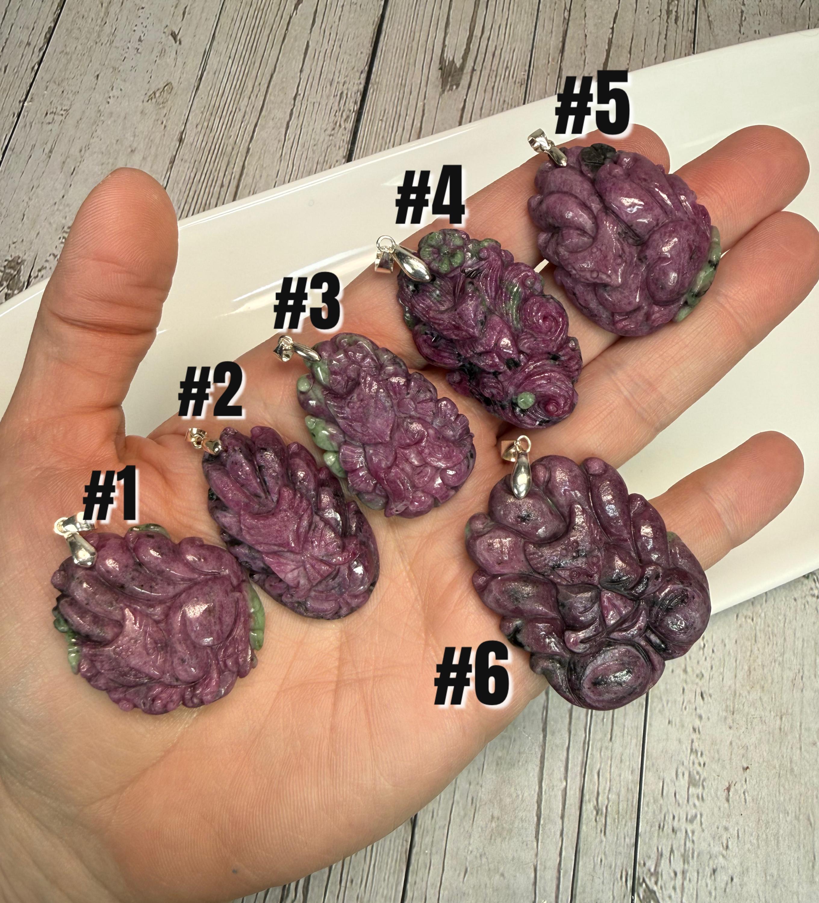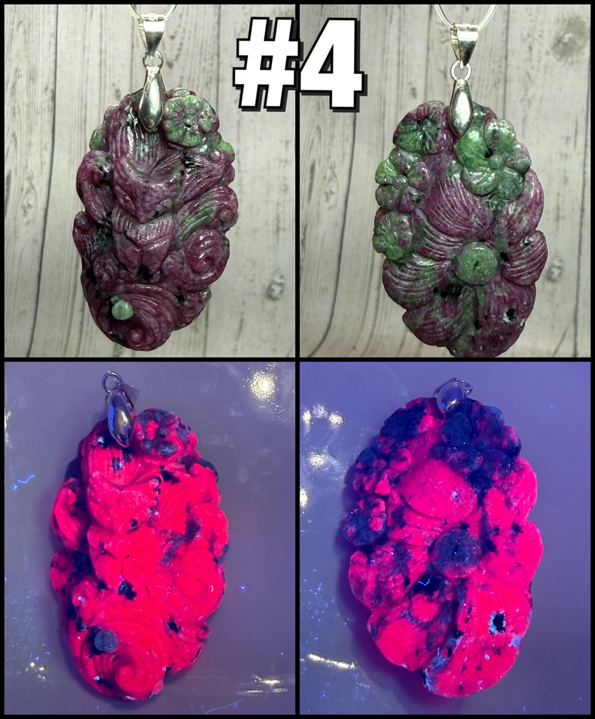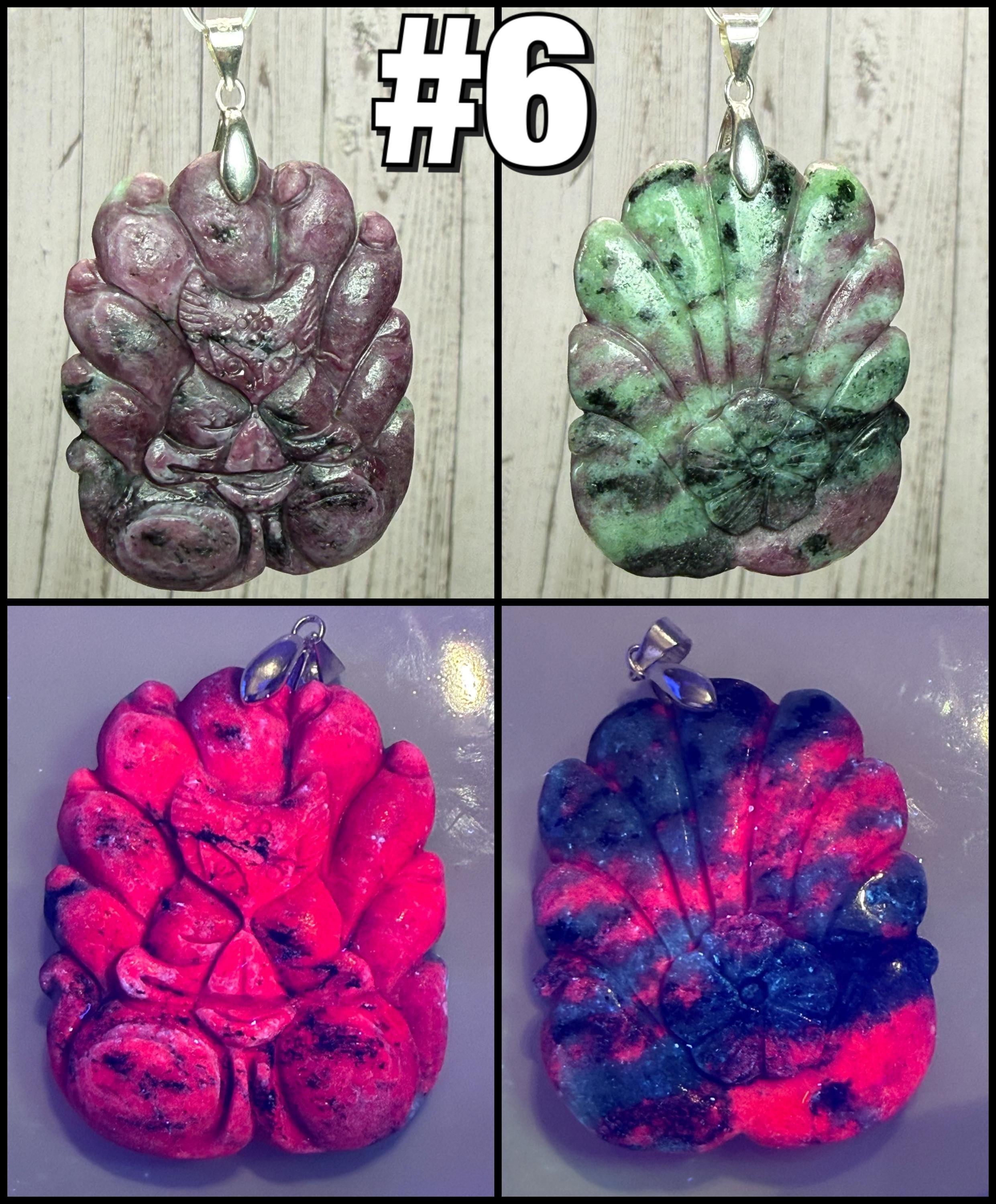❤️Ruby in Zoisite Pendant, Nine-Tailed Fox, Anyolite, UV Reactive Crystal, 925 Silver Clasp