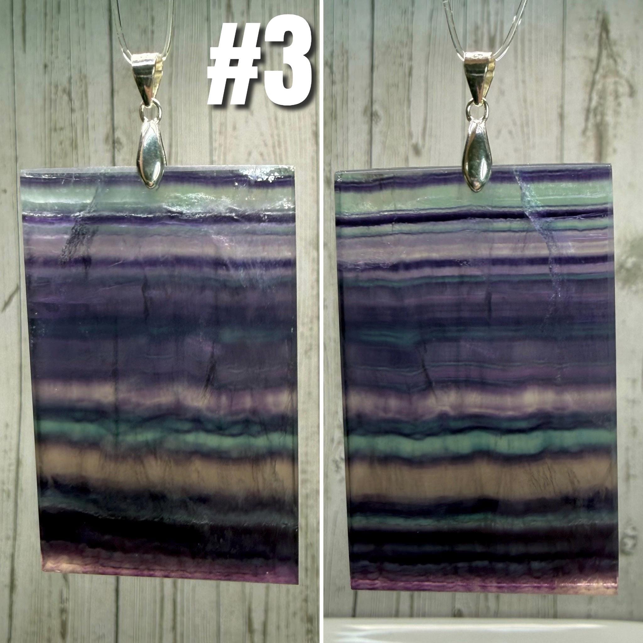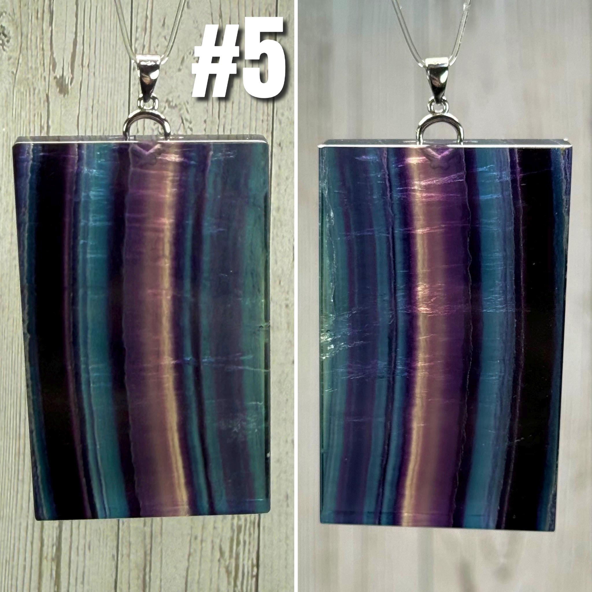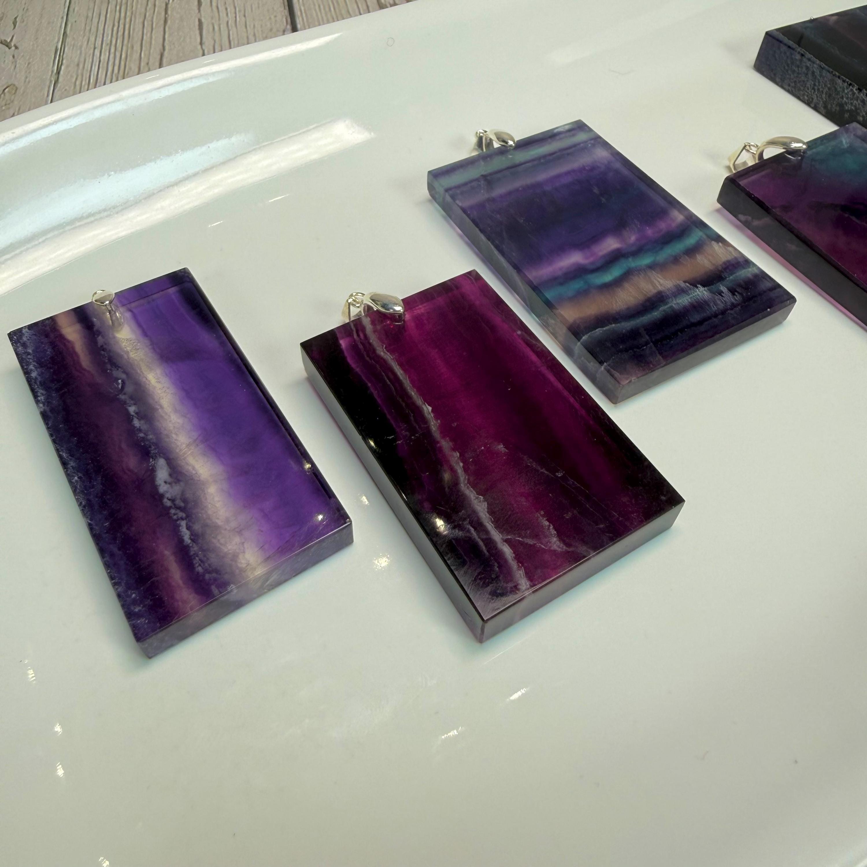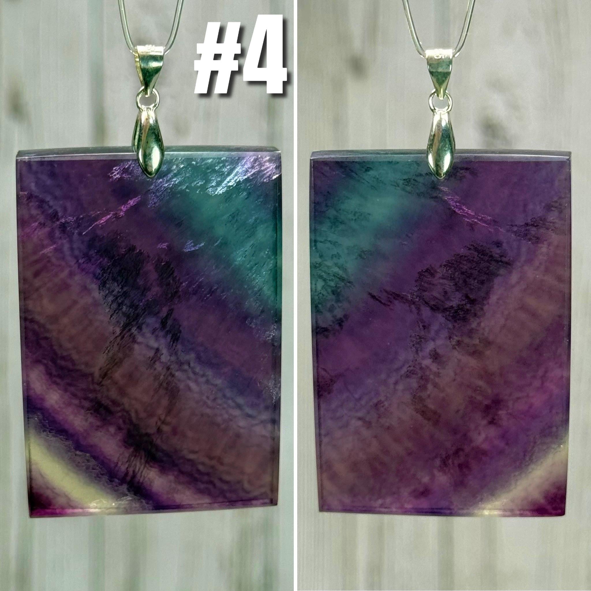💜Rainbow Fluorite Pendant, Large Rectangle Fluorite Crystal Pendant, s925 Silver Clasp