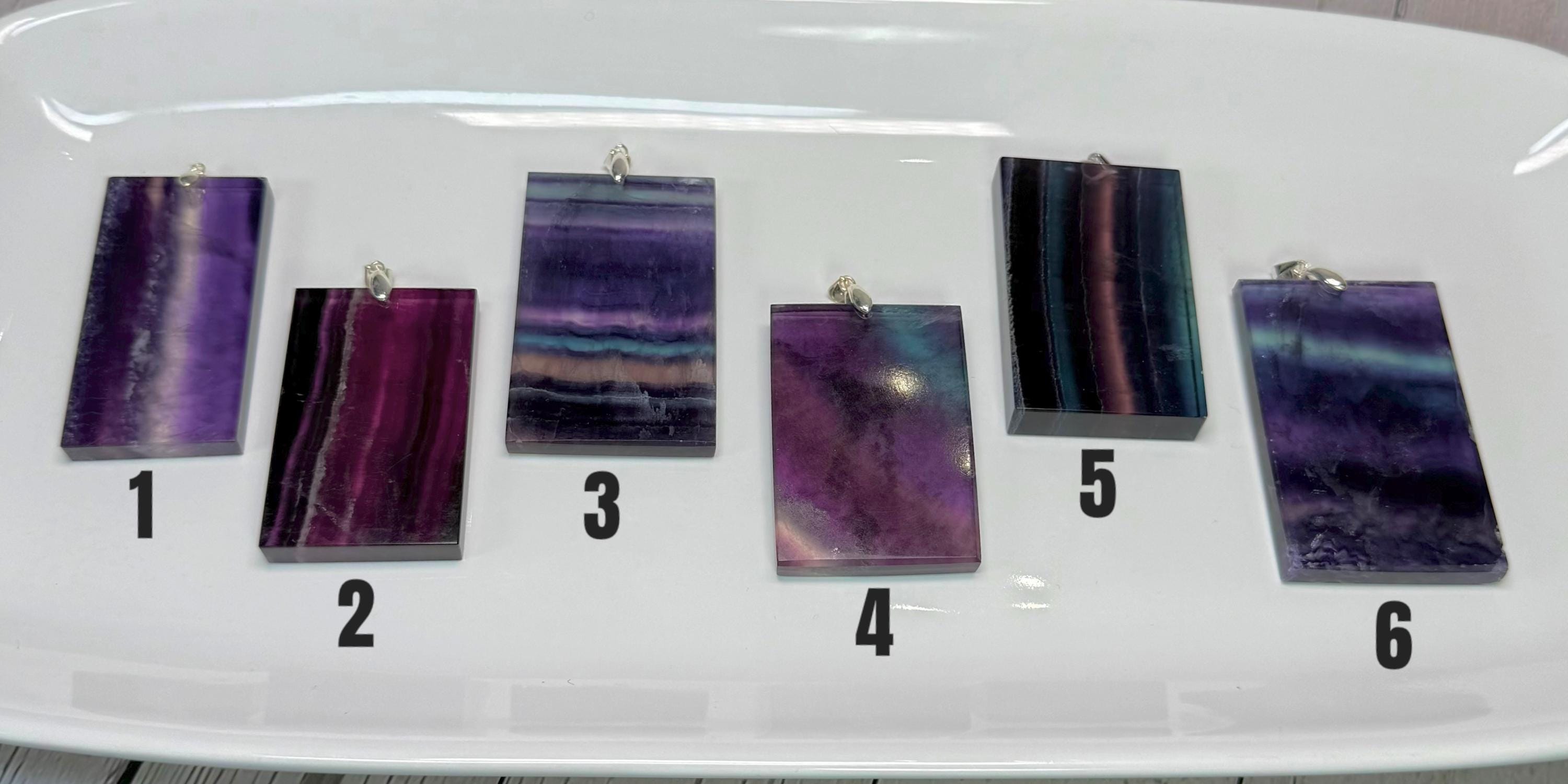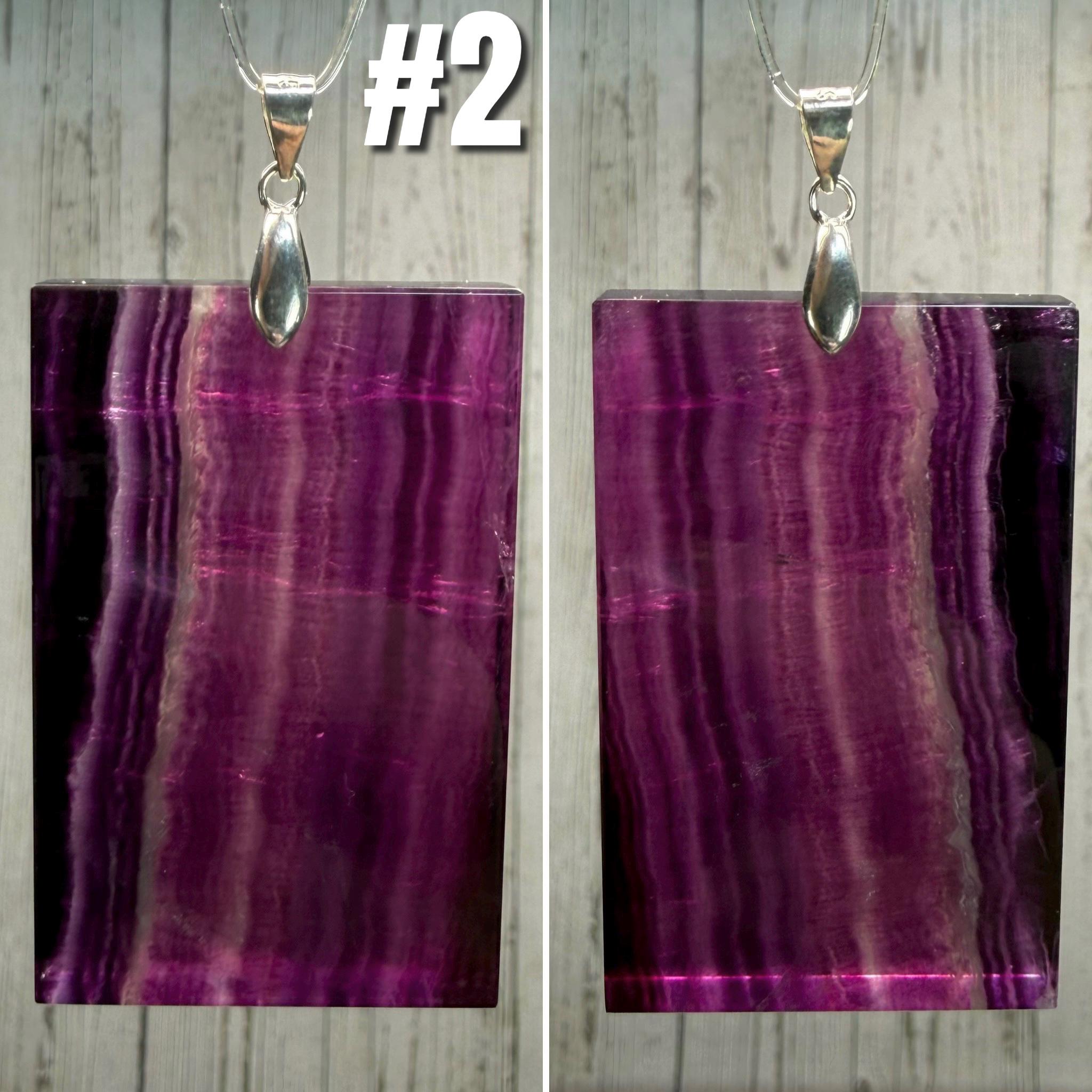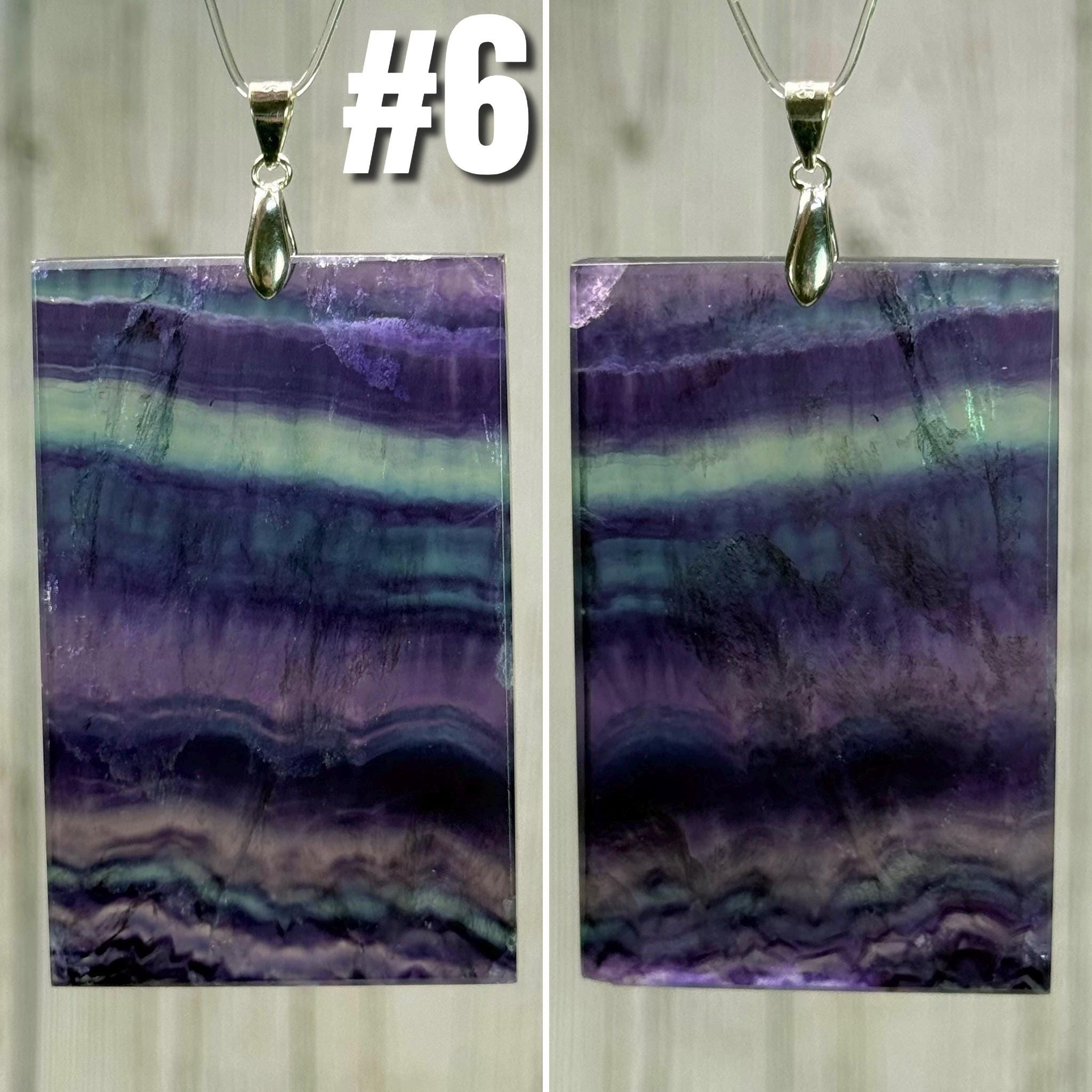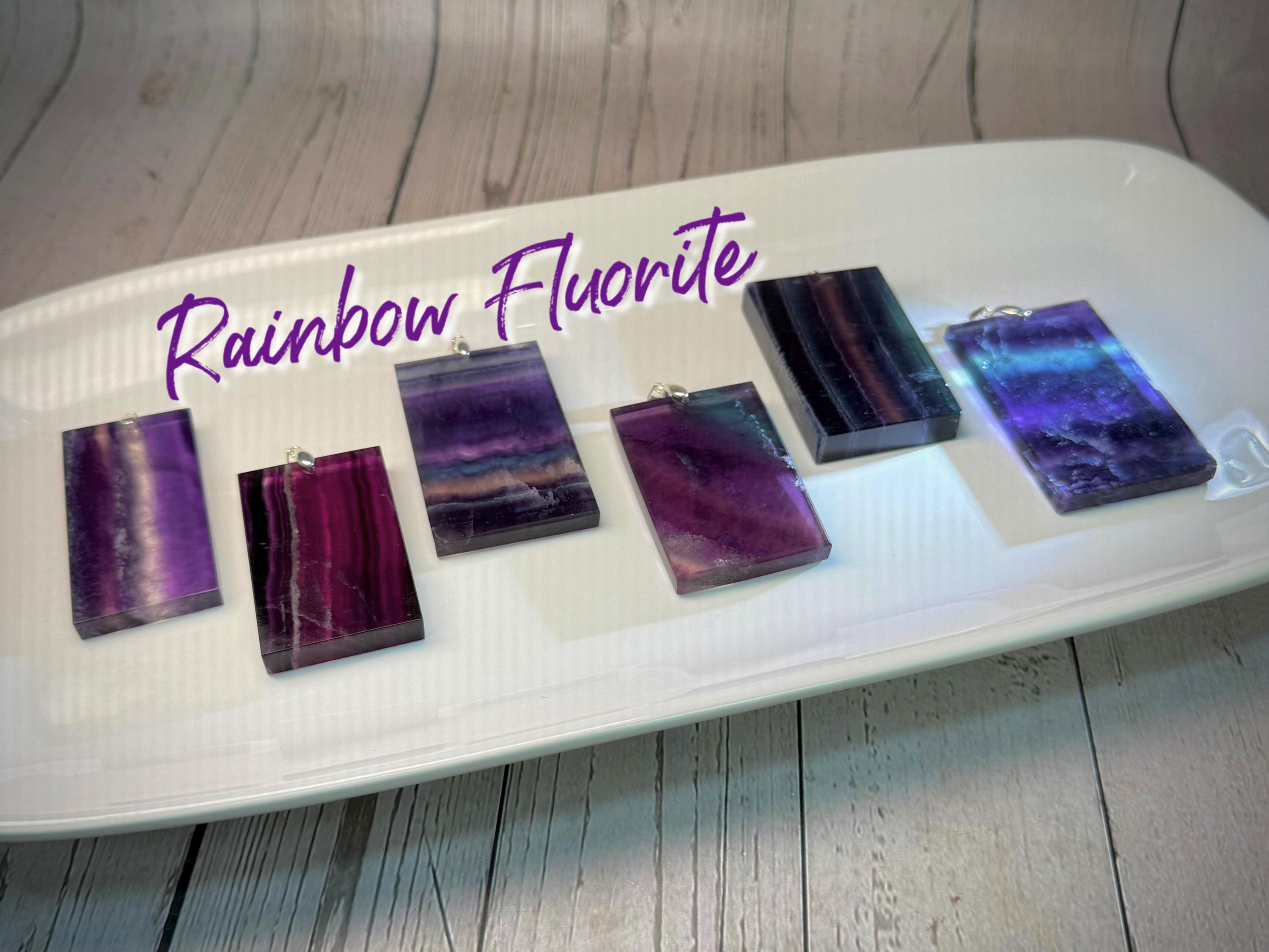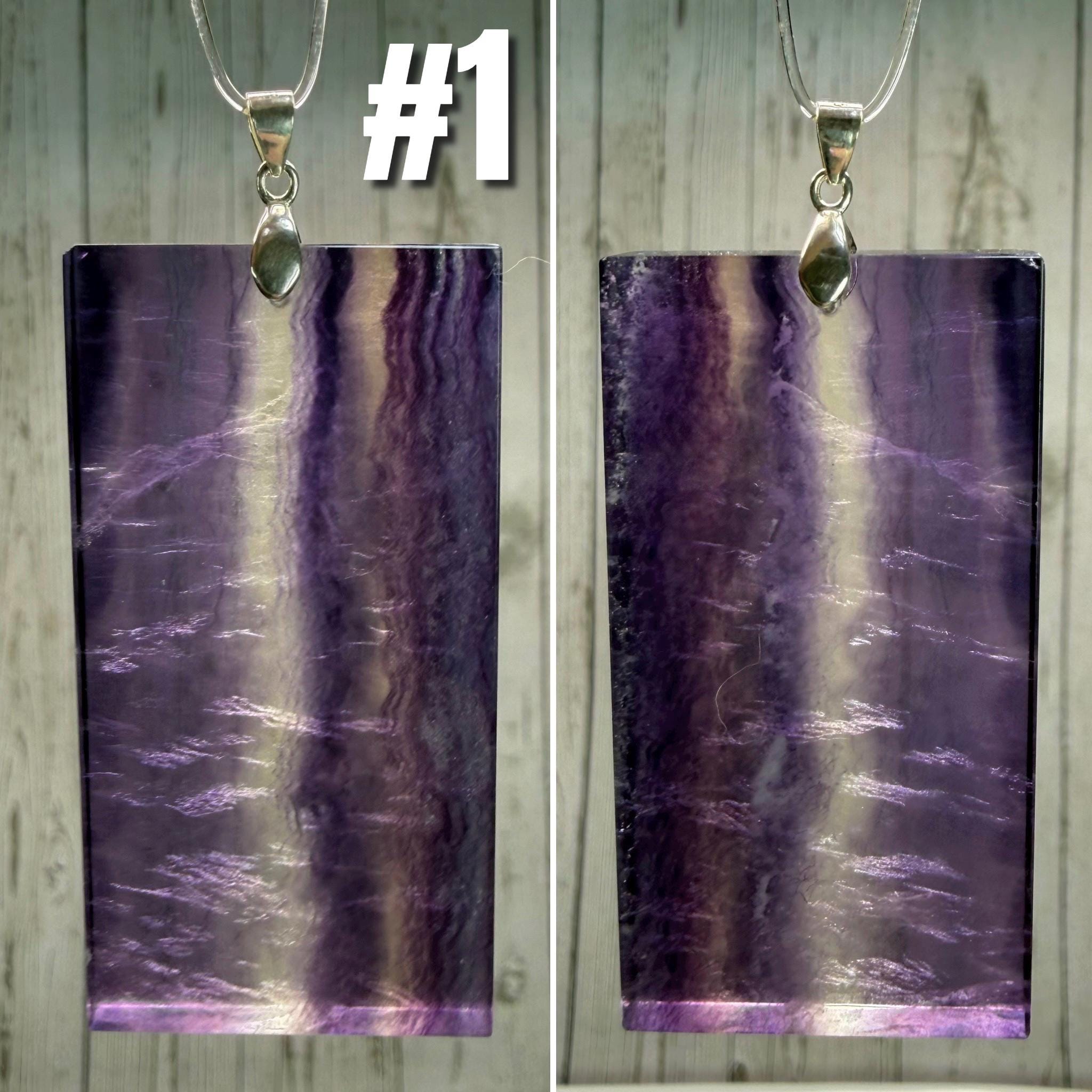 💜Rainbow Fluorite Pendant, Large Rectangle Fluorite Crystal Pendant, s925 Silver Clasp