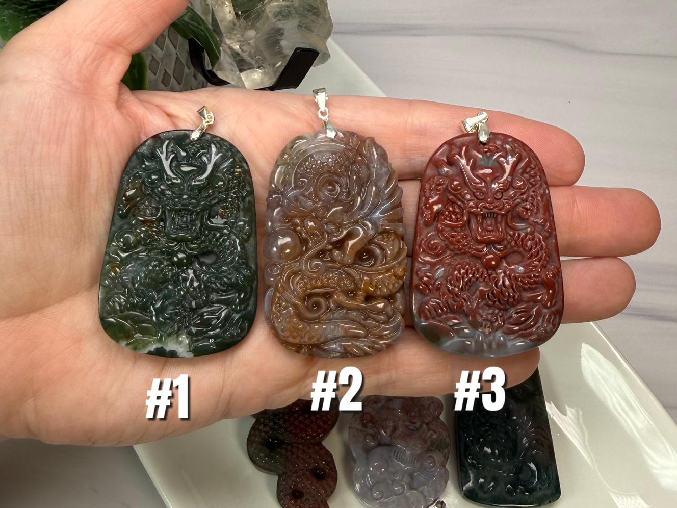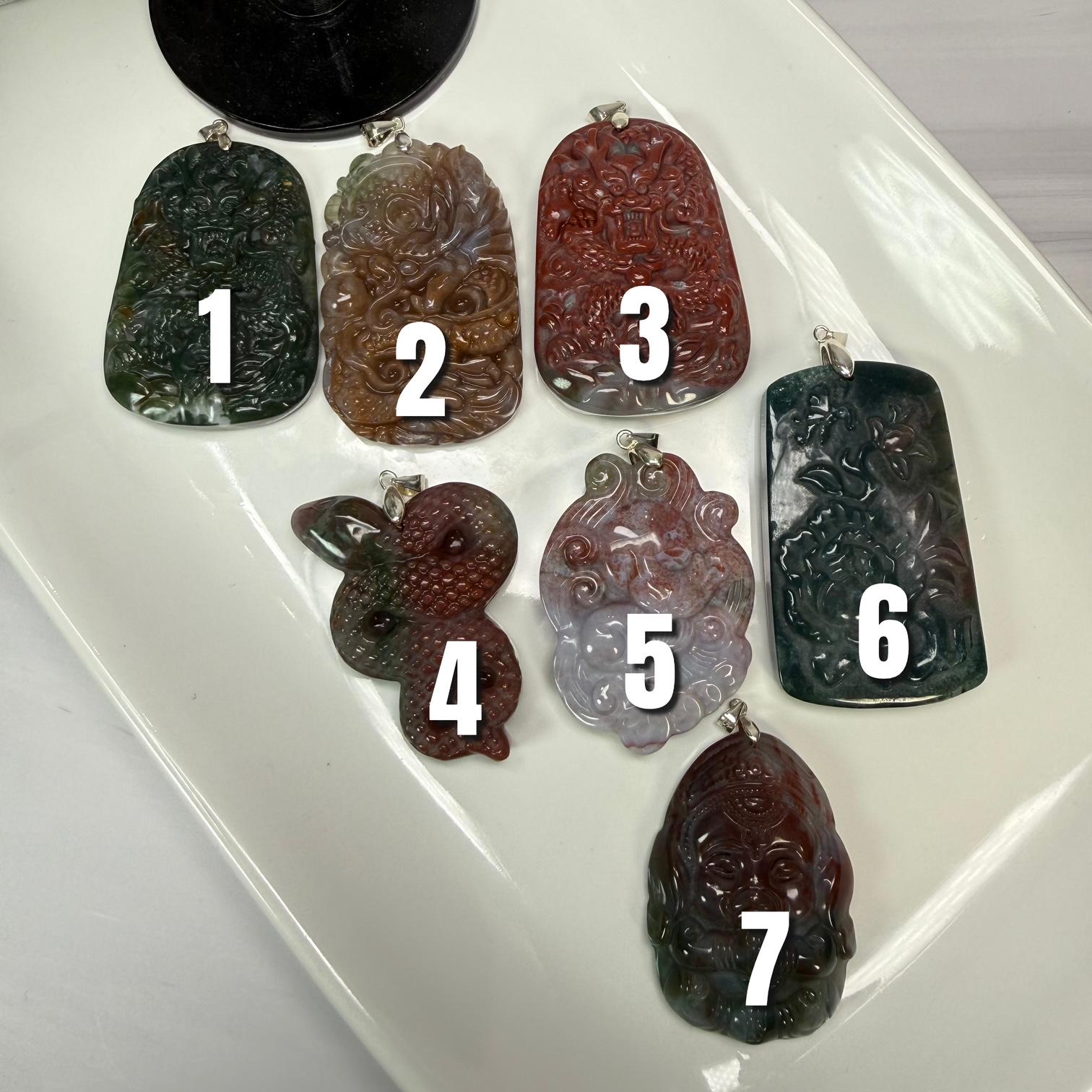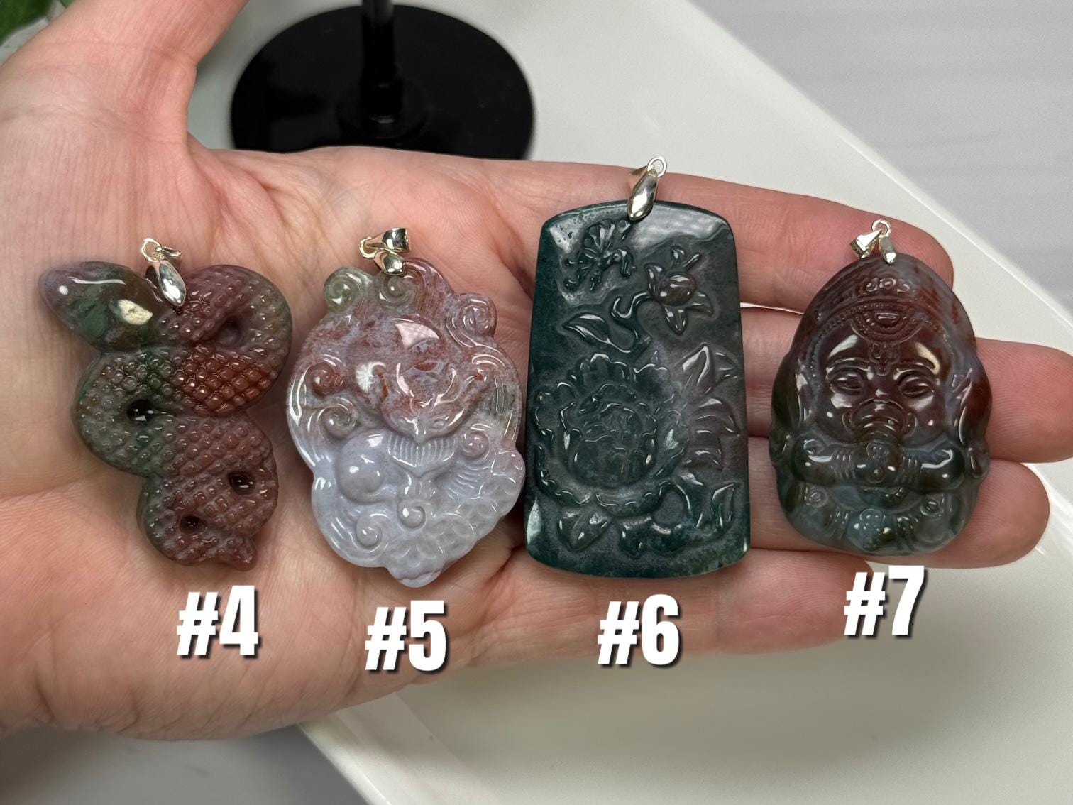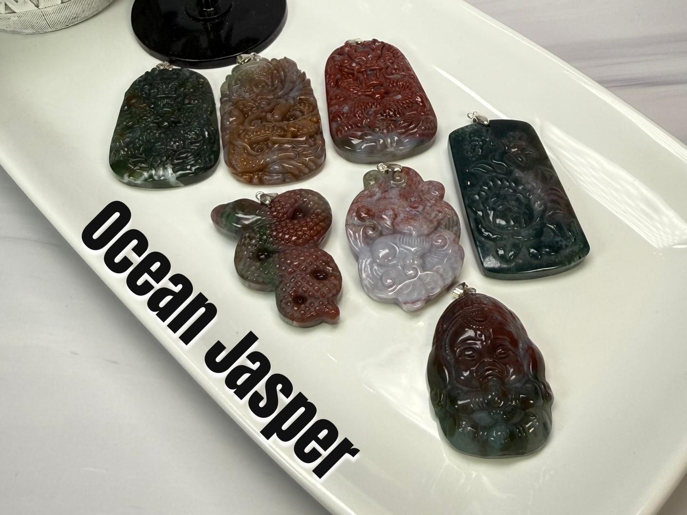 💚Ocean Jasper Pendant, Unique Carvings, OJ Crystal Pendants