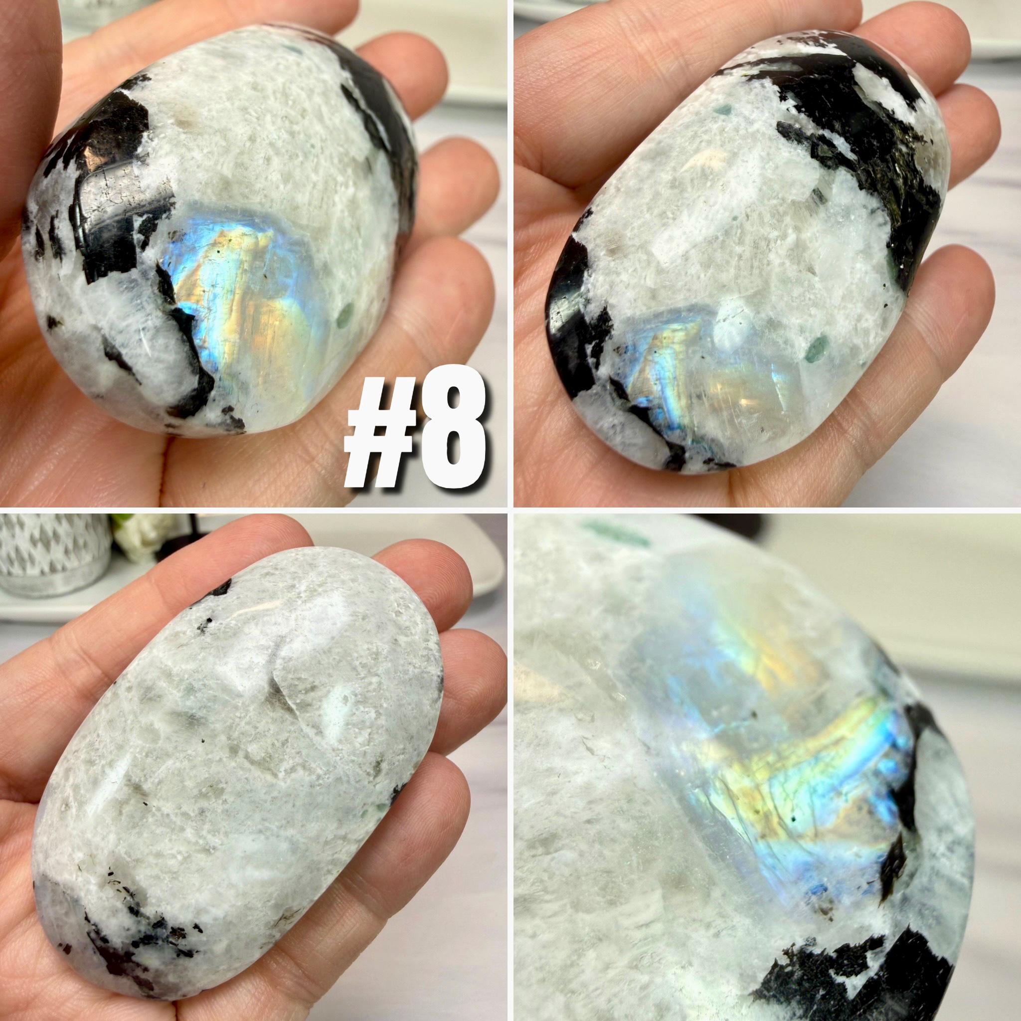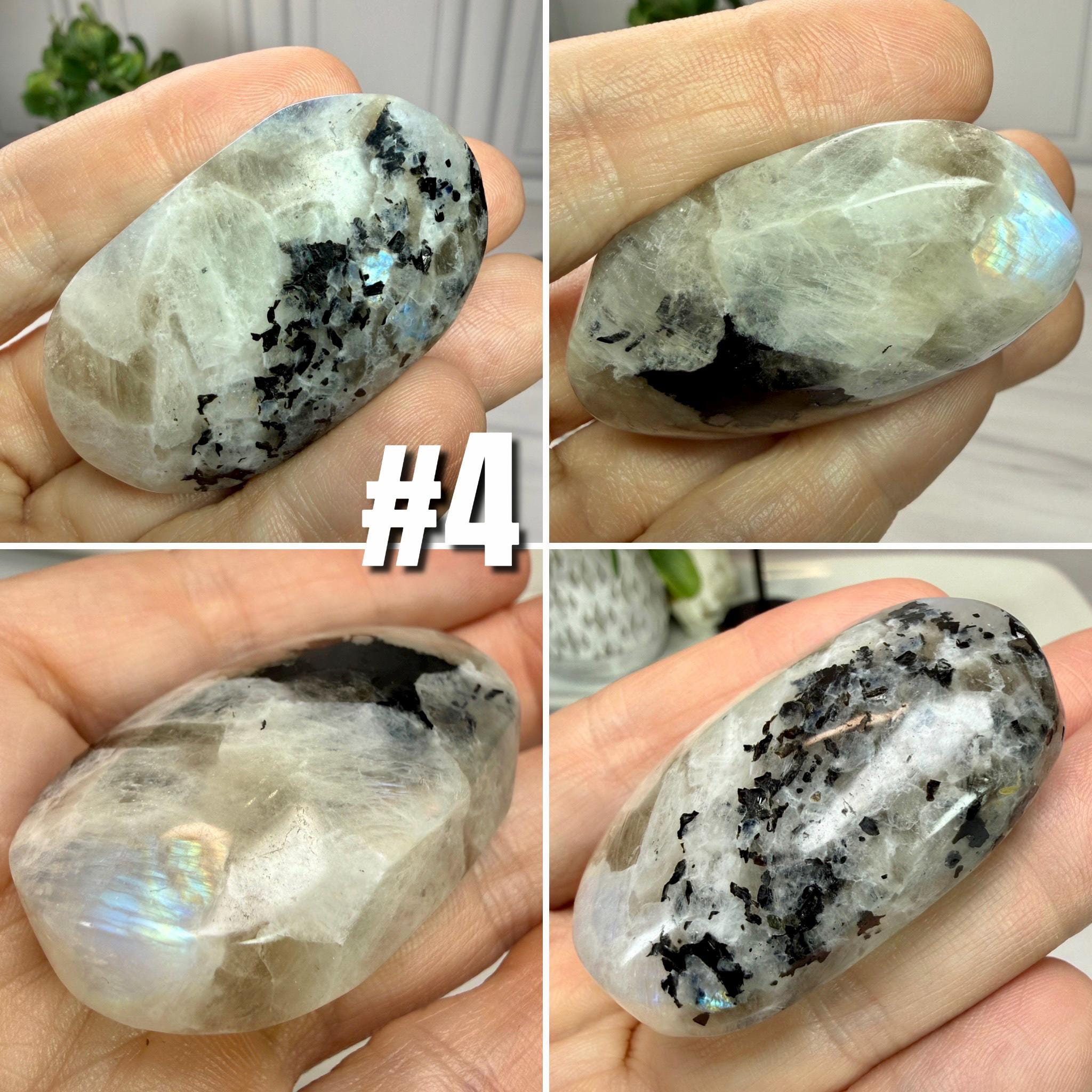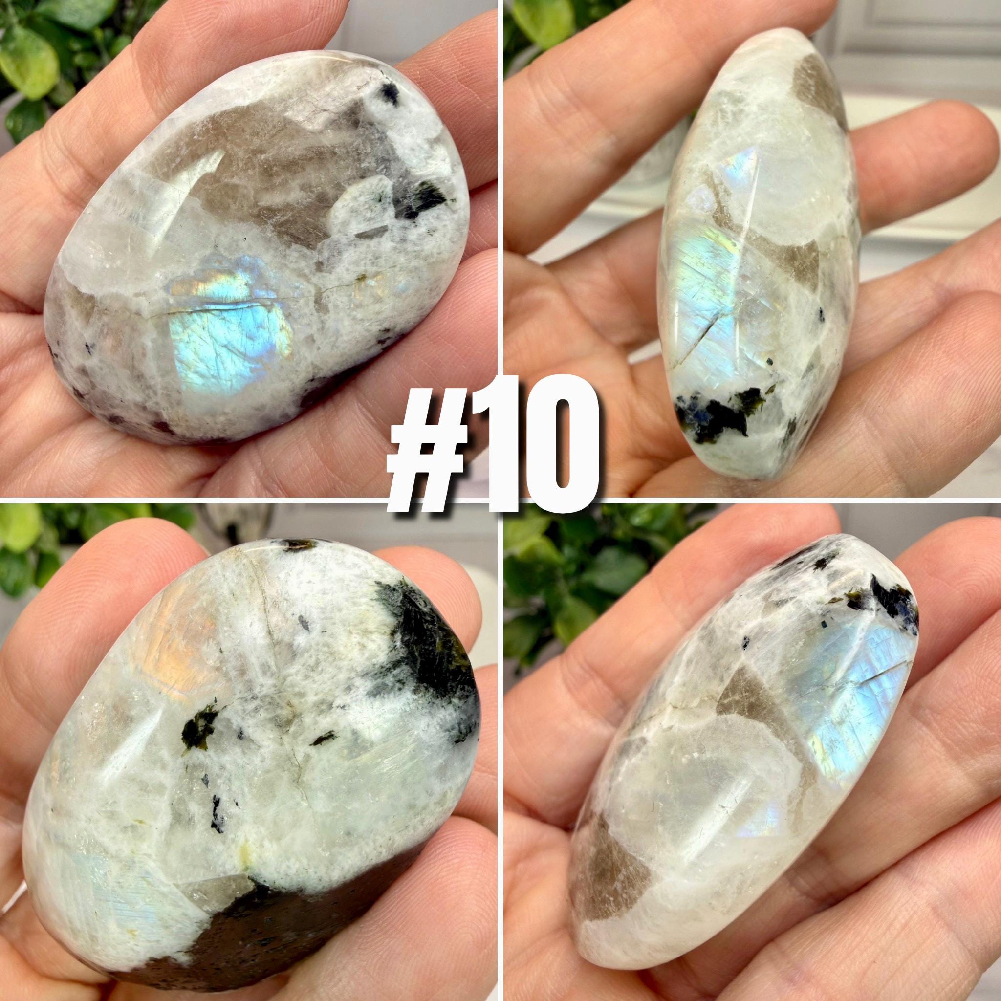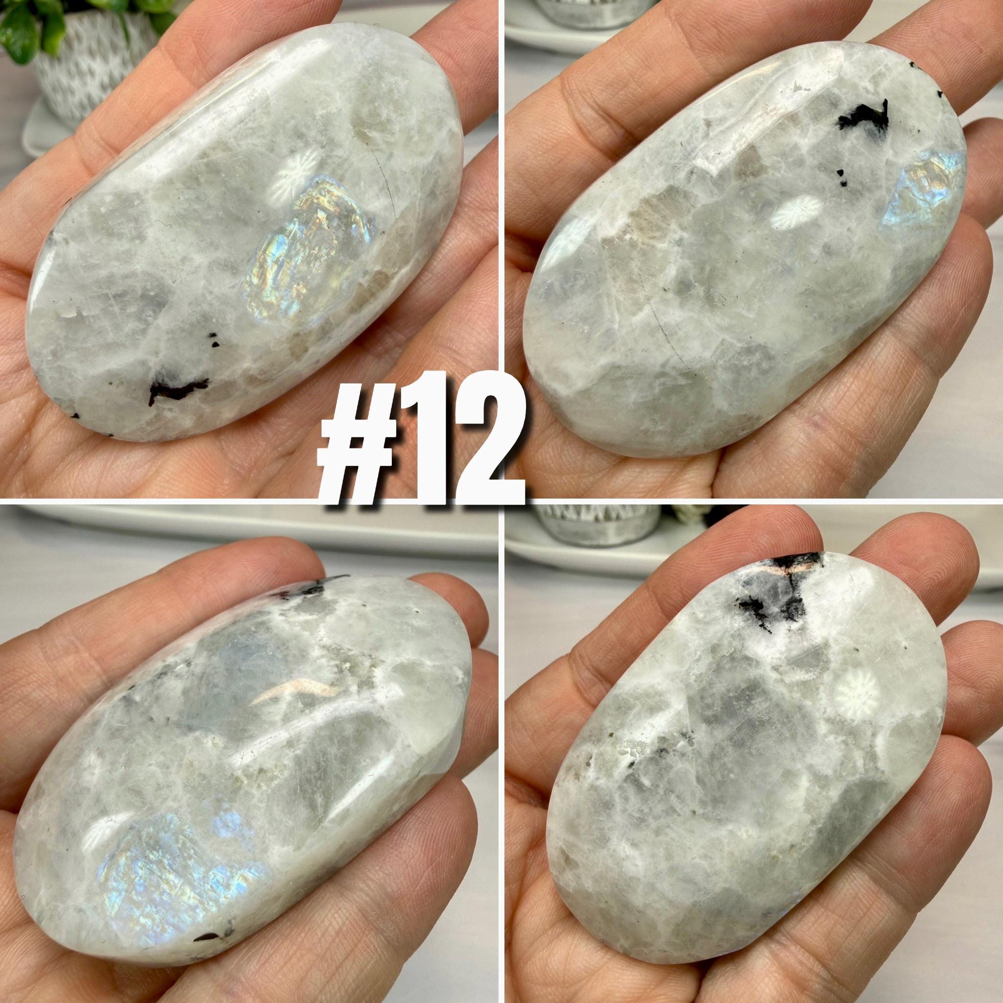 🌈🤍Rainbow Moonstone Palm Stone, Rainbow Moonstone Heart, Crystal Palm Stone