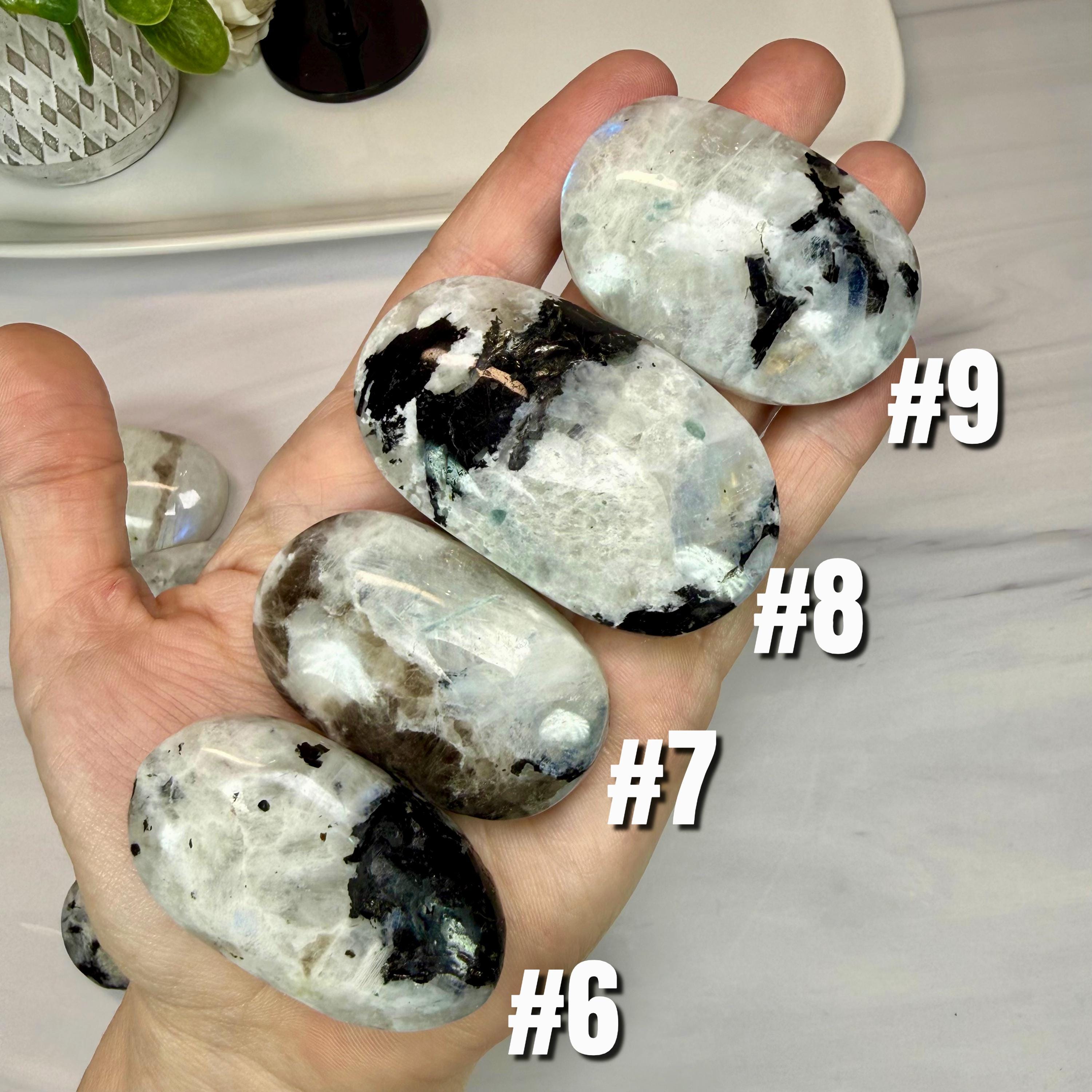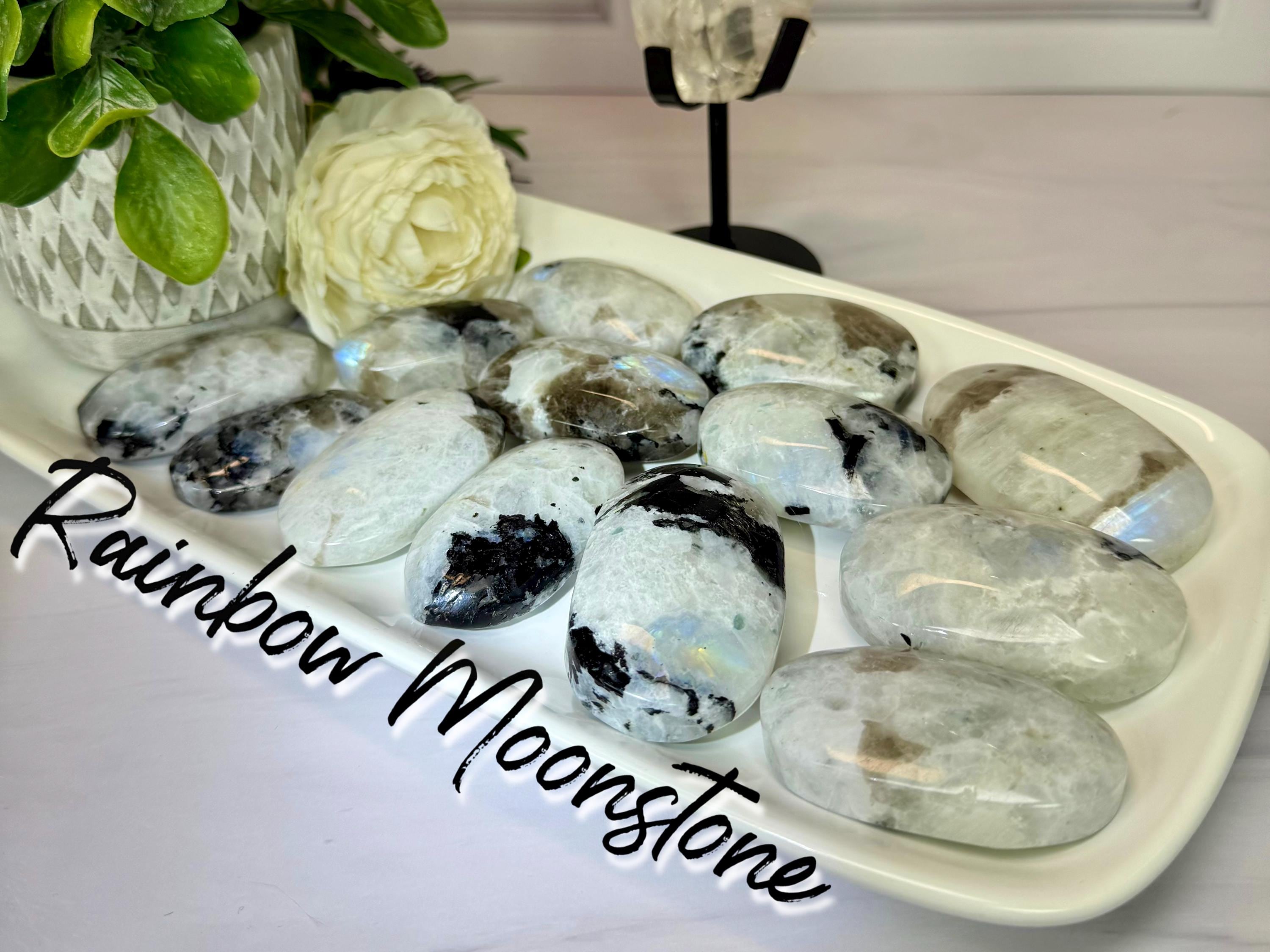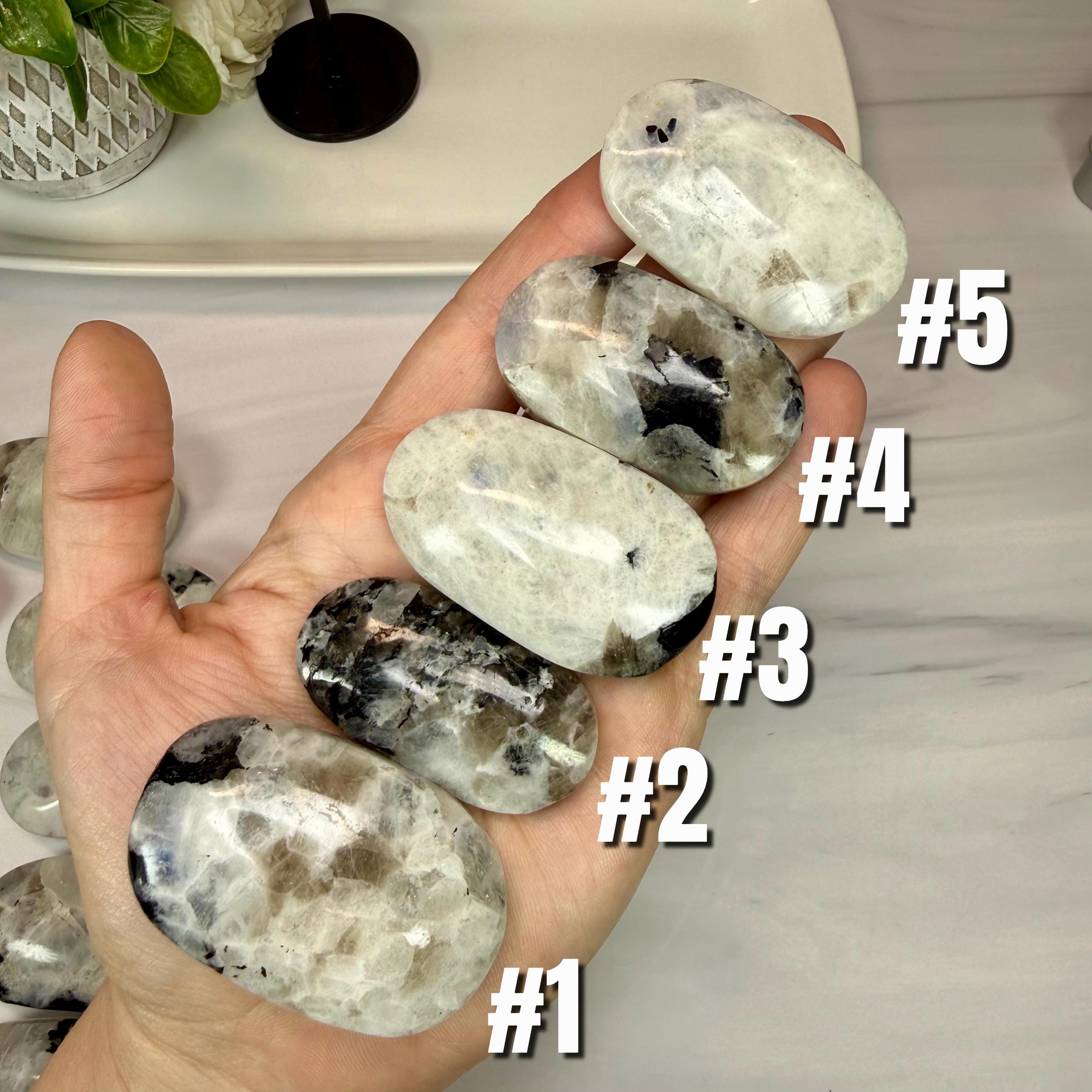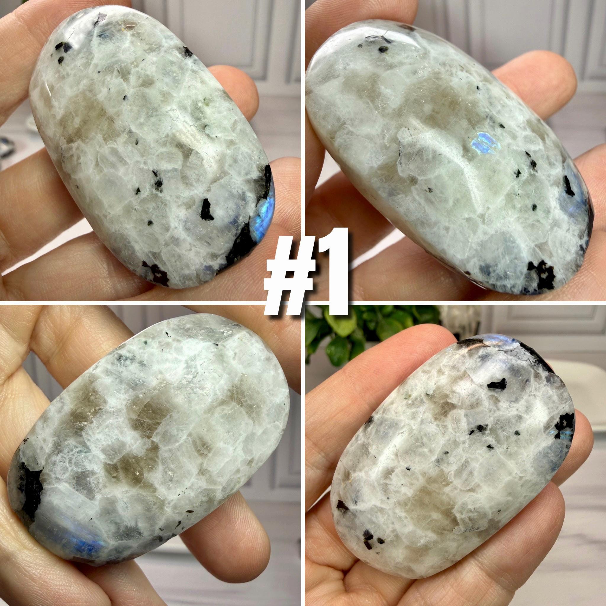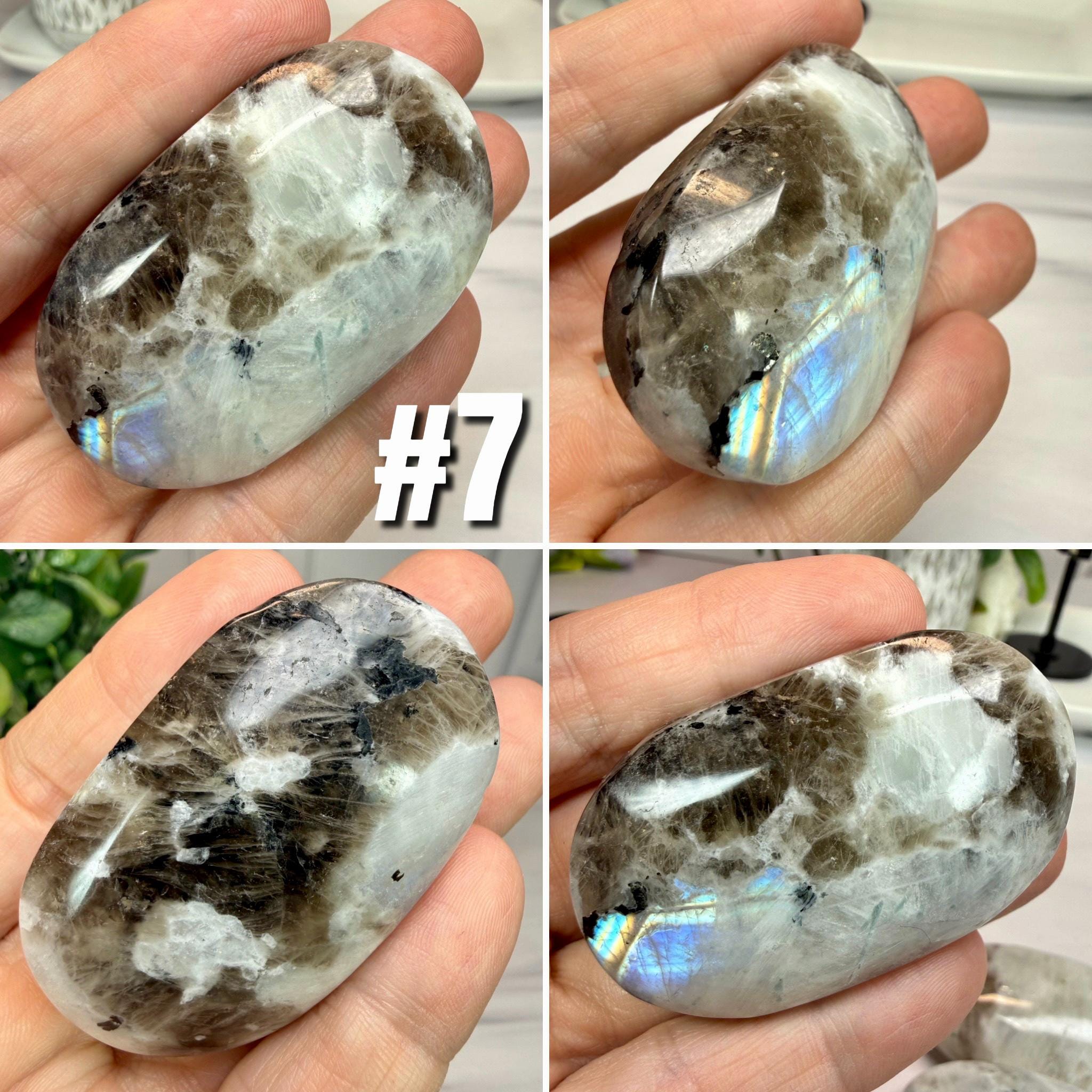 🌈🤍Rainbow Moonstone Palm Stone, Rainbow Moonstone Heart, Crystal Palm Stone