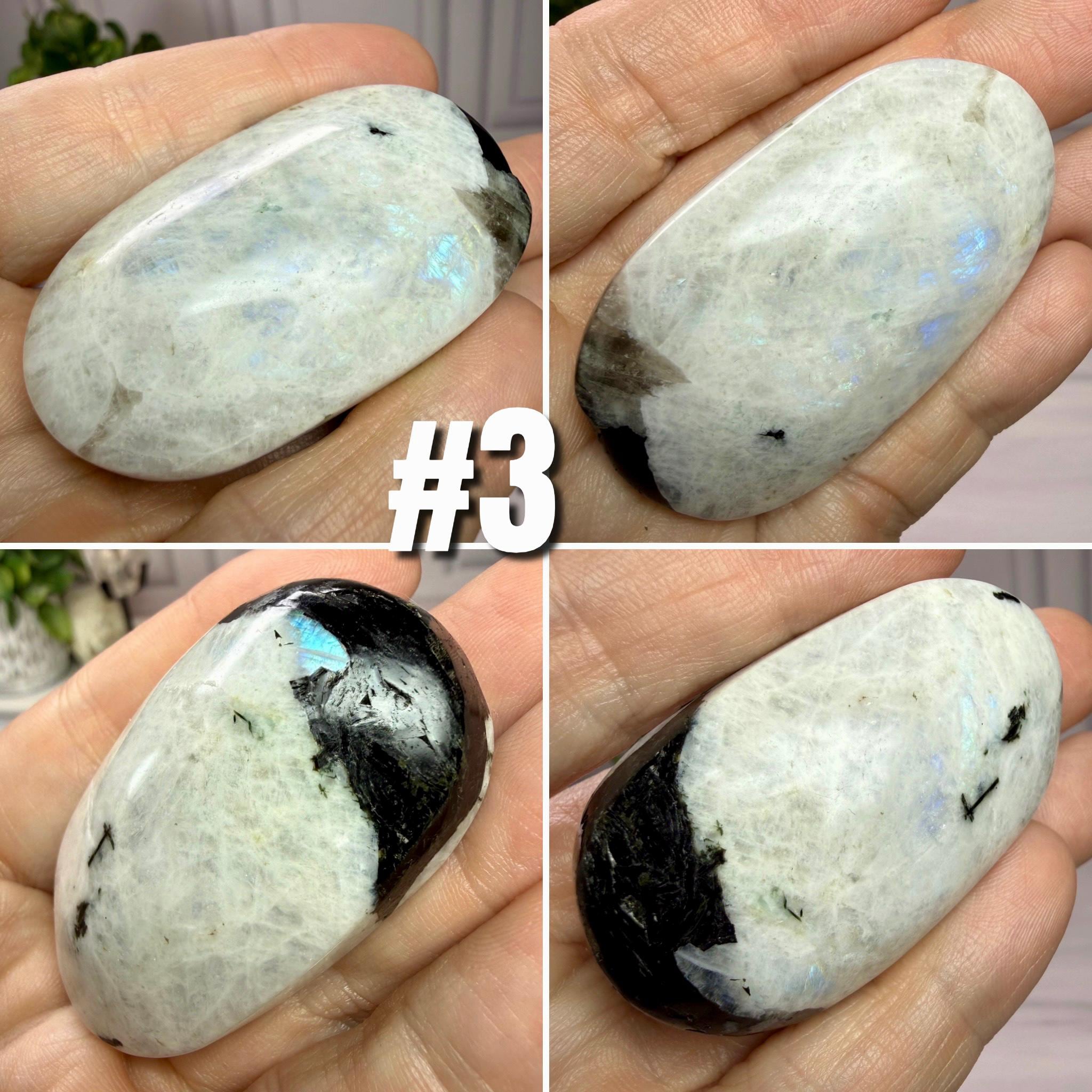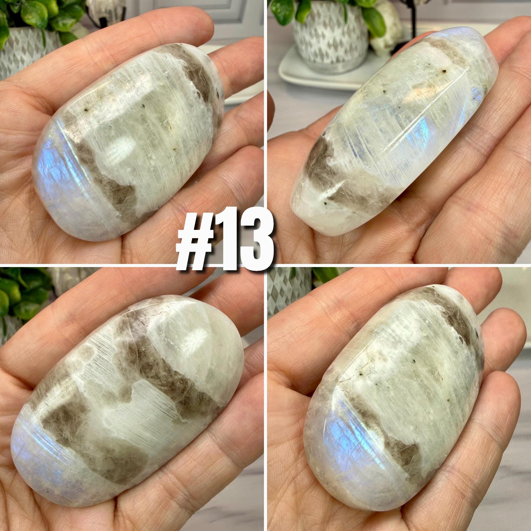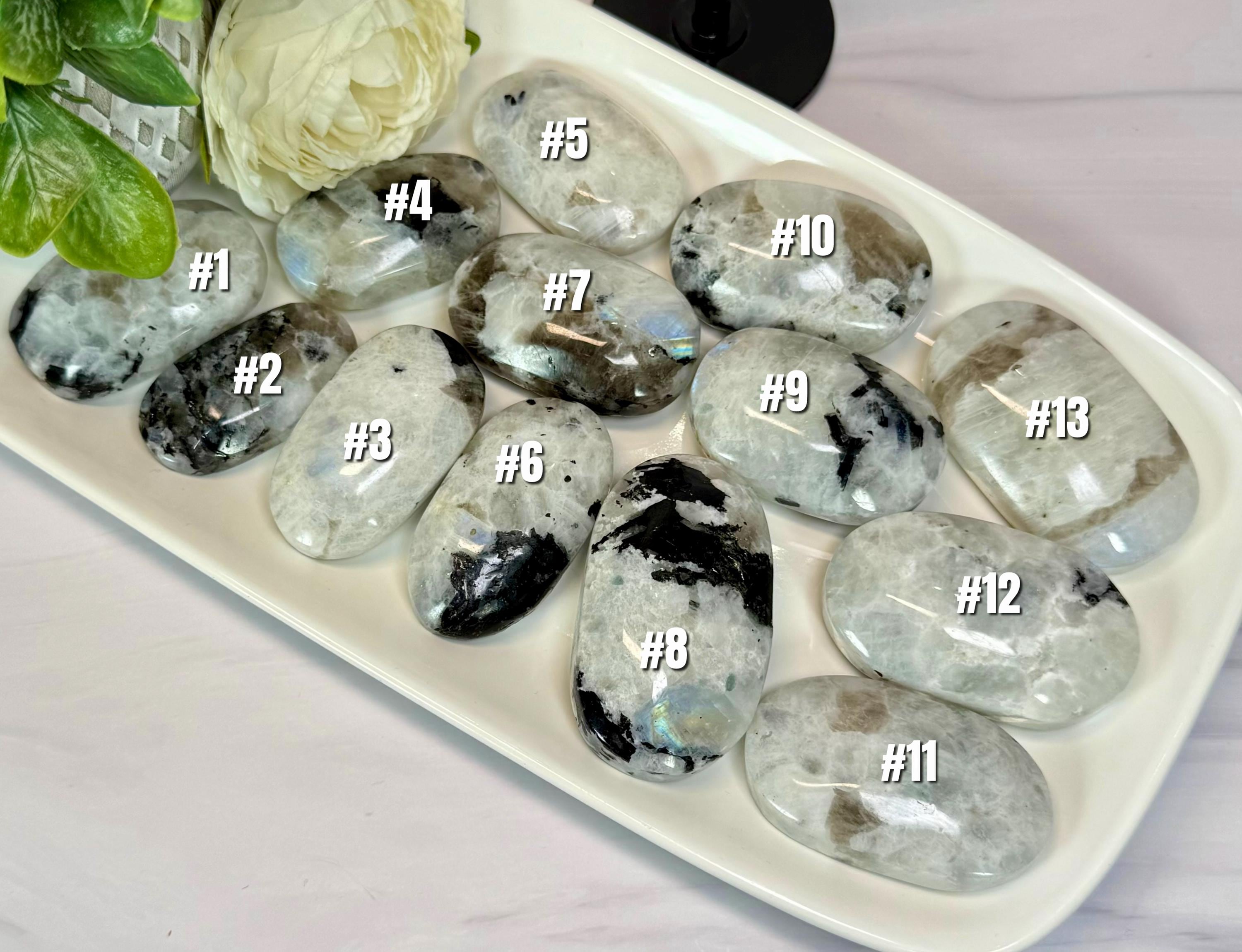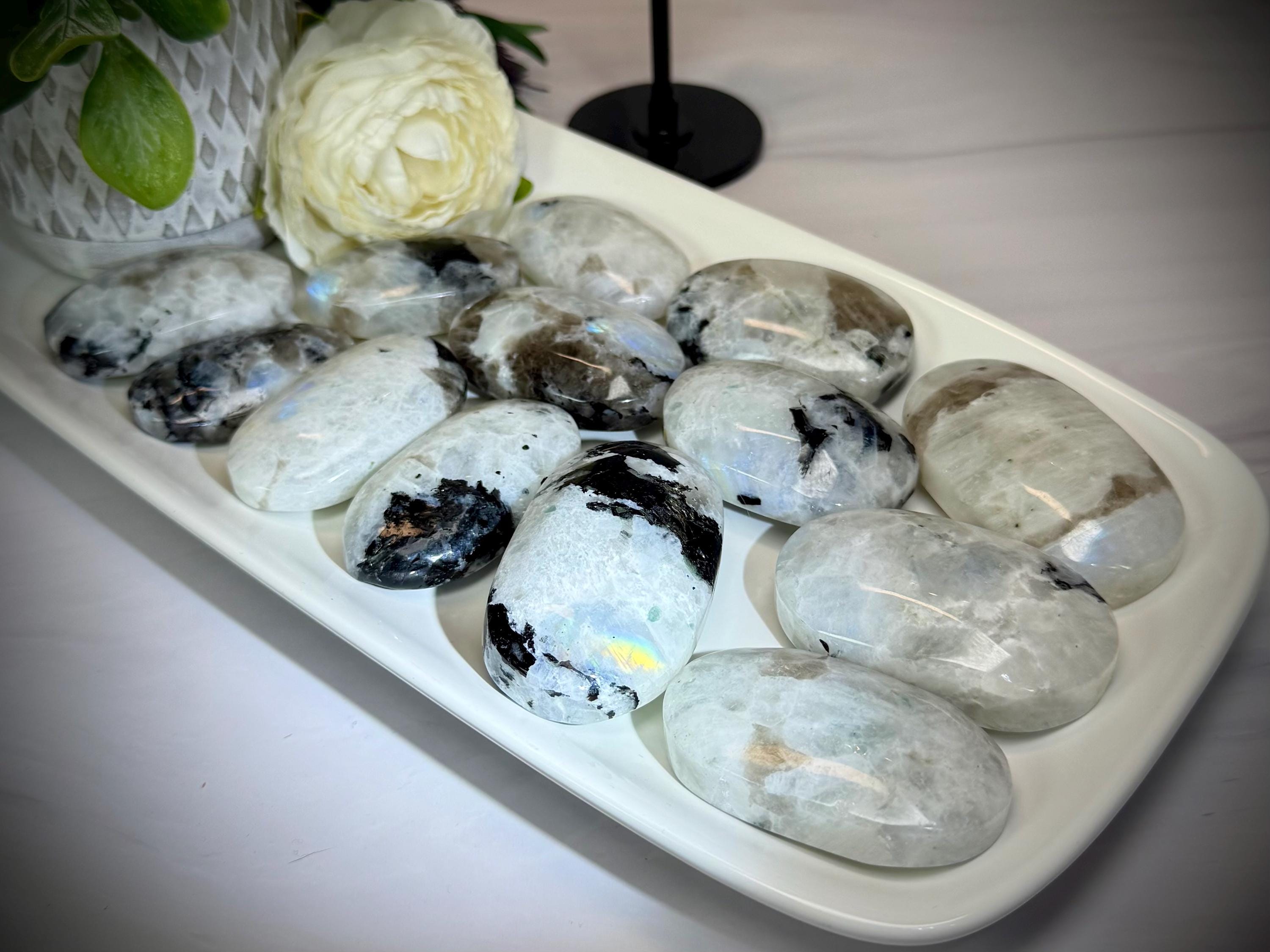 🌈🤍Rainbow Moonstone Palm Stone, Rainbow Moonstone Heart, Crystal Palm Stone