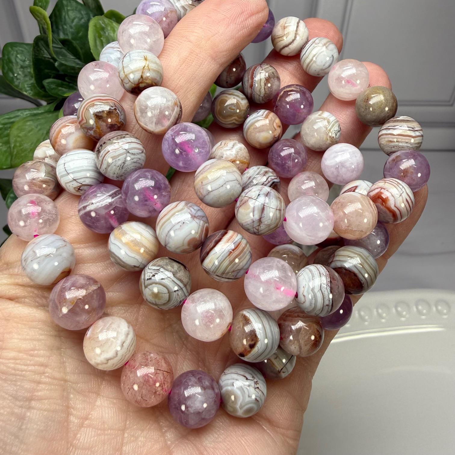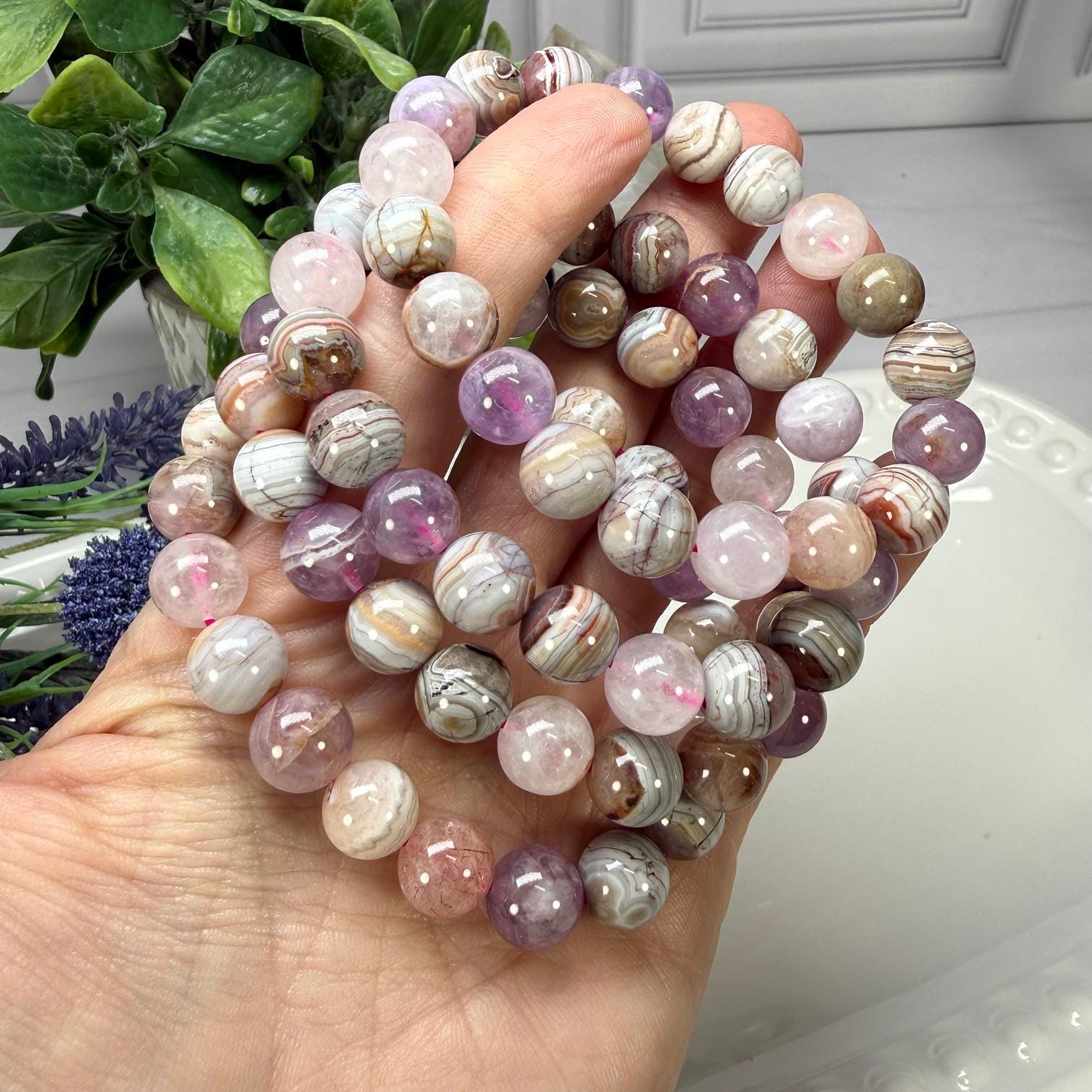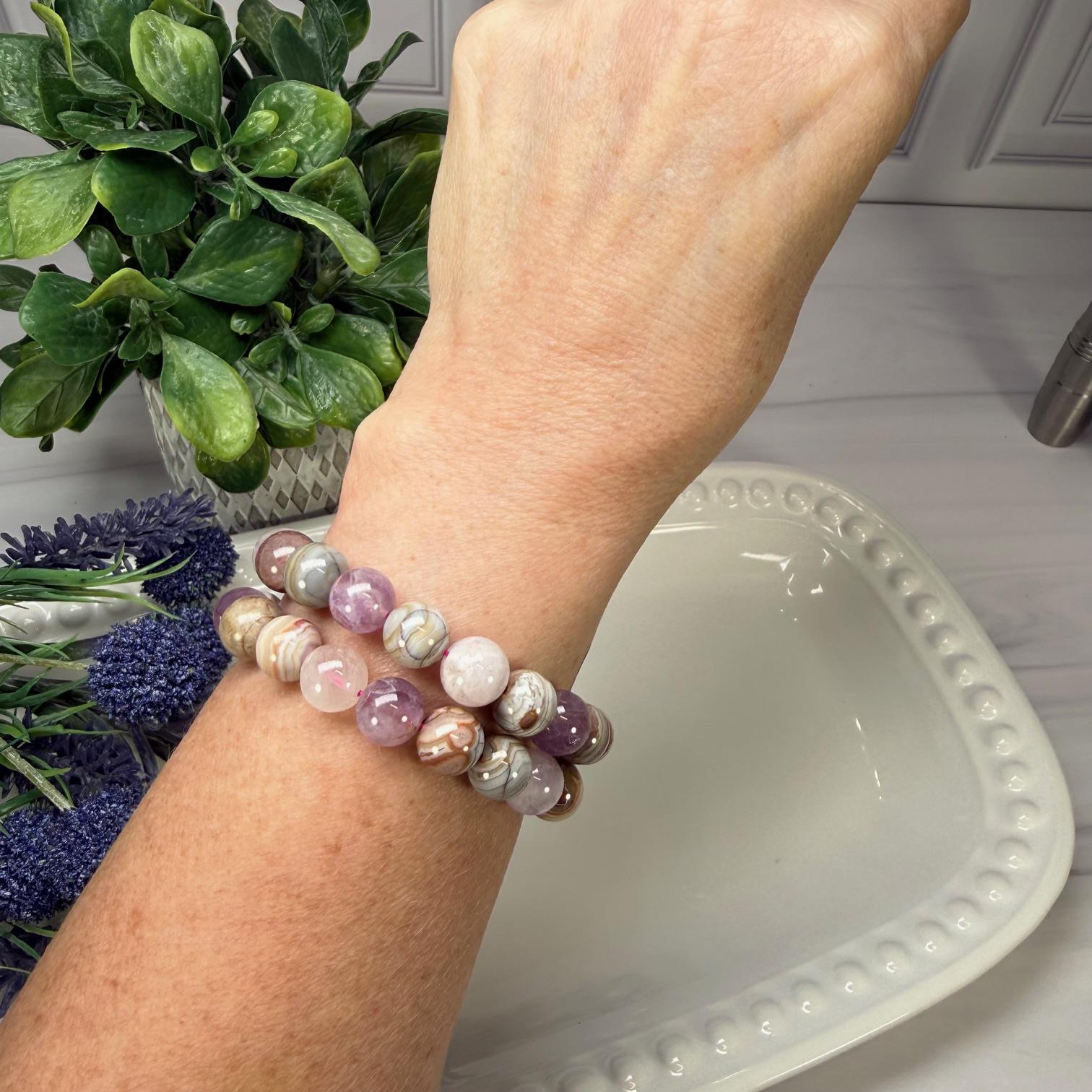 💜Amethyst and Mexican Crazy Lace Agate Bracelet, Lace Agate with Amethyst