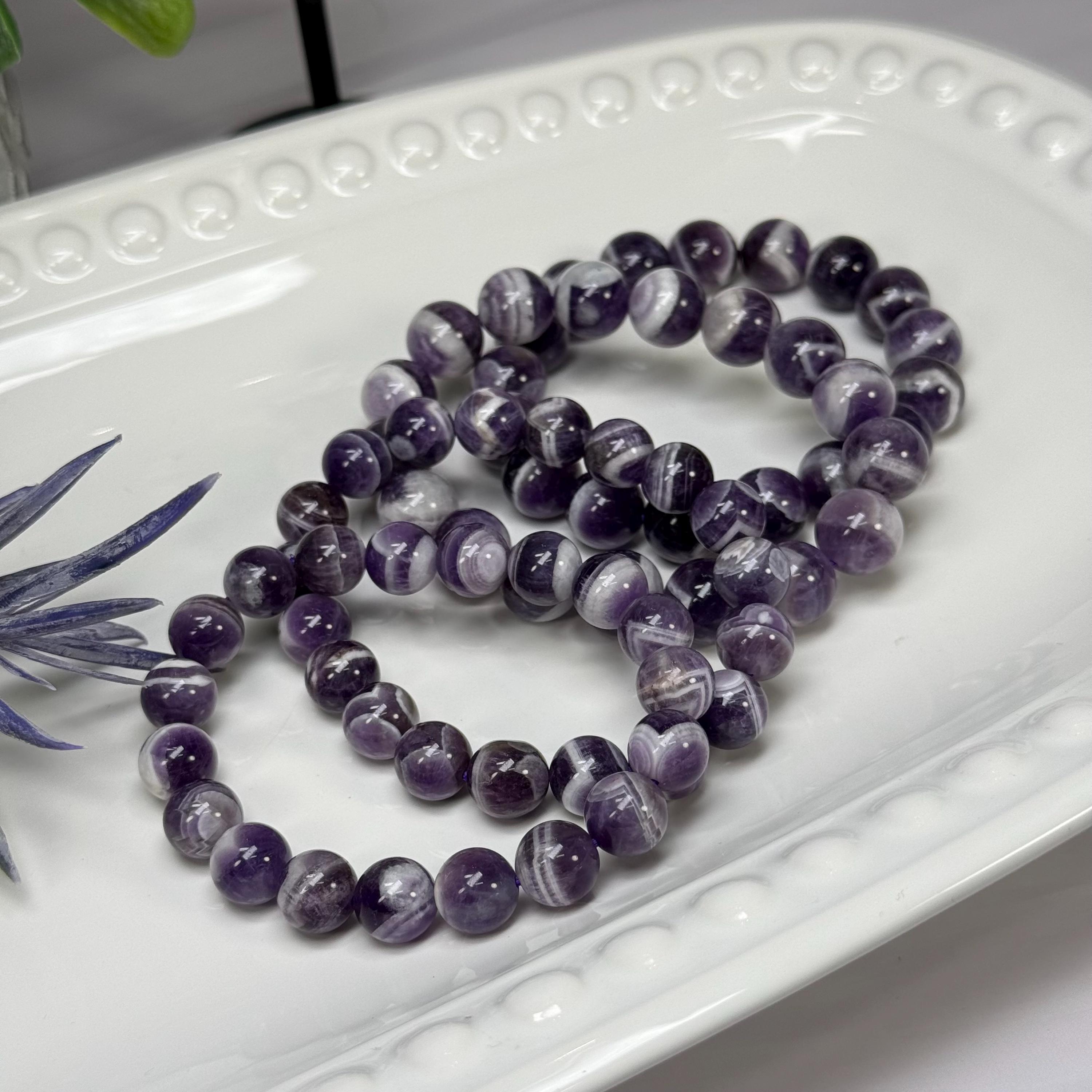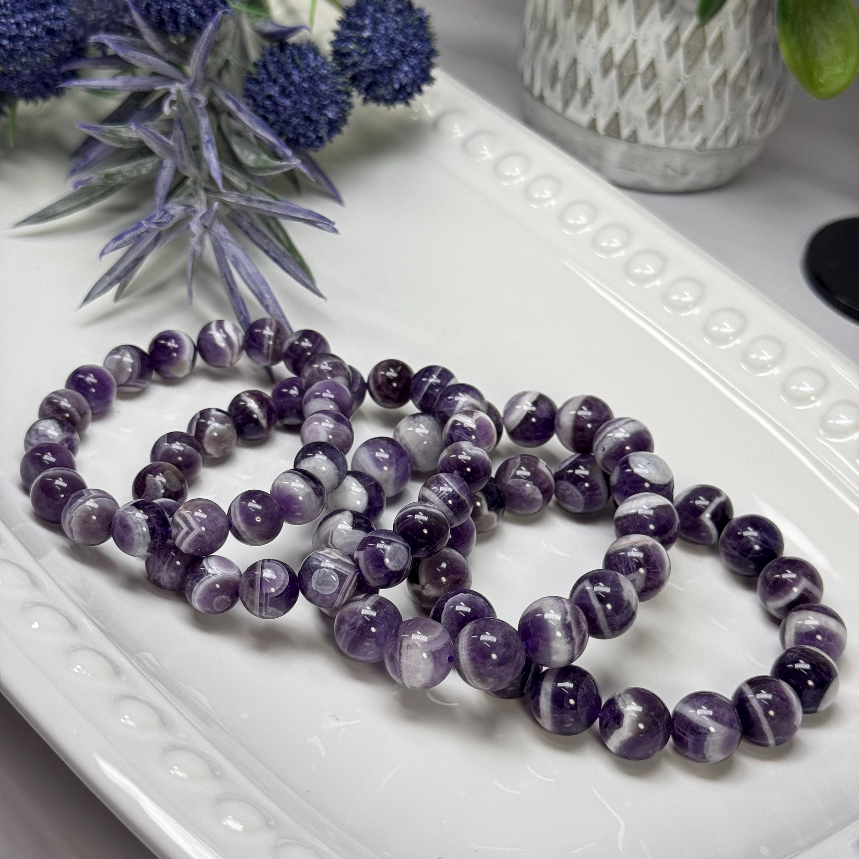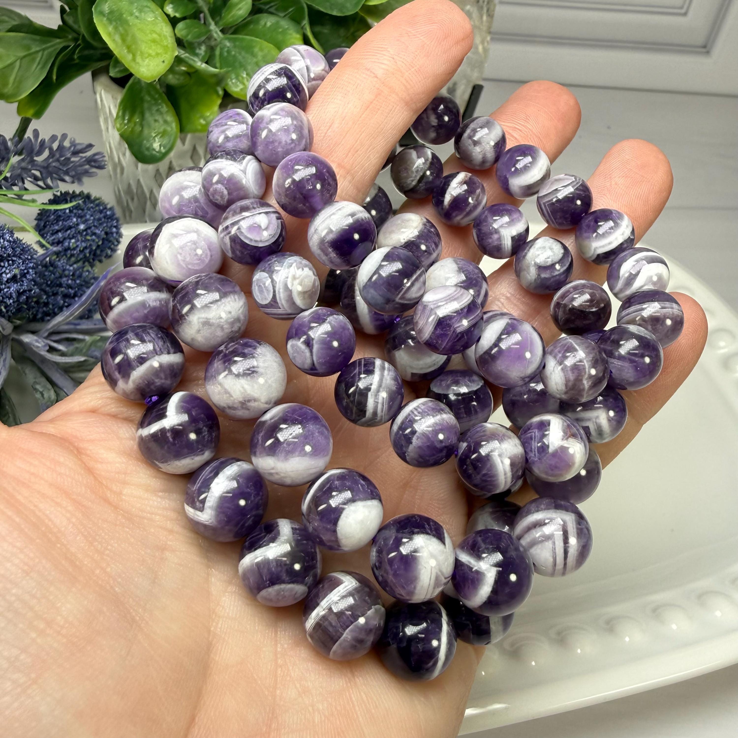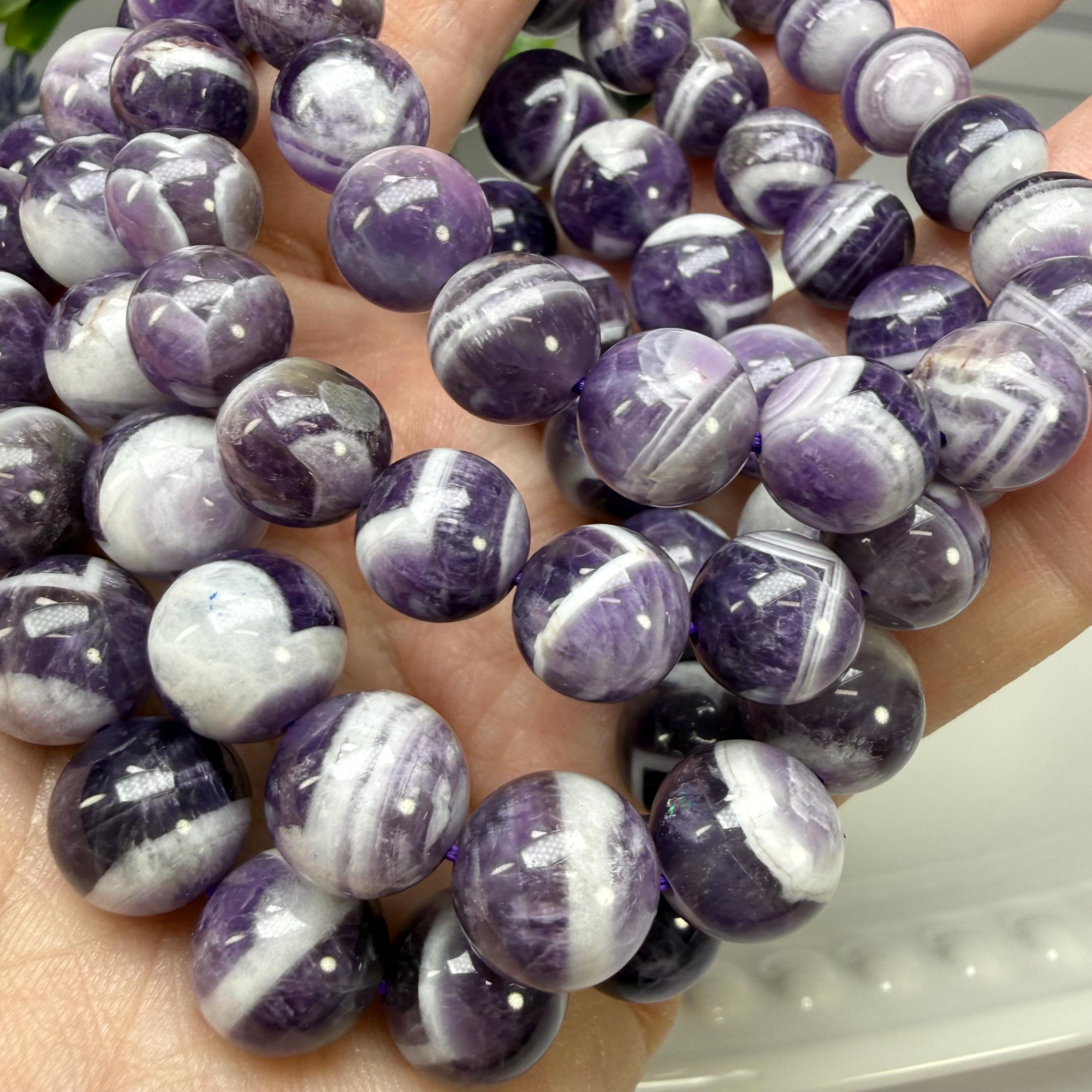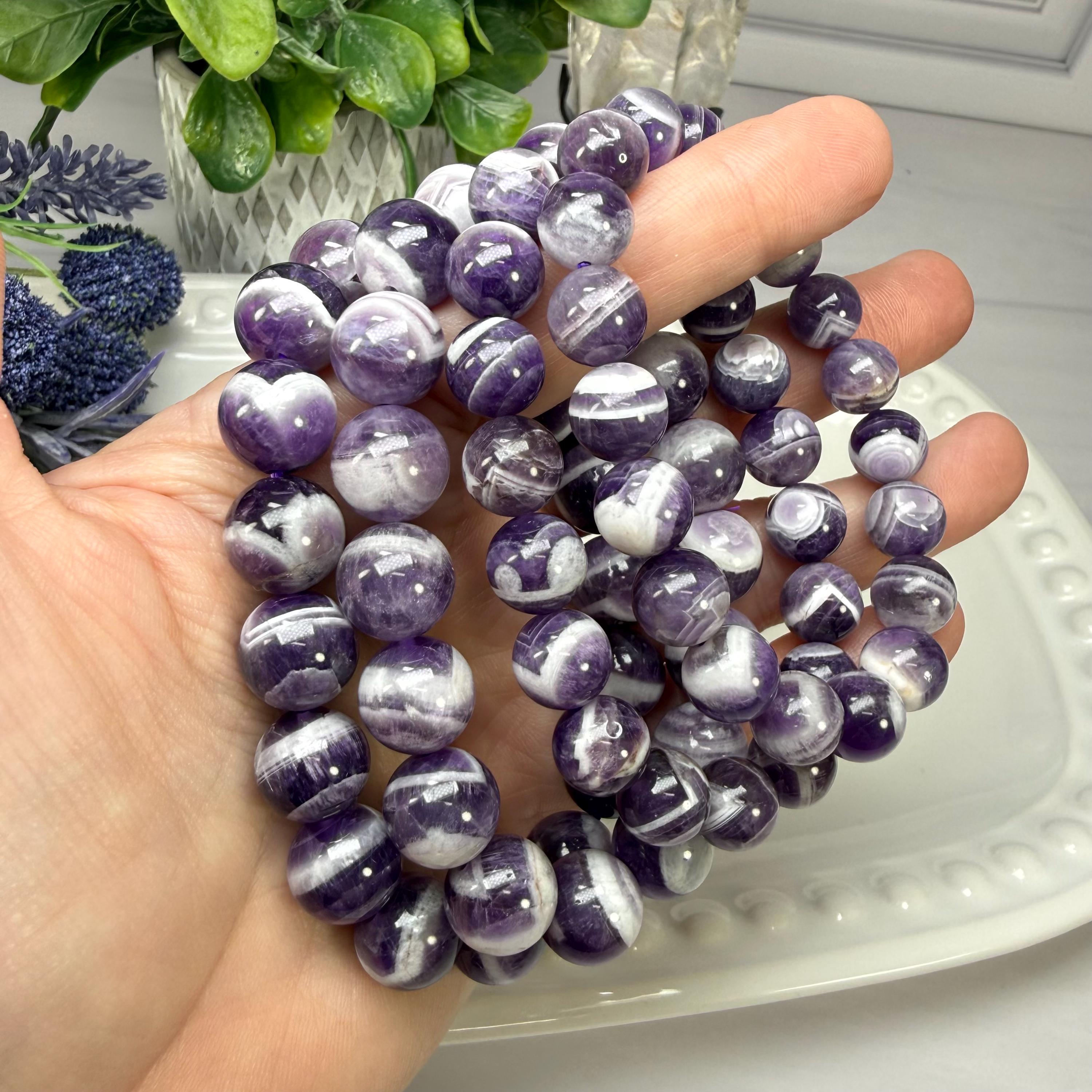 Dream/Chevron Amethyst is a variety of Amethyst with purple chevrons or zigzag patterns of white quartz within the crystal. Dream/Chevron Amethyst combines the properties of Amethyst and Snow Quartz, creating a harmonious blend of energies. It enhances spiritual growth and intuition, facilitating a deeper connection with higher realms and inner wisdom. It provides protection against negative energies, creating a shield of spiritual light. It promotes emotional balance and clarity, helping to alleviate stress and anxiety while supporting healing and inner peace.
