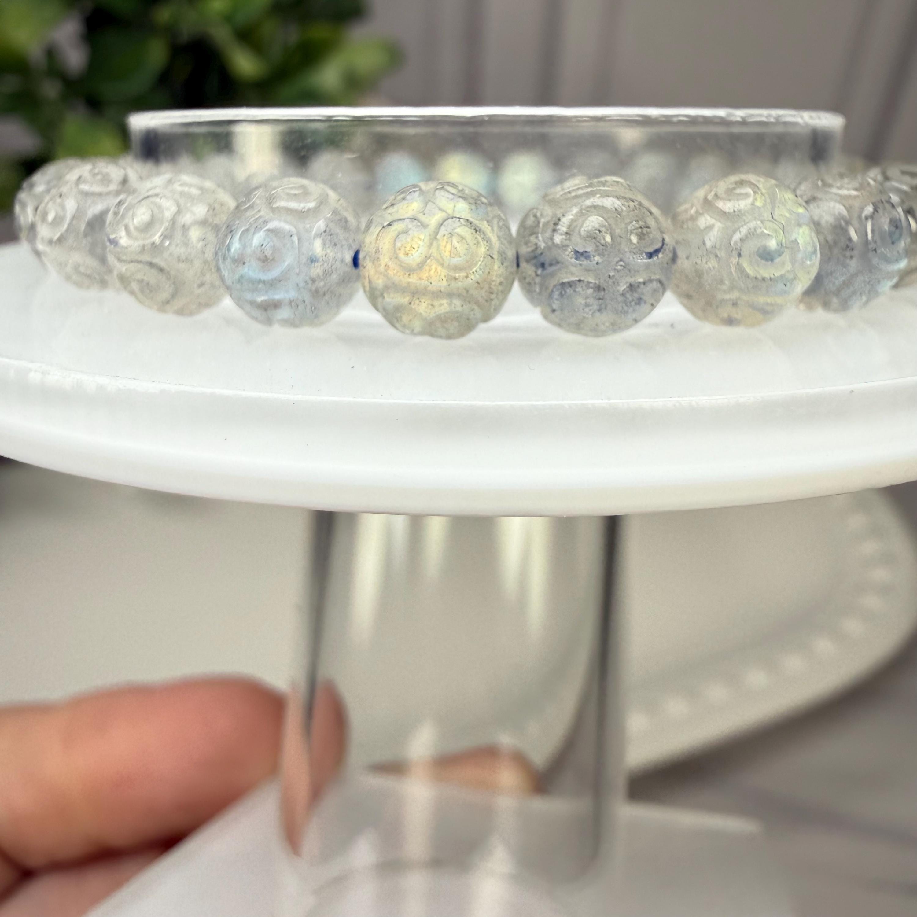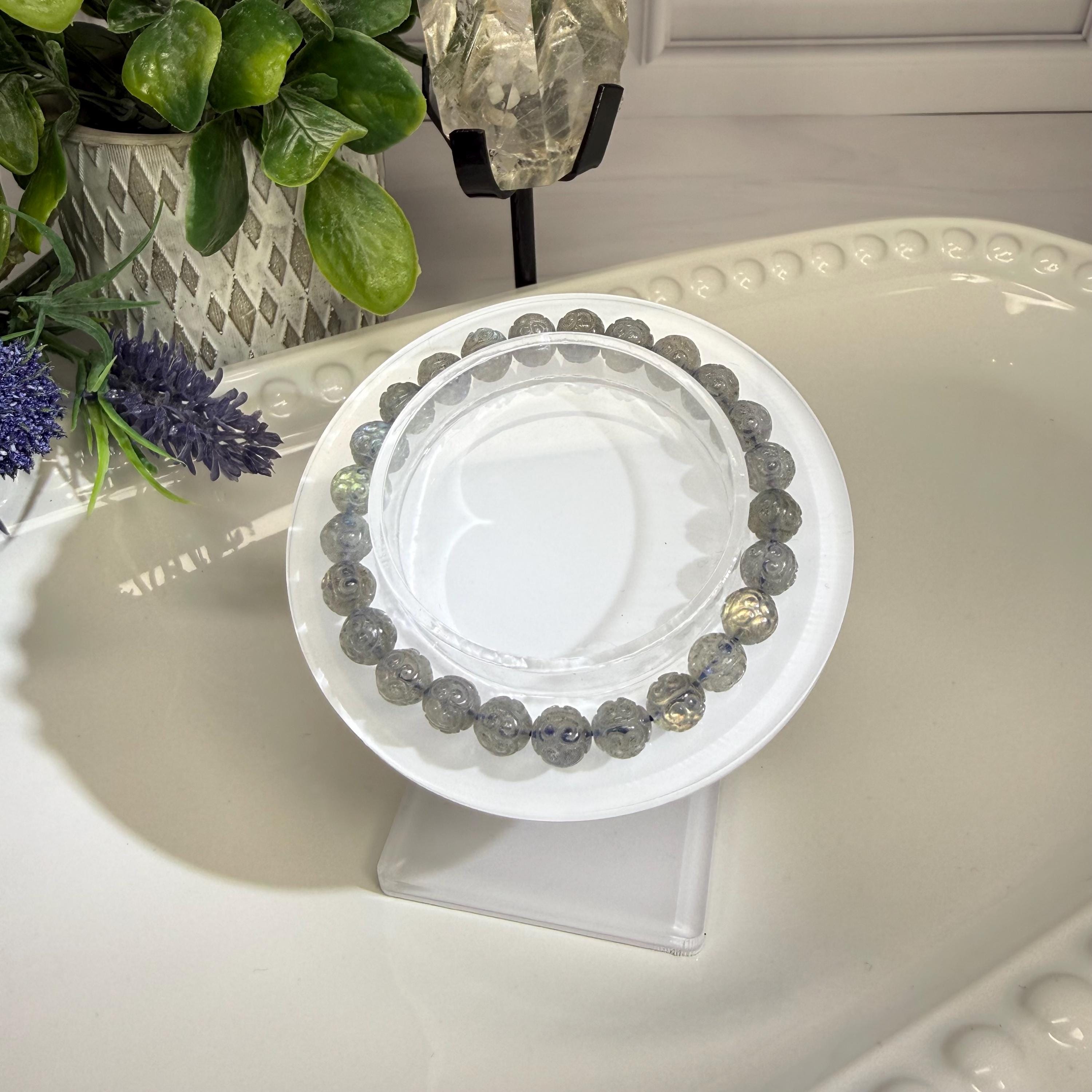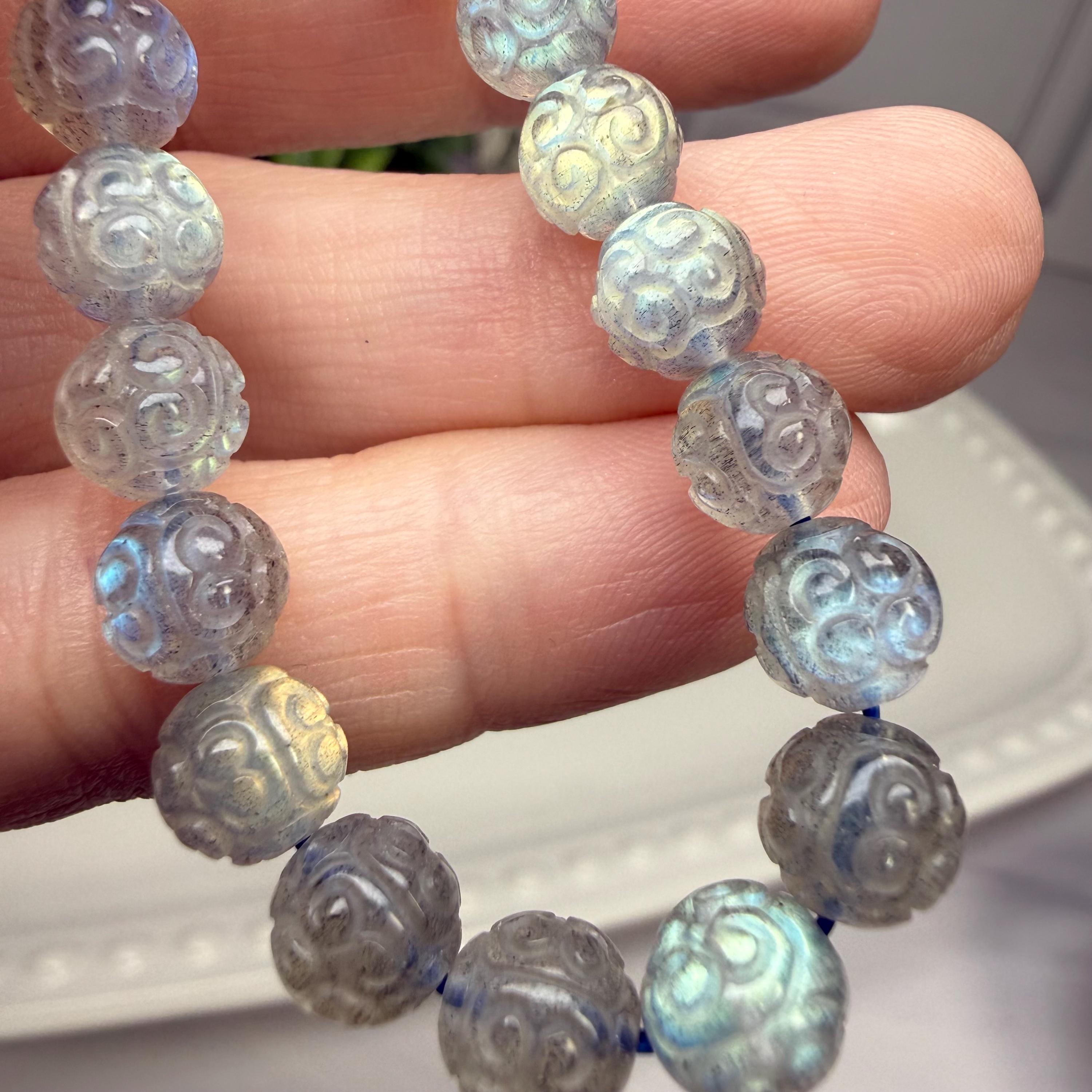 Labradorite is also very protective against negative energies, balancing, strengthening and protecting the aura and sealing the aura from energy leaks. Labradorite is a stone of transformation and change. Labradorite enhances strength of will and feelings of inner worth. It is useful for bringing up and healing old memories, including past life issues. Labradorite can also help prepare the body and soul for ascension.
