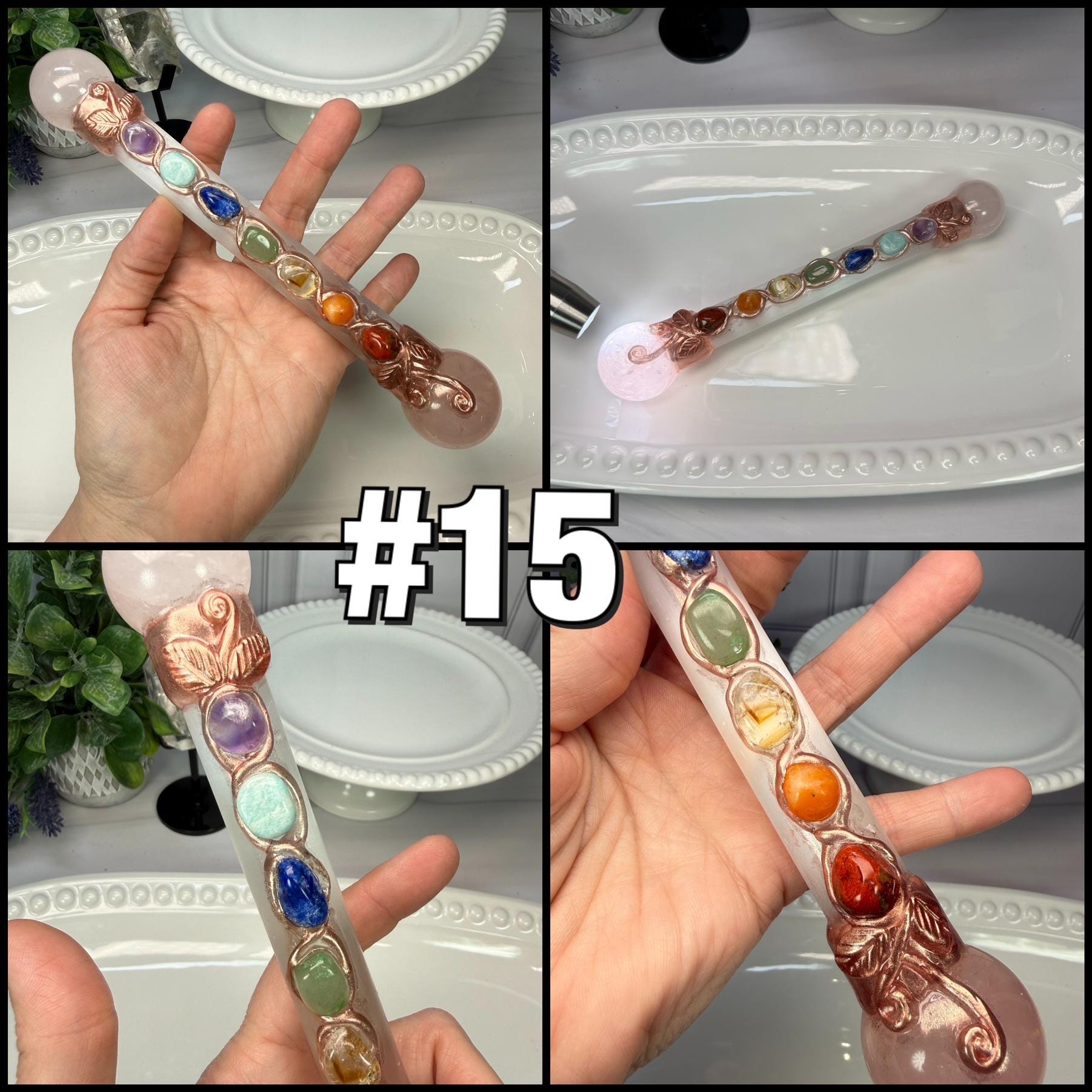 15. Selenite Chakra Wand with Rose Quartz / 8.50" long / 244g