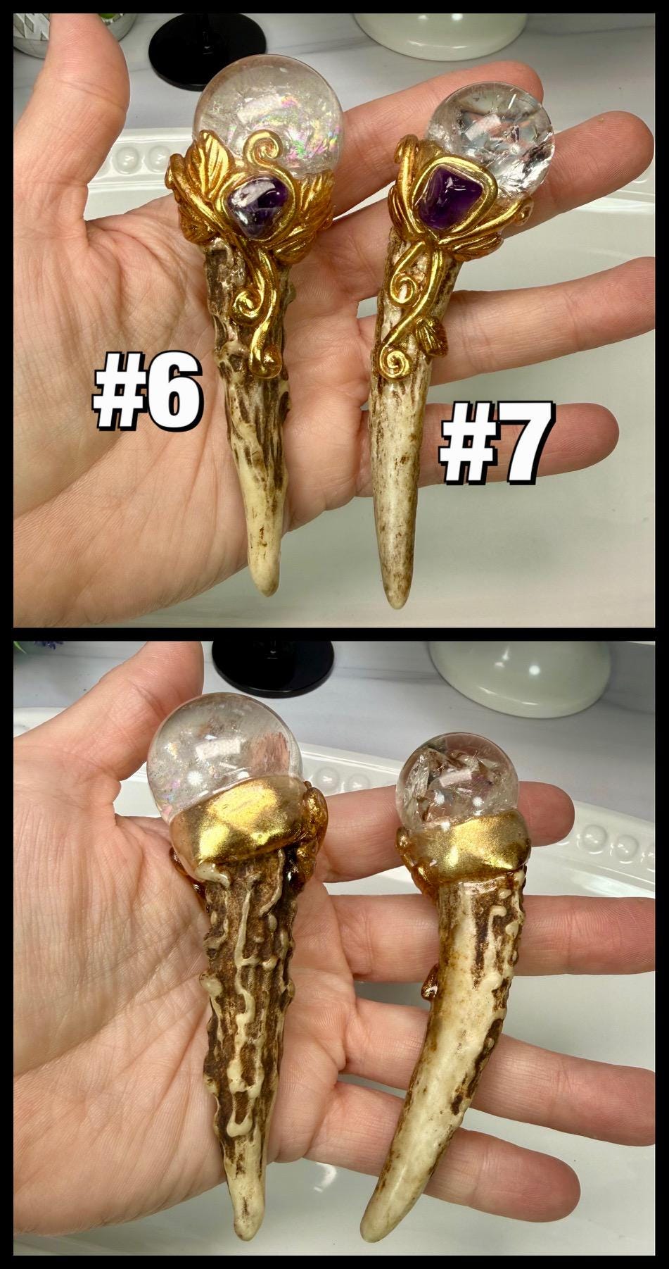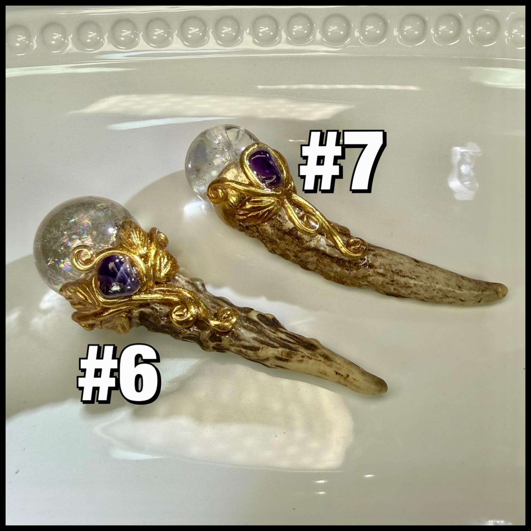 6. Clear Quartz & Amethyst Antler Wand / 4.32" long / 69g