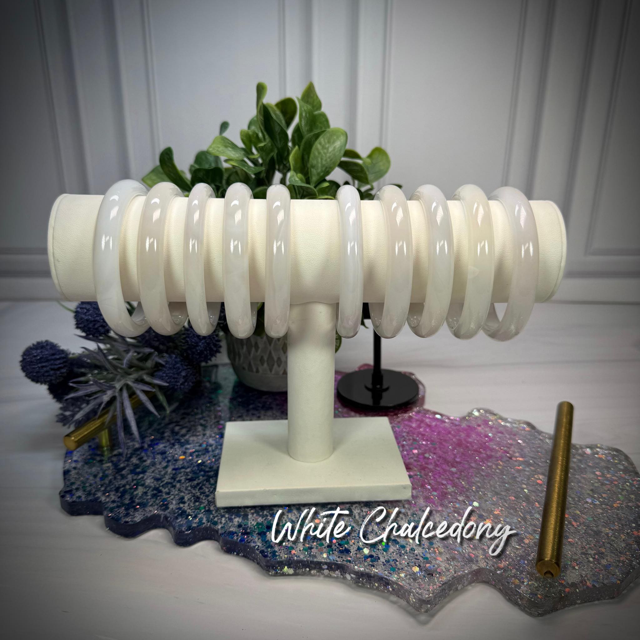 đ¤White Chalcedony Bangle, Chalcedony Bangle Bracelet